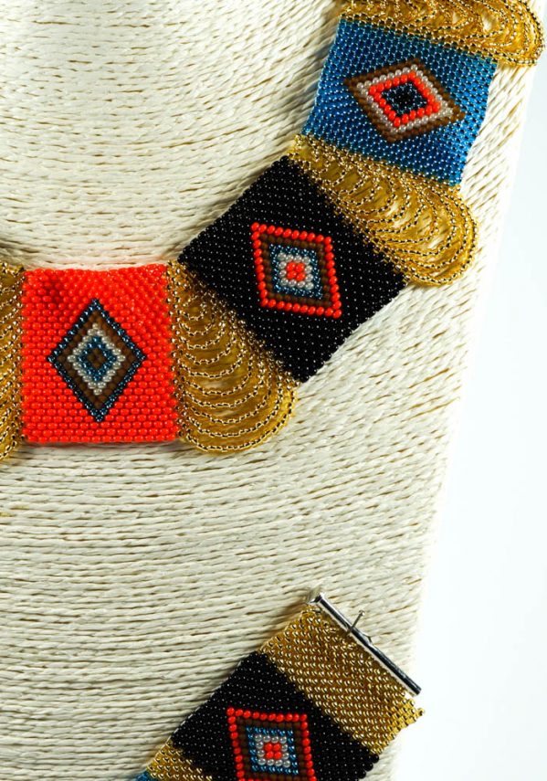 This handmade Murano jewelry with needle and thread by the artist Paola Bertoldo, inserting one by one the micro beads, forming with patience and great skill, a unique jewel in the world of its kind.