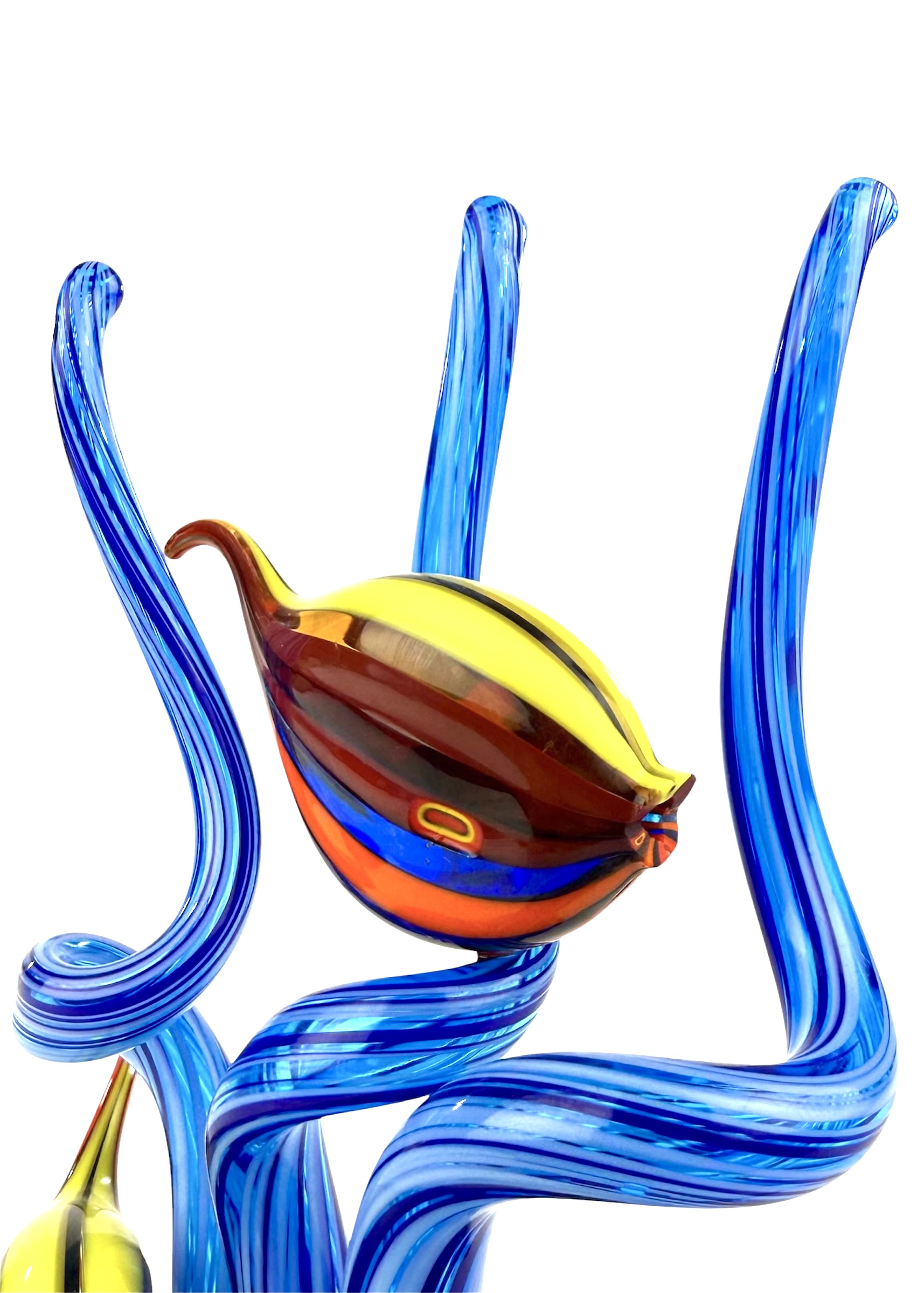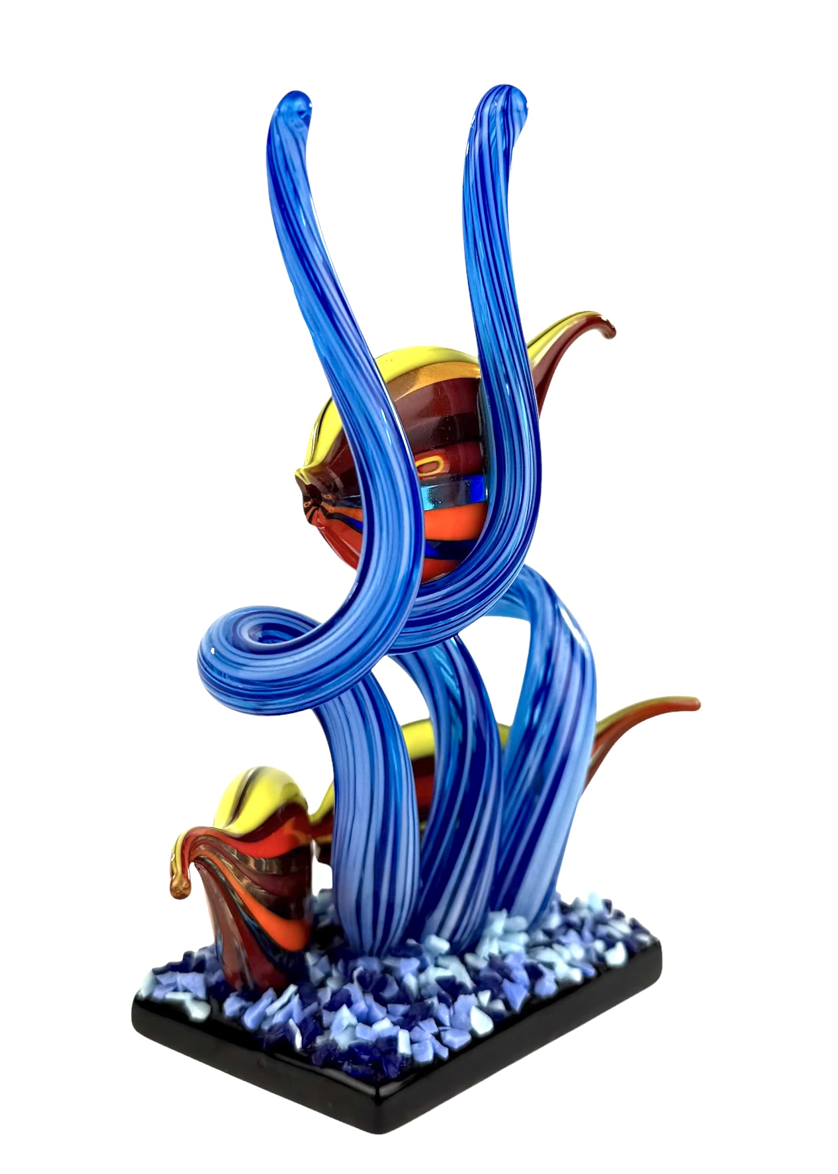 Maiorca – Blue Murano Glass Aquarium With Three Tropical Fish