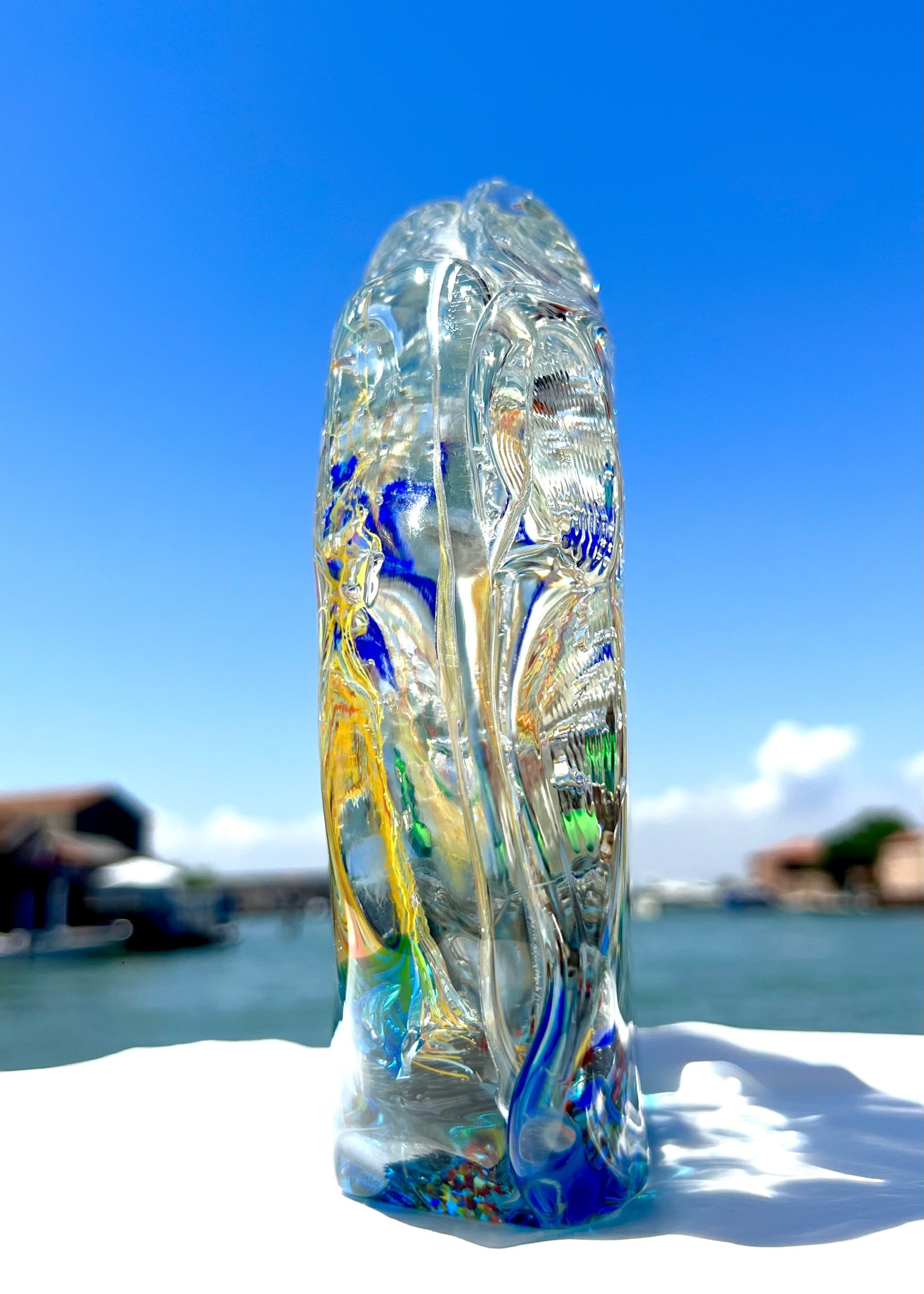 Half-moon aquarium sculpture in Murano glass.