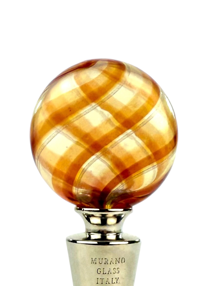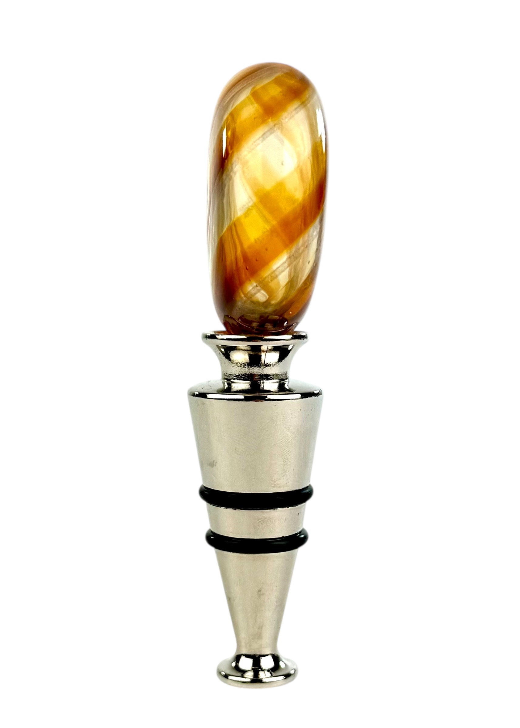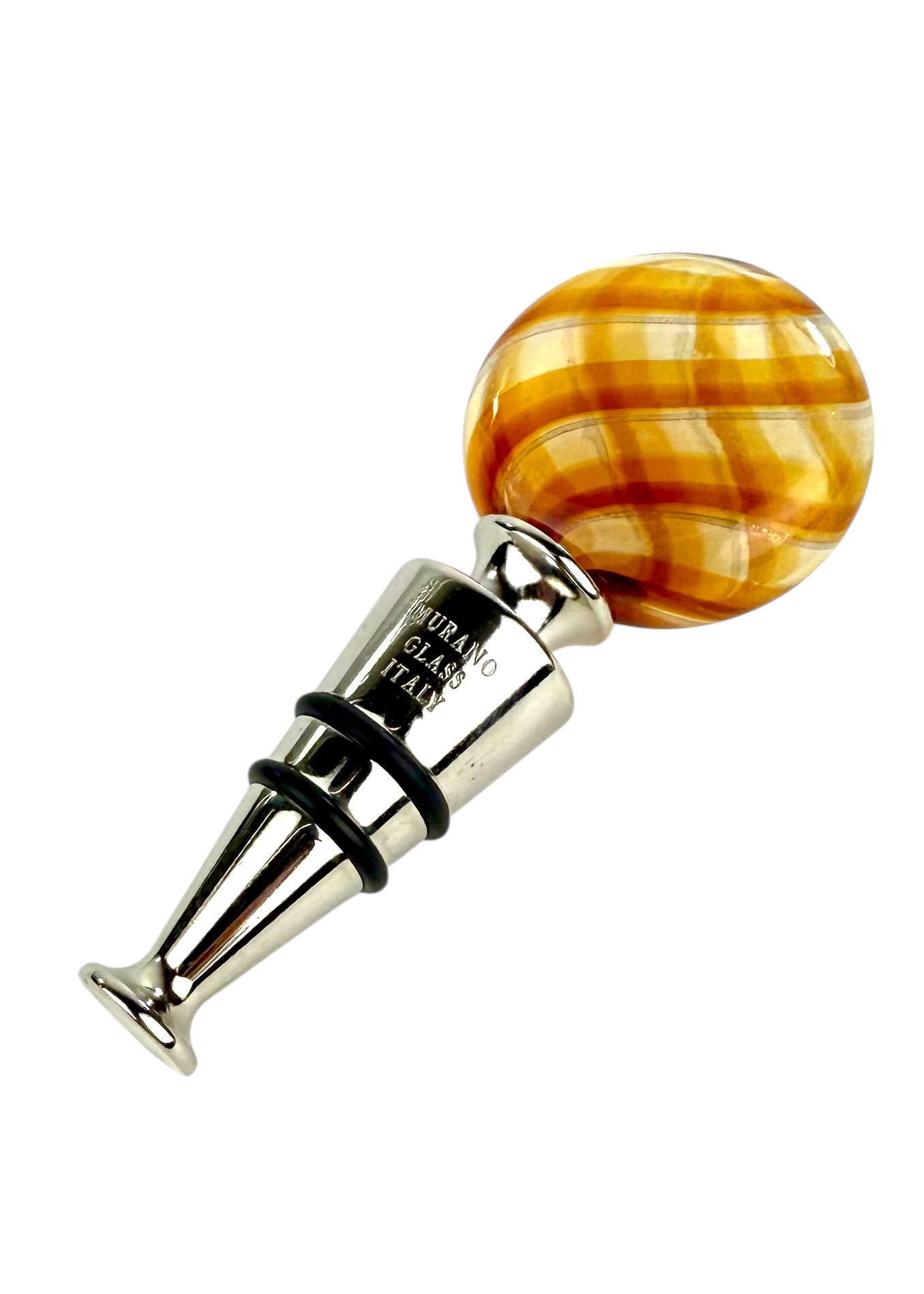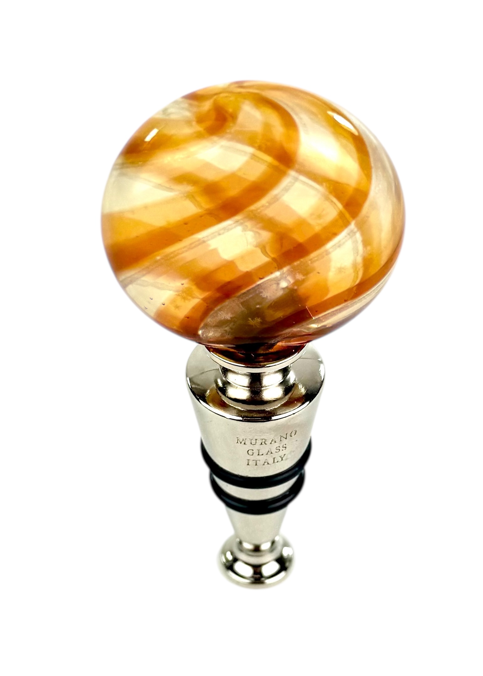 Murano glass bottle stopper with light amber, amber, tobacco and aventurine kanne.