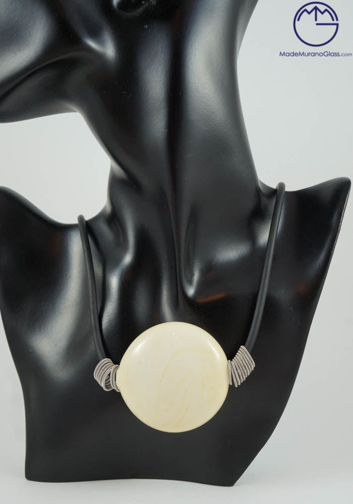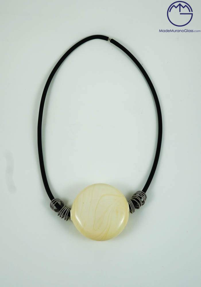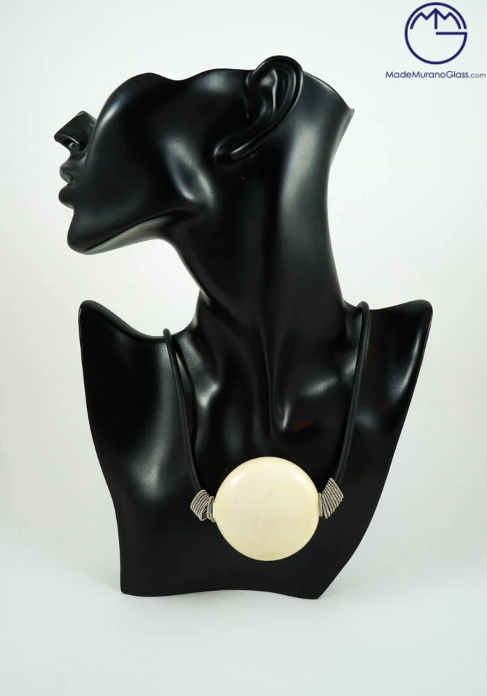 Our Made Murano glass necklaces are hand-made using the “lume” Murano glasswork, like this wonderful Murano jewelry “Marilyn” white coloured, made of Venetian blown glass and realized by Murano artisans “Ballarin&Cortella”. The combination of style and design is the perfect feature of this Made Murano Glass art work.