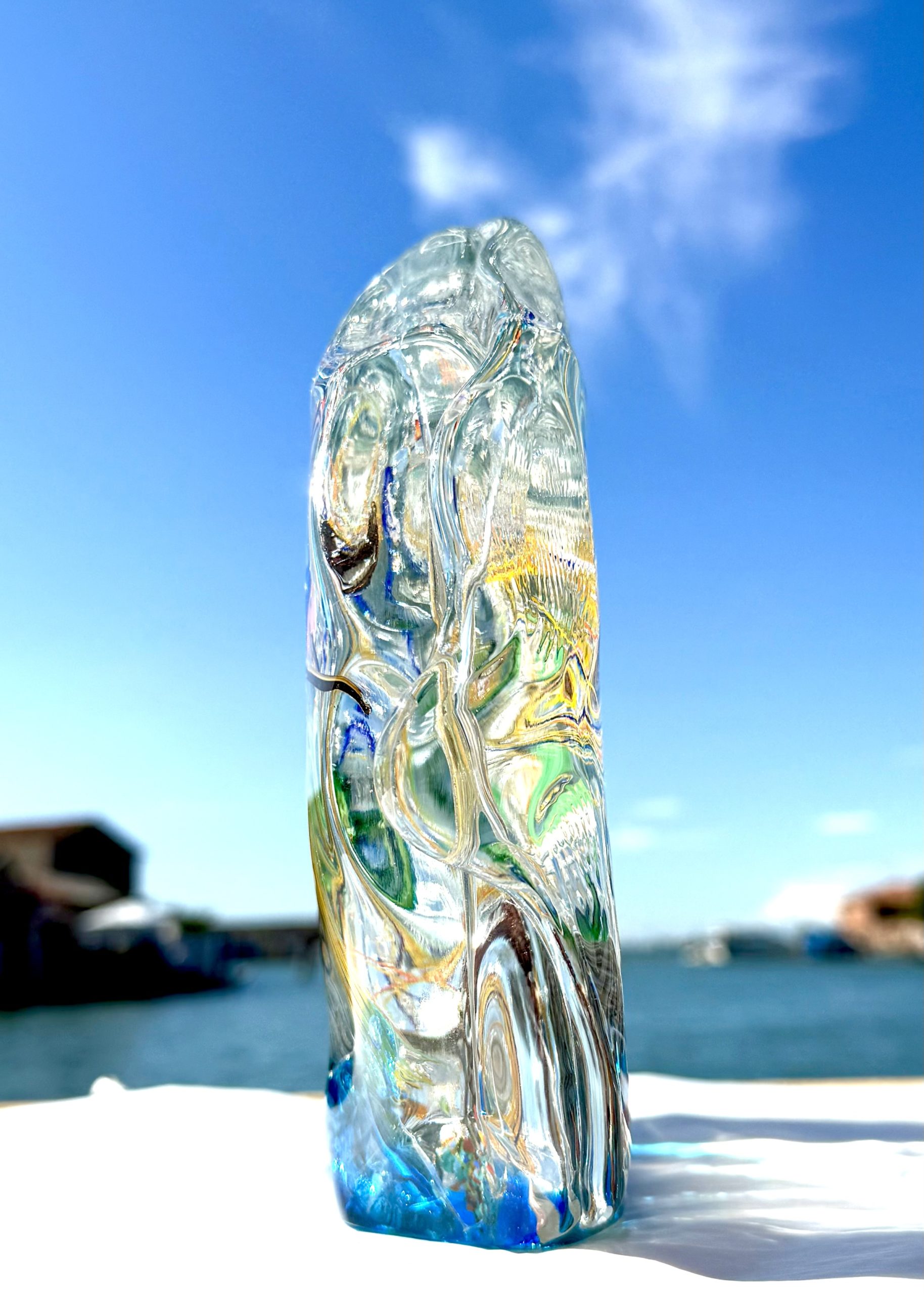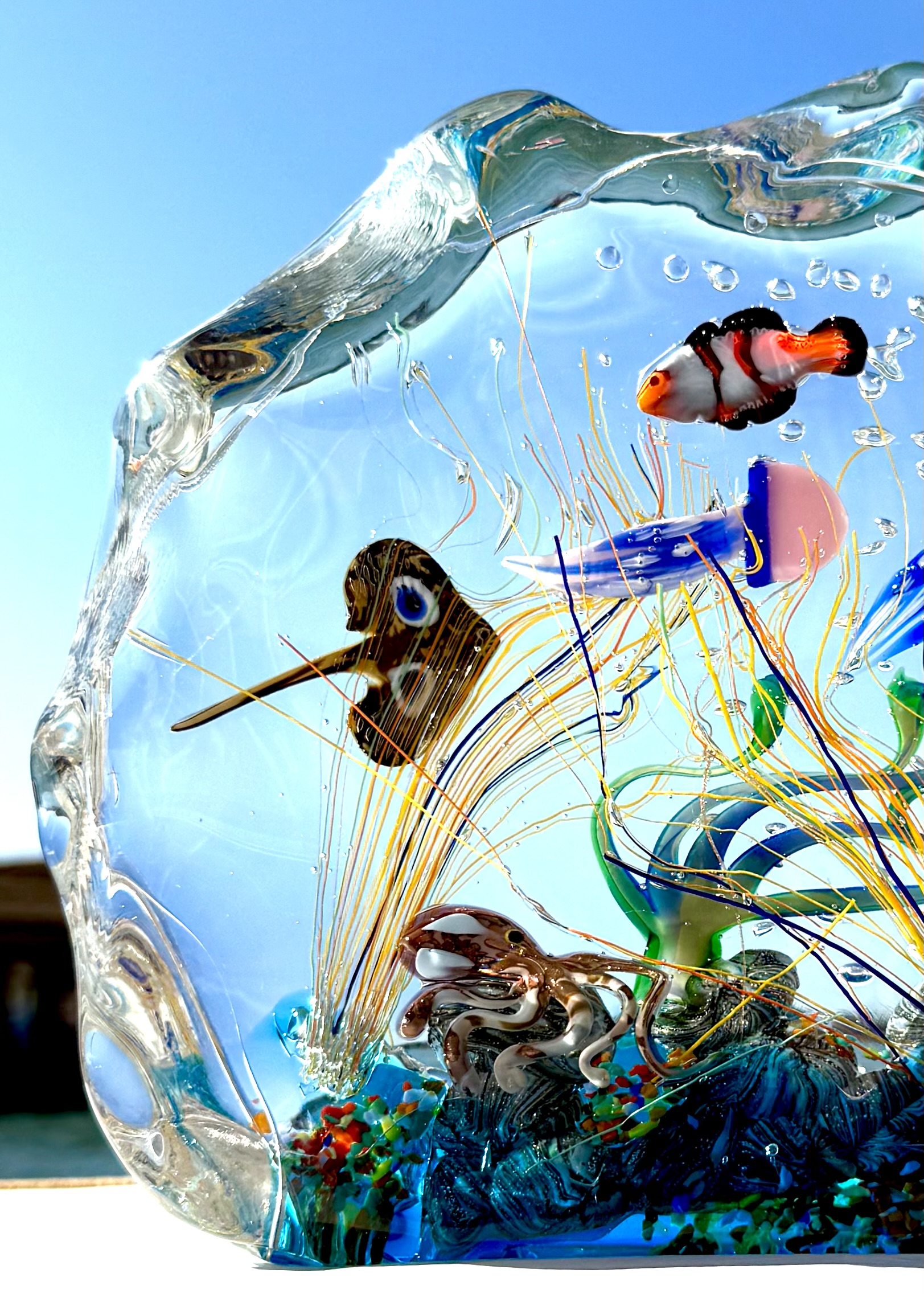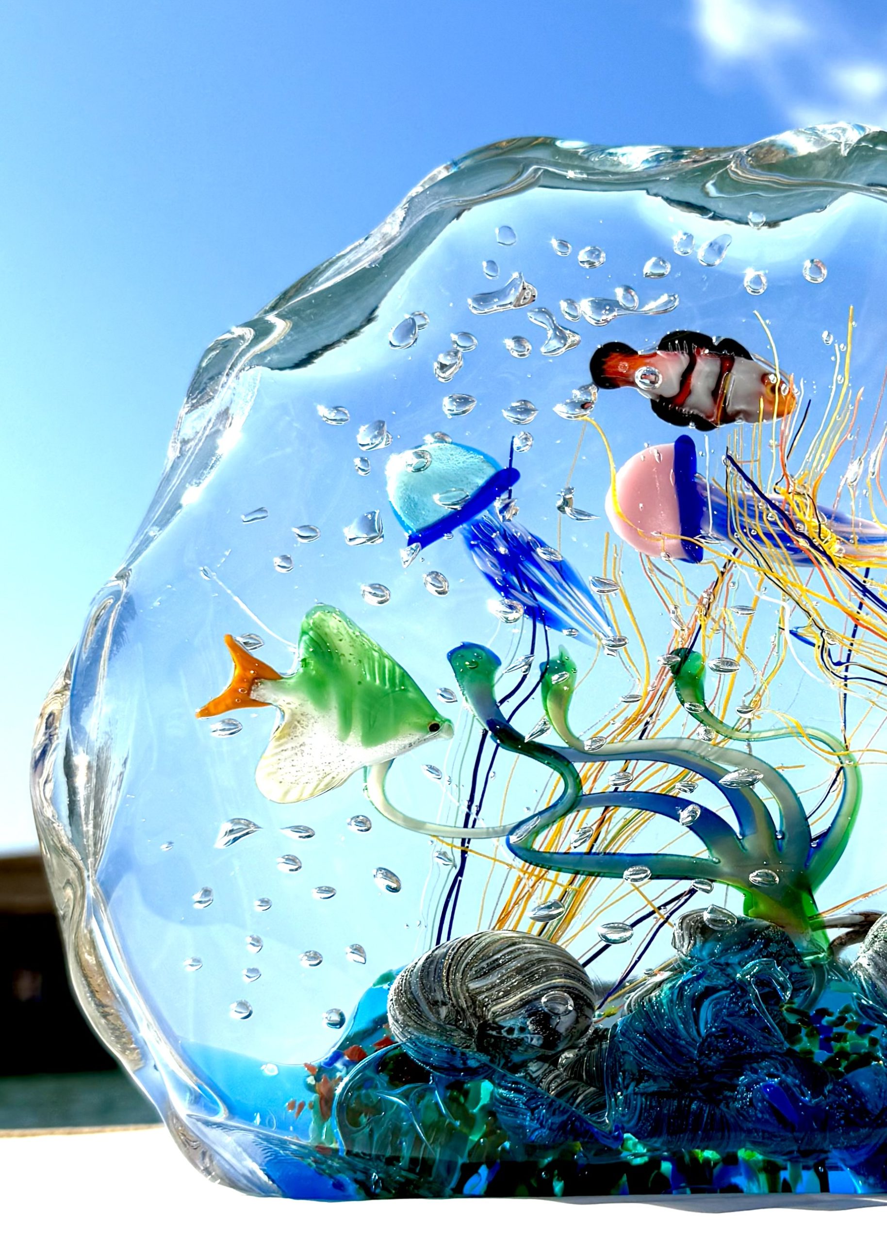 Half-moon aquarium sculpture in Murano glass.