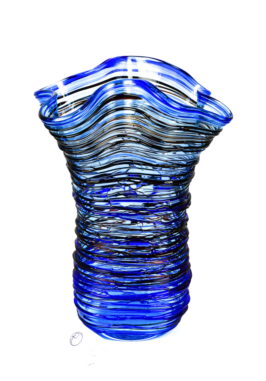 The positioning of the coloured glass wires is always different, this makes each article unique and inimitable. Signed on the basis: Made Murano Glass.