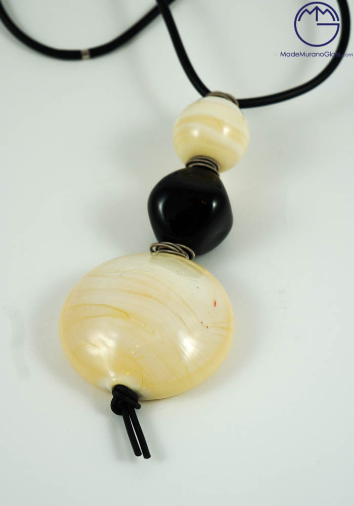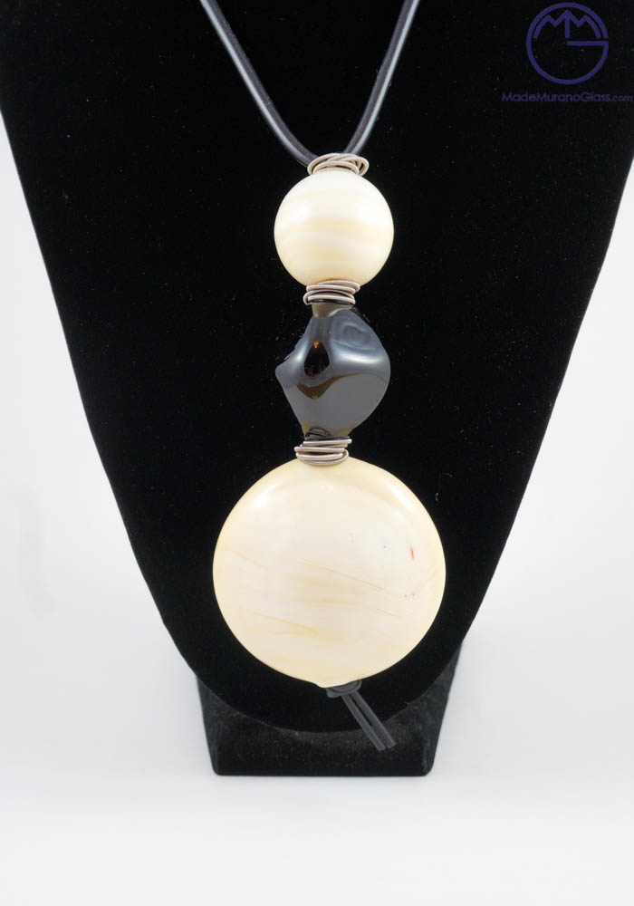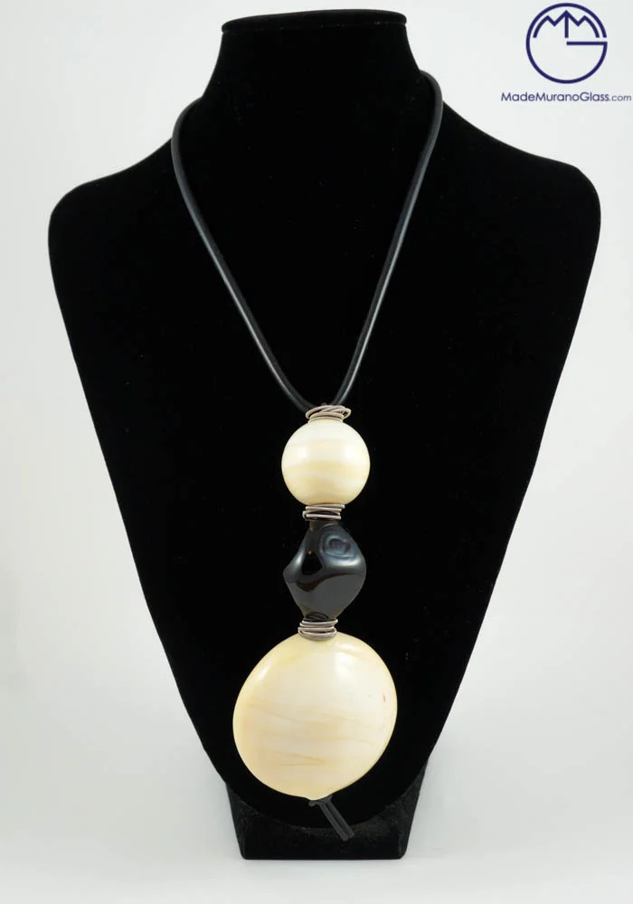 Our Made Murano glass necklaces are hand-made using the “lume” Murano glasswork, like this wonderful Murano jewelry “Monile” black and white coloured, made of Venetian blown glass and realized by Murano artisans “Ballarin&Cortella”. The combination of style and design is the perfect feature of this Made Murano Glass art work.
