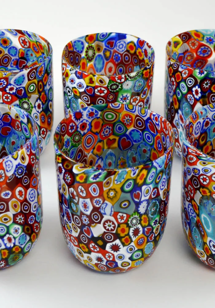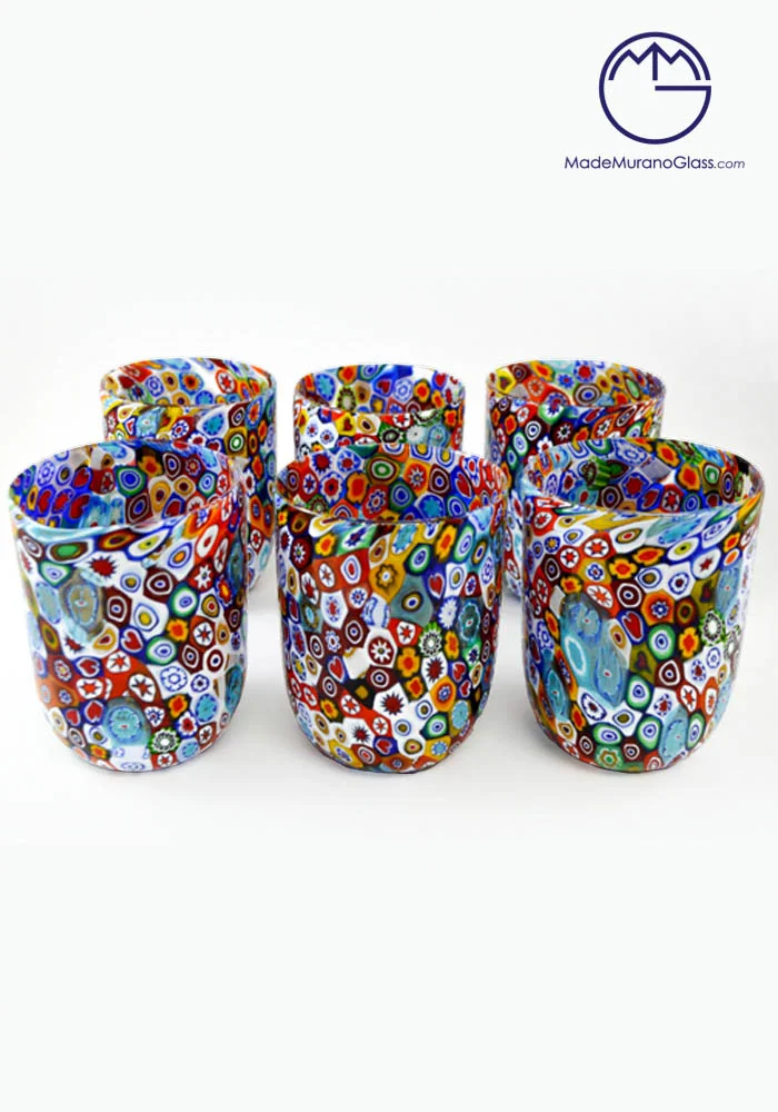 Mosa – Set Of Six Murano Drinking Glasses With Murrina Millefiori