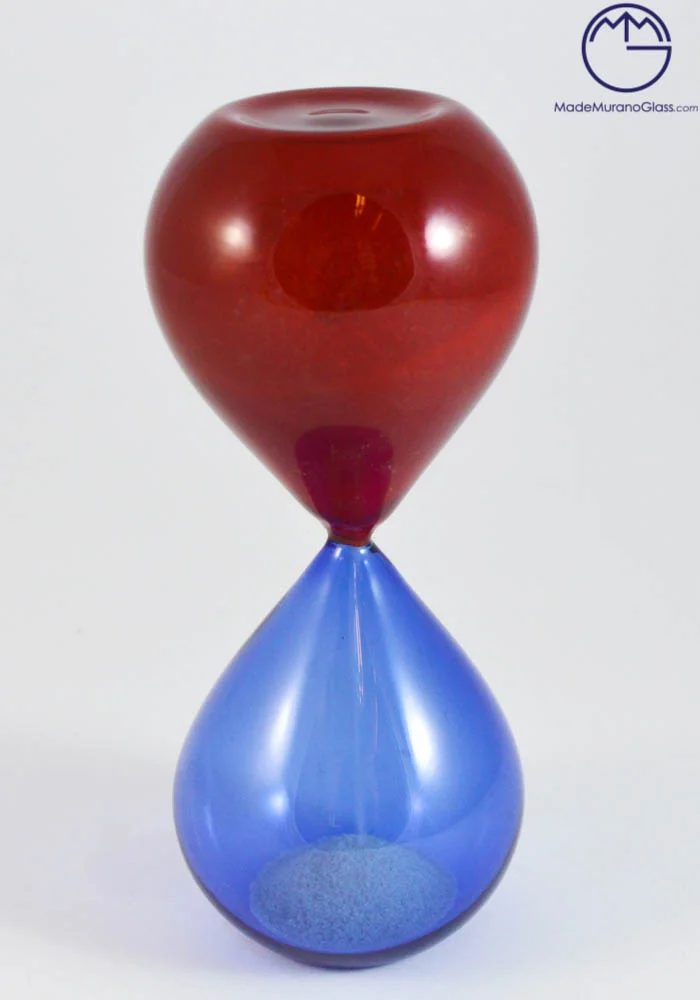 Very nice item in Murano glass in the shape of hourglass colour red and blue.