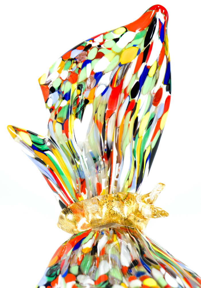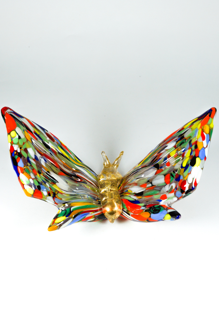 Fantastic working of venetian glass, that represent a magnificent Big Butterfly with multicolor “Mace” and decorations in gold 24k.