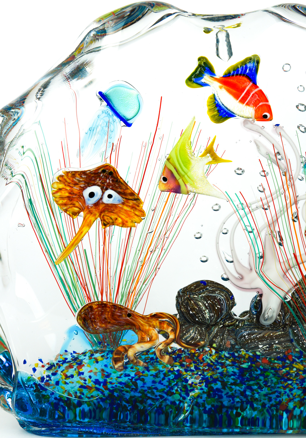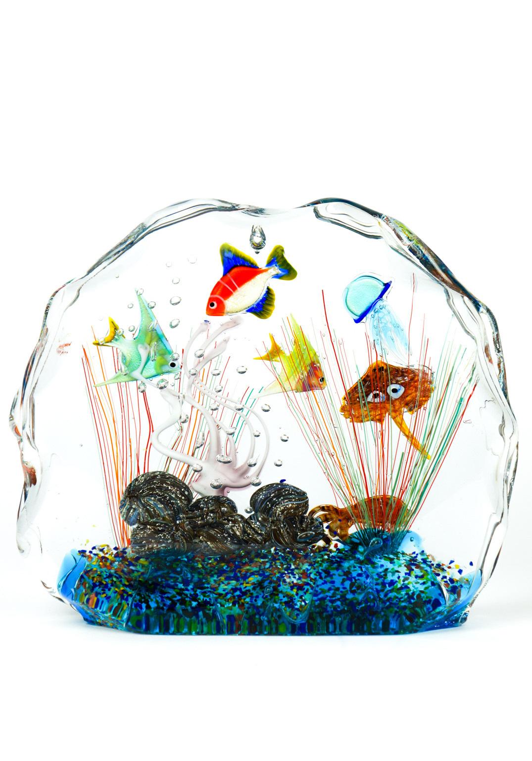 Magnificent Murano glass aquarium with tropical fish.