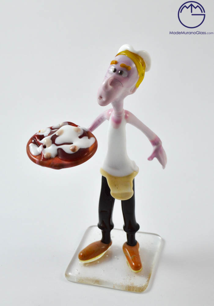 Very nice Murano glass pizza man sculpture that take part a fantastic Murano collection. Completely handmade product, produced with “lume“ working. This work demonstrates the great skill of the Murano artisans to perform unique and exclusive sculptures in the world.