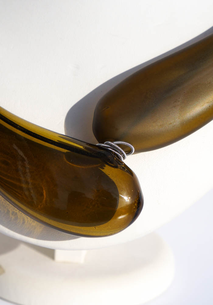 Magnificent pendant in Murano glass with two green “alga” drops. Handmade product, produced by Murano artisans (De Mio) with the ancient “lume” technique. The pendant’s measures are adaptable to any neck (thanks to a rubber band inside). The necklace is very light. Also available in parure.