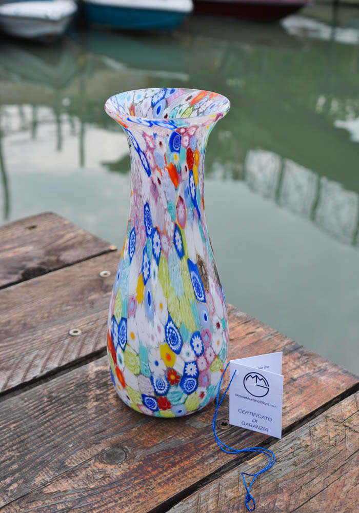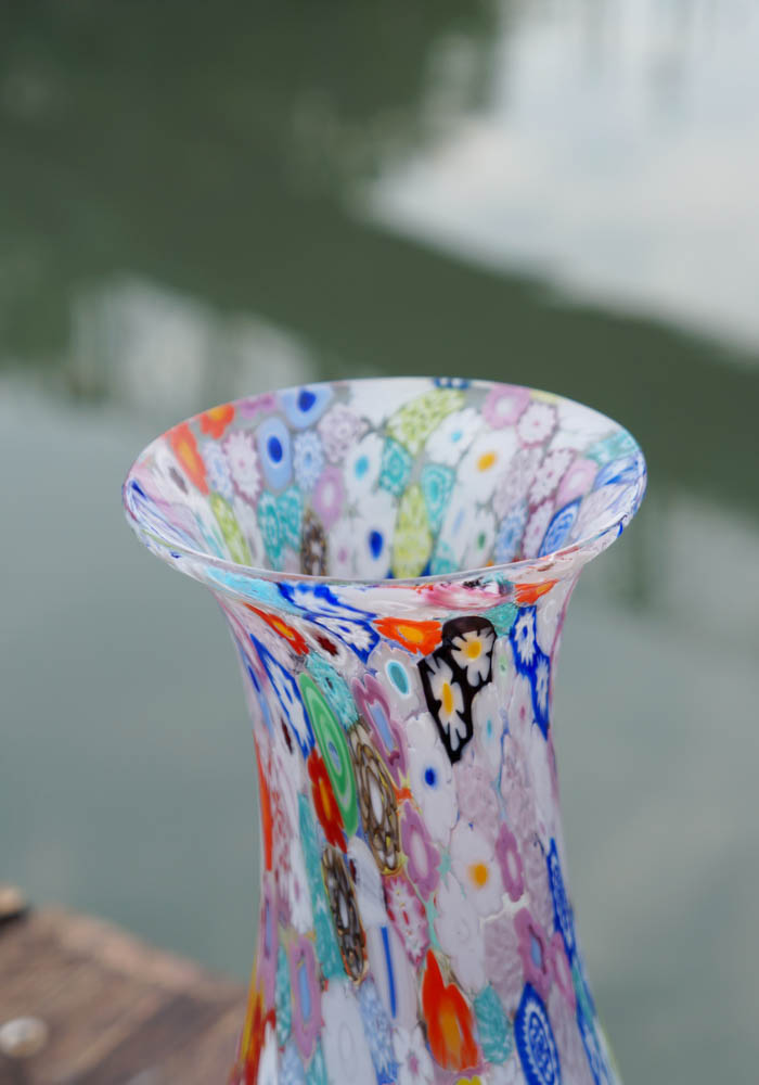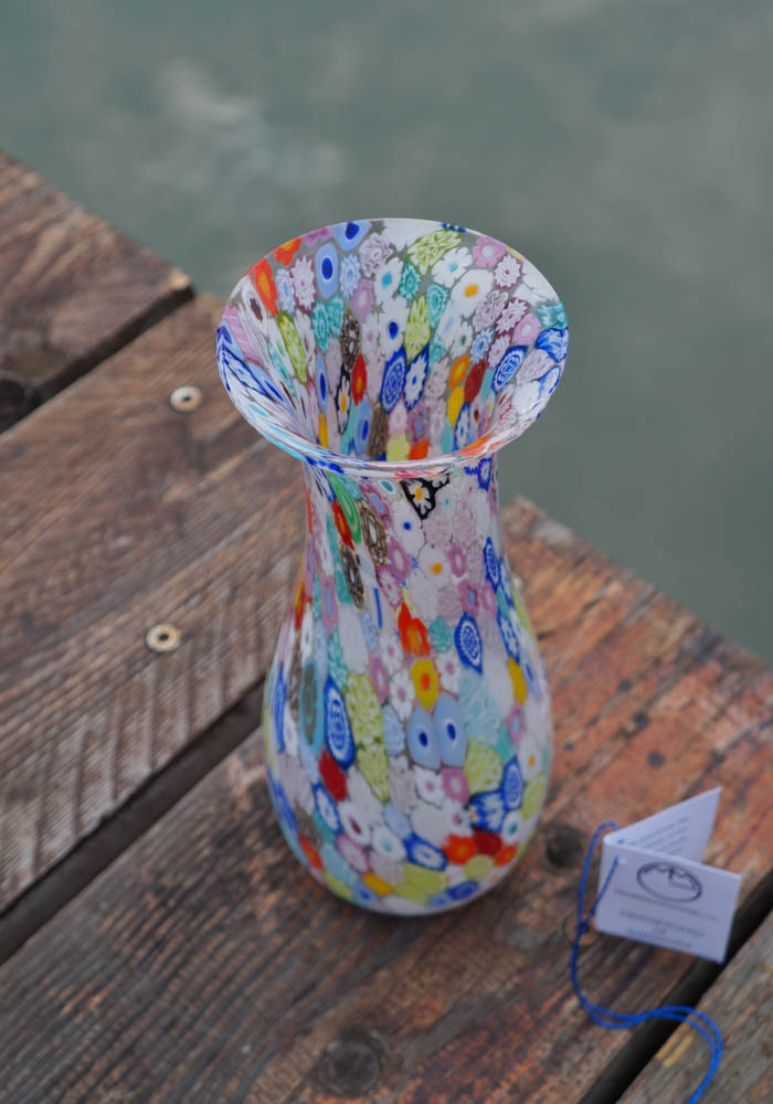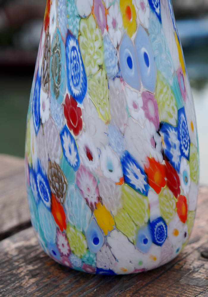 Refined jug (half-liter) for water or wine in Murano glass with transparent murrine millefiori.