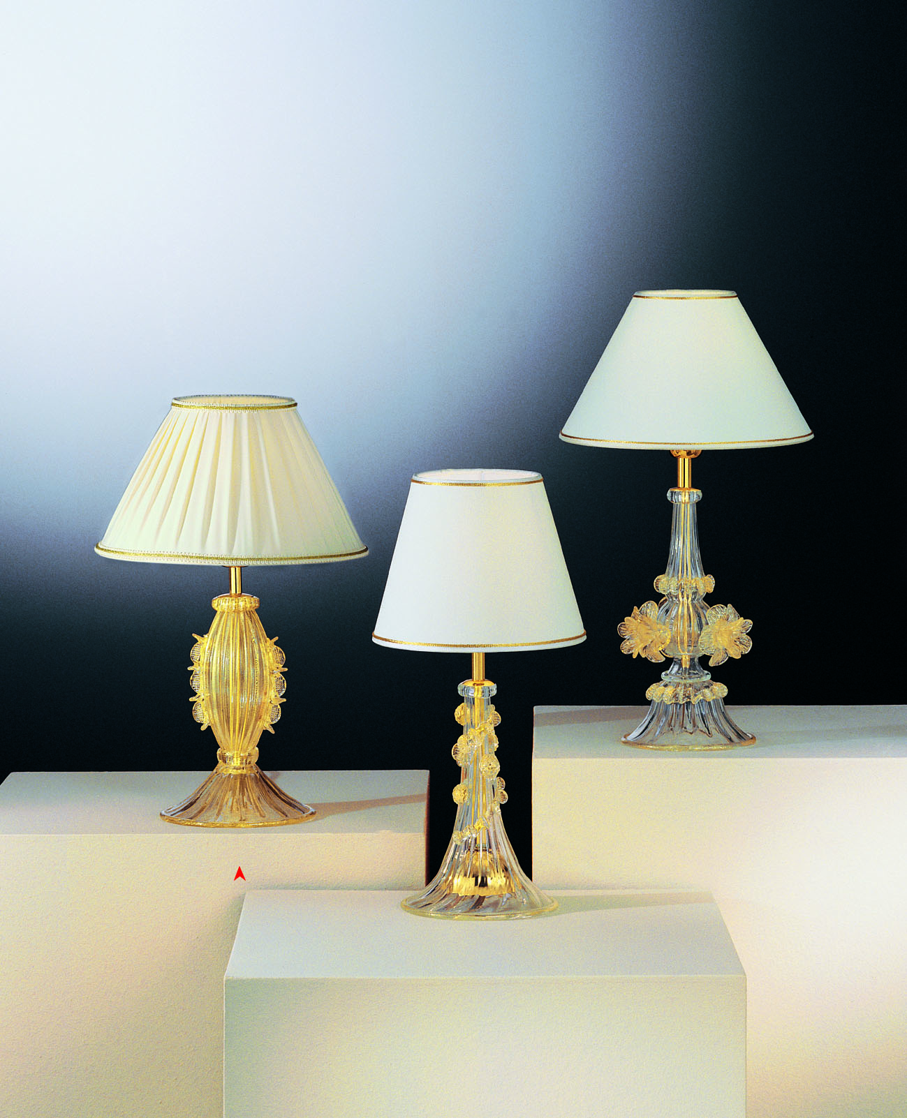 Exclusive Murano glass table lamp colour crystal with decorations in gold leaf 24 carats.