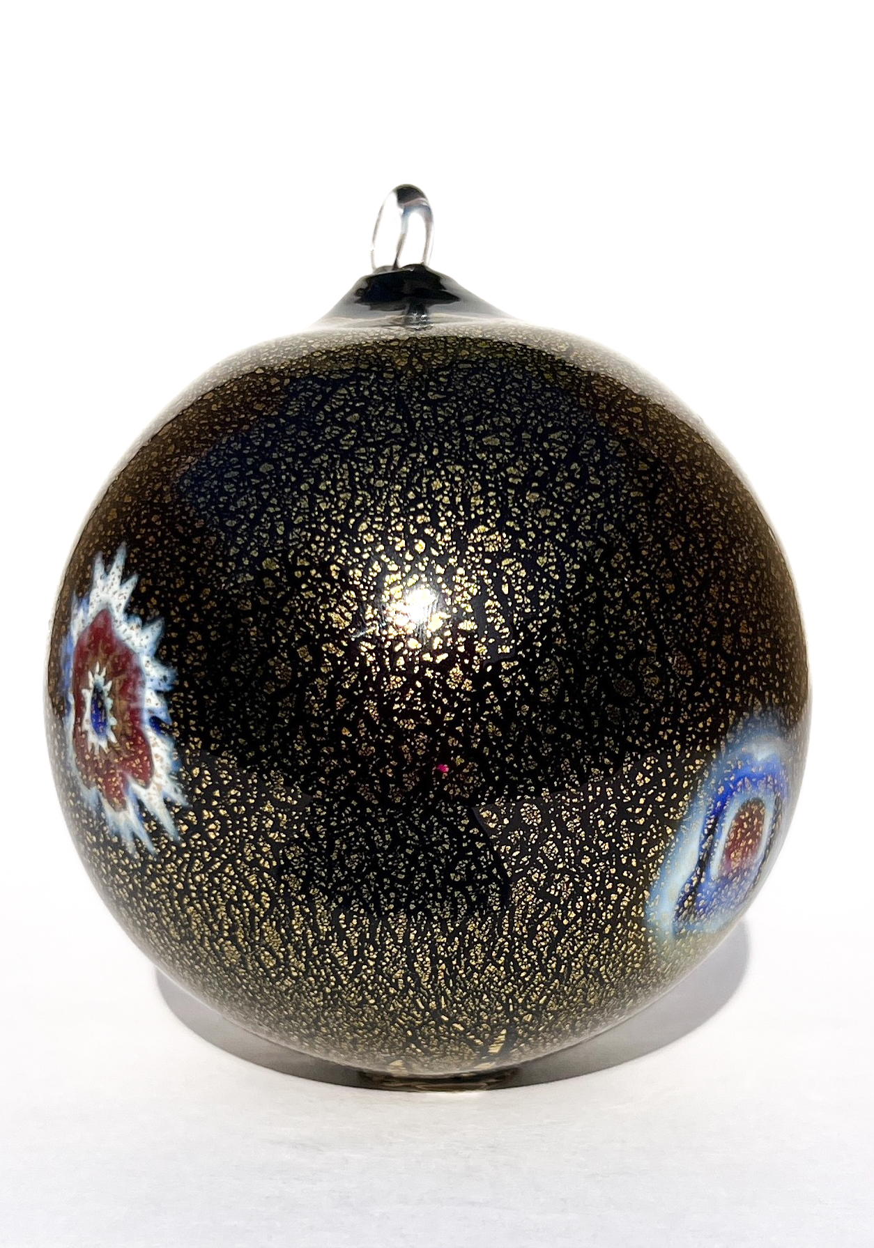 Murinona – Black Murano Glass Xmas Ball with Murrina Millefiori