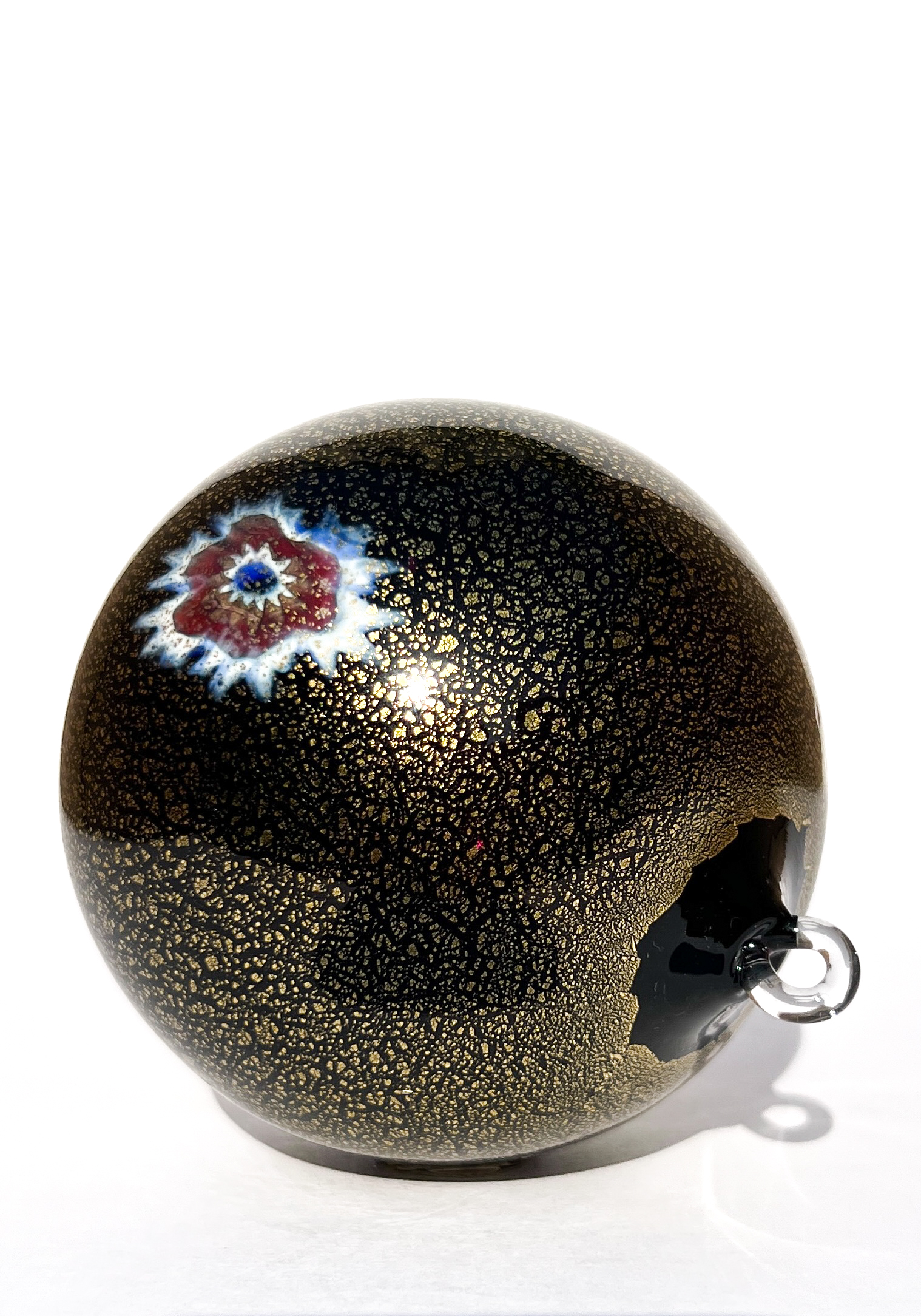 Fantastic Murano glass Christmas ball with decorations in Murrina Millefiori and real Gold leaf 24kt.