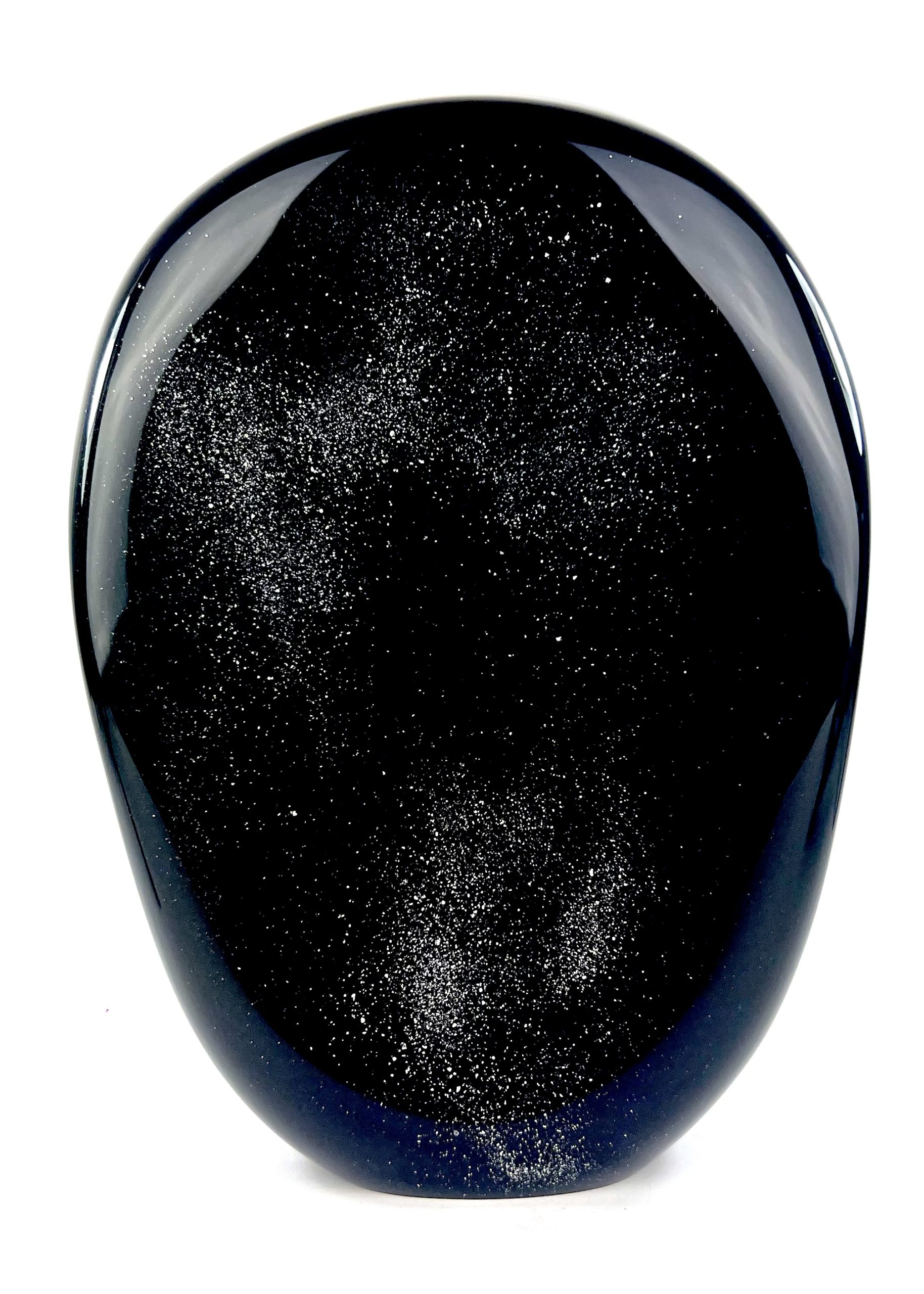 To create this surprising submerged work, our Murano glass masters collaborate with each other by first creating the element and then immersing it in transparent crystal glass with a black and silver background.