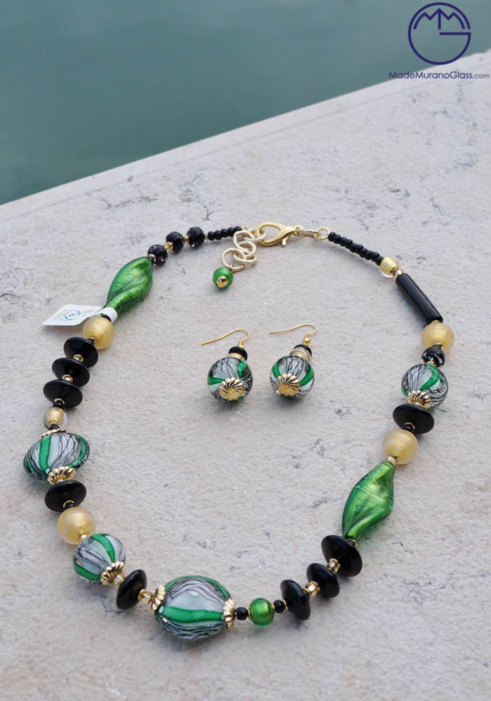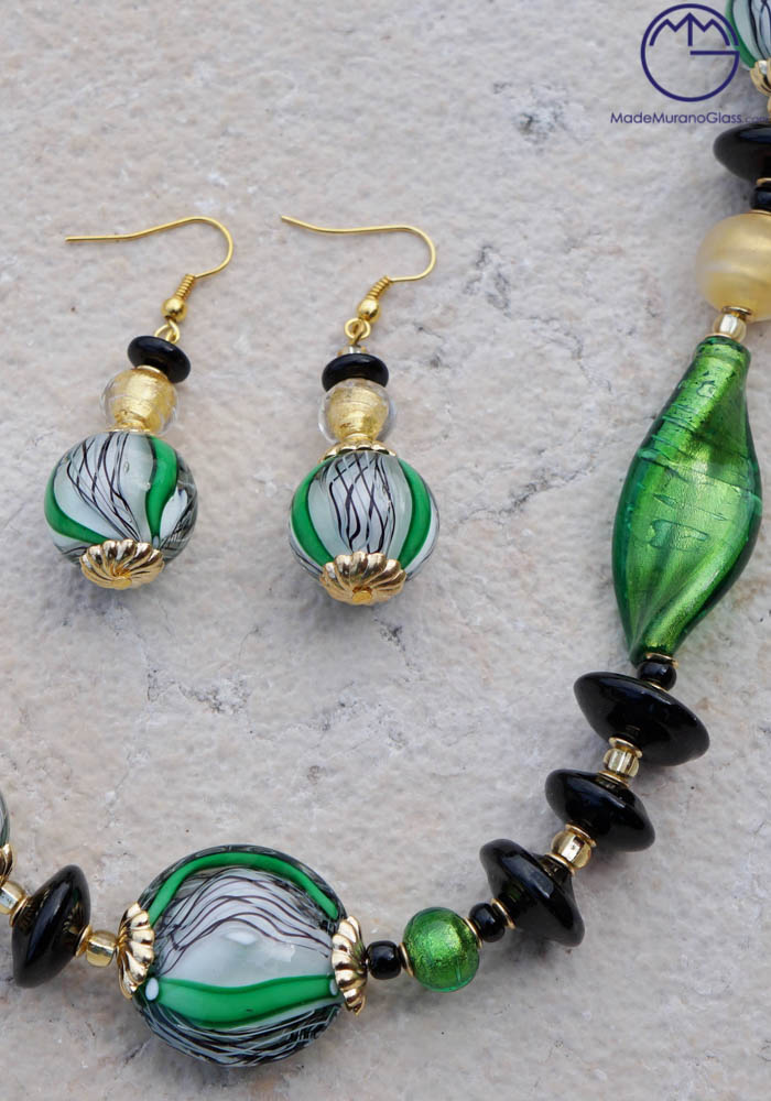 Omane – Green Murano Glass Necklace And Earrings