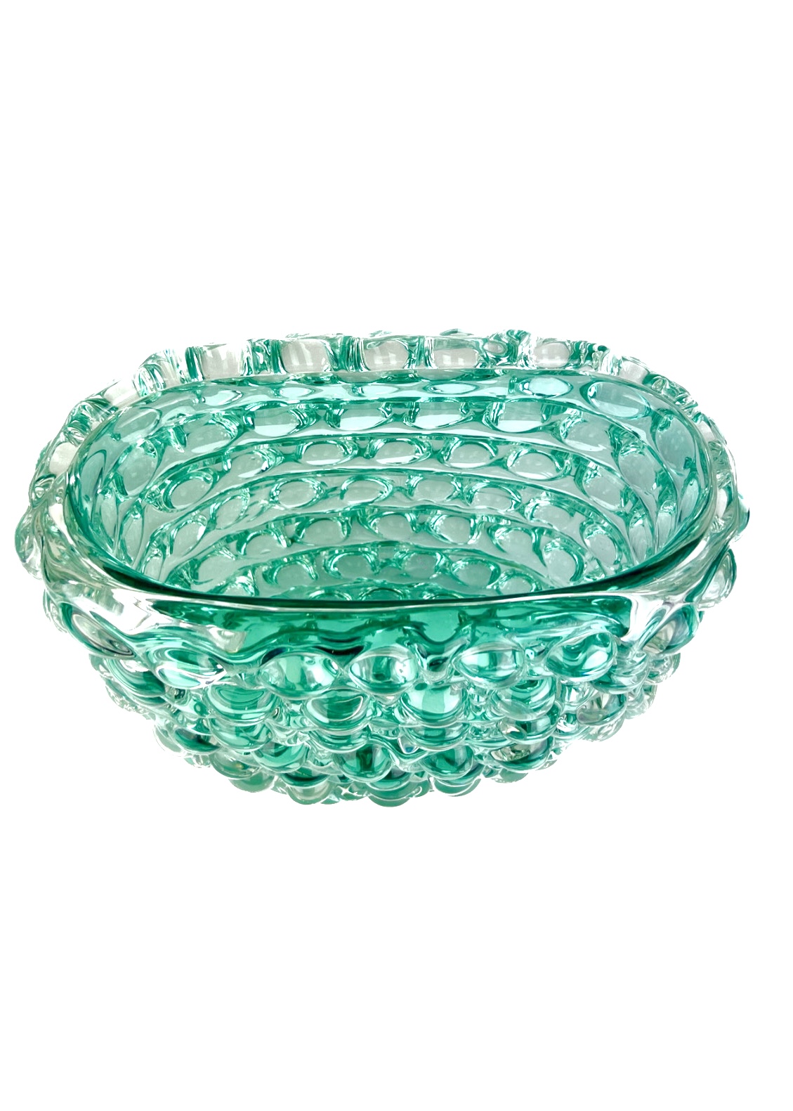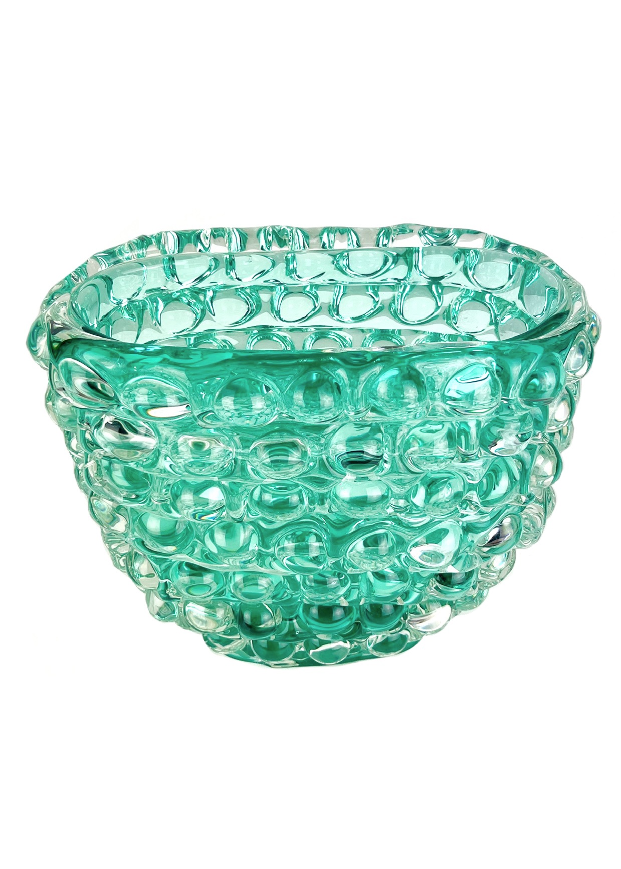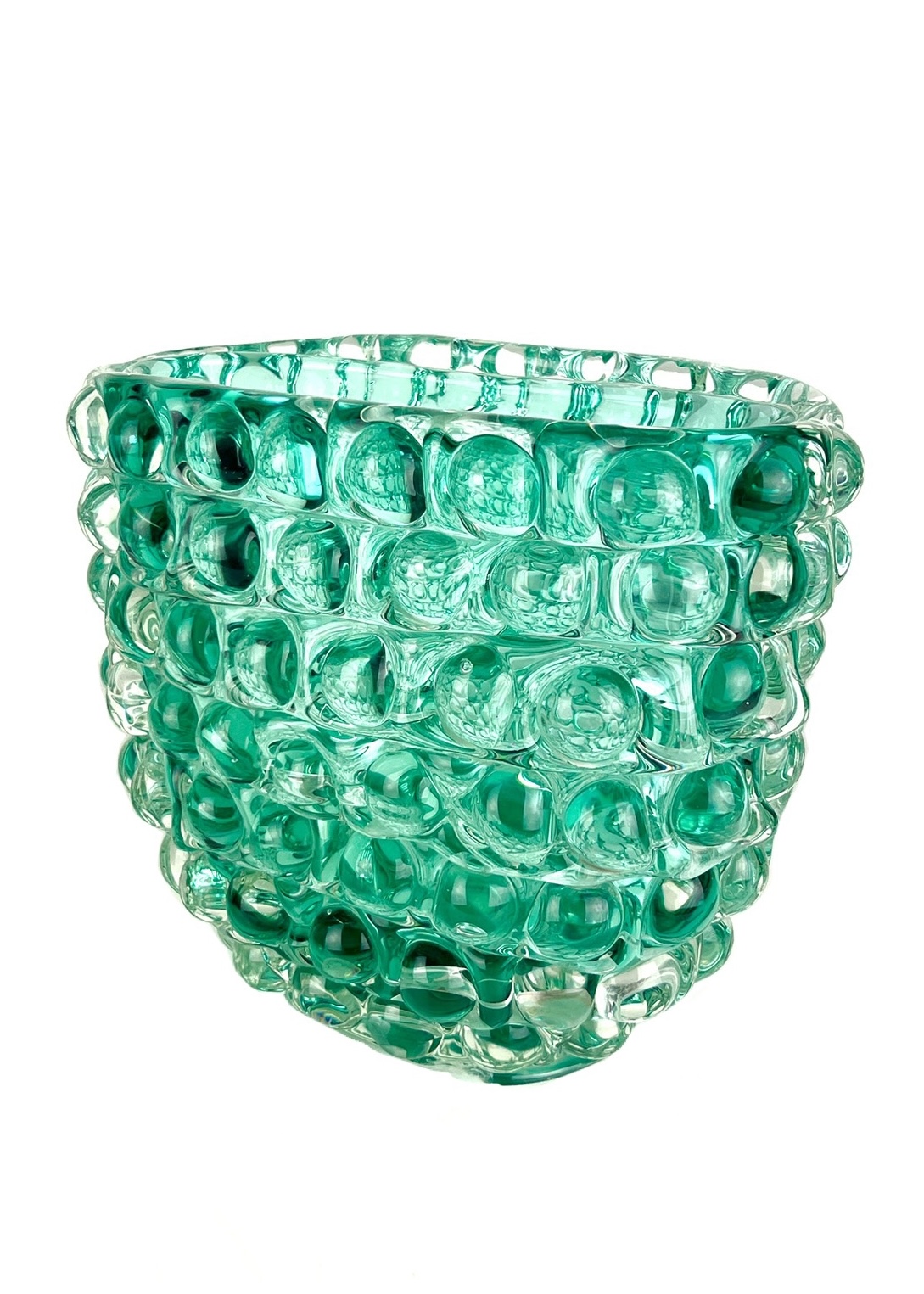 Murano blown glass vase entirely handmade and covered in “bugne”.