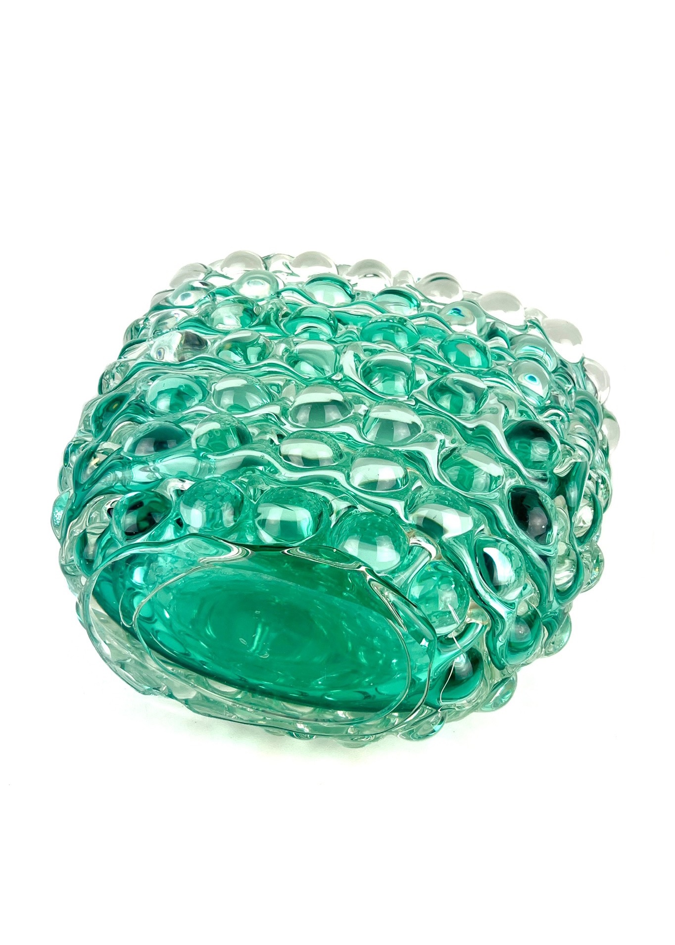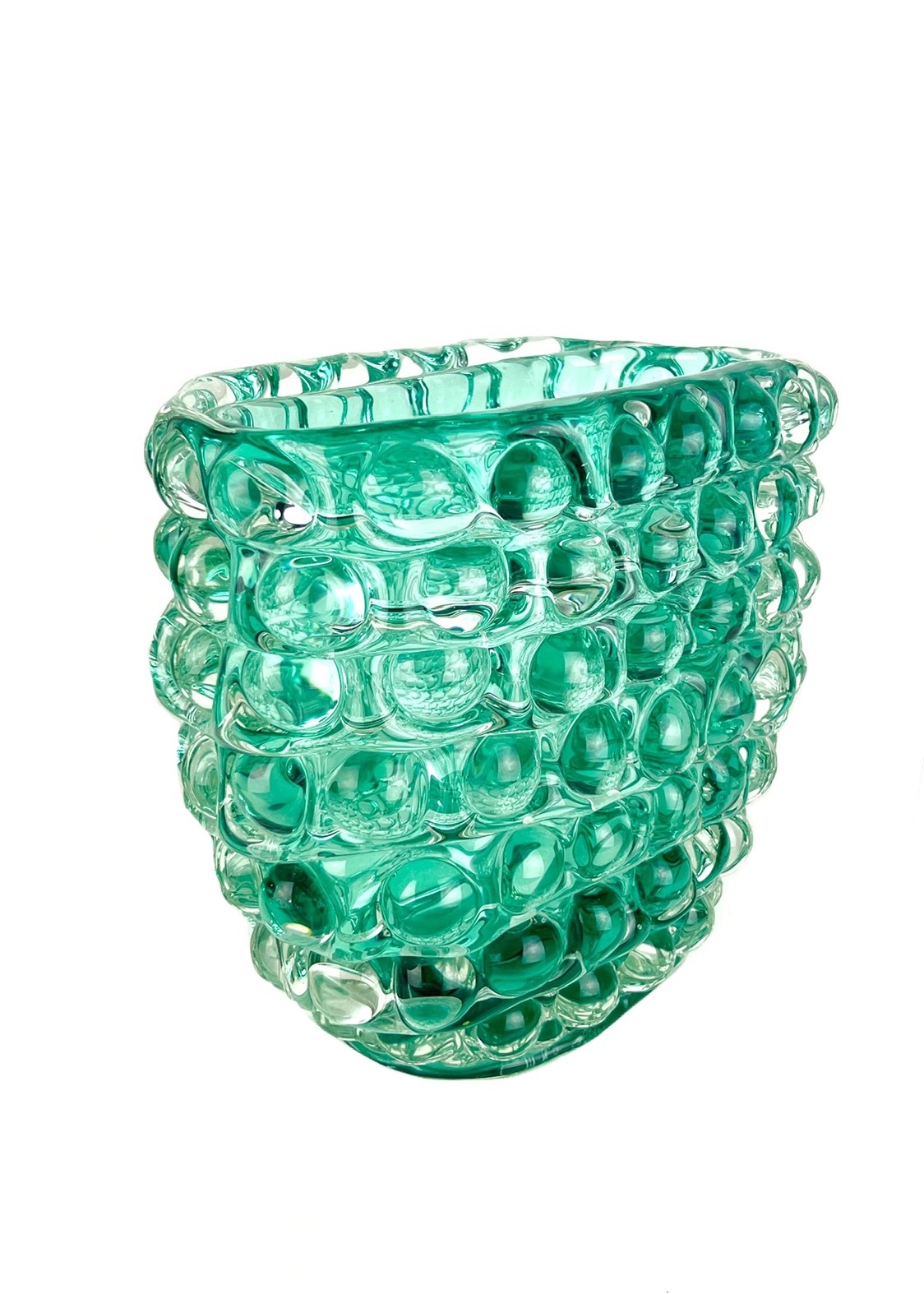 Perth – Marine Green Murano Glass Vase With “Bugne”