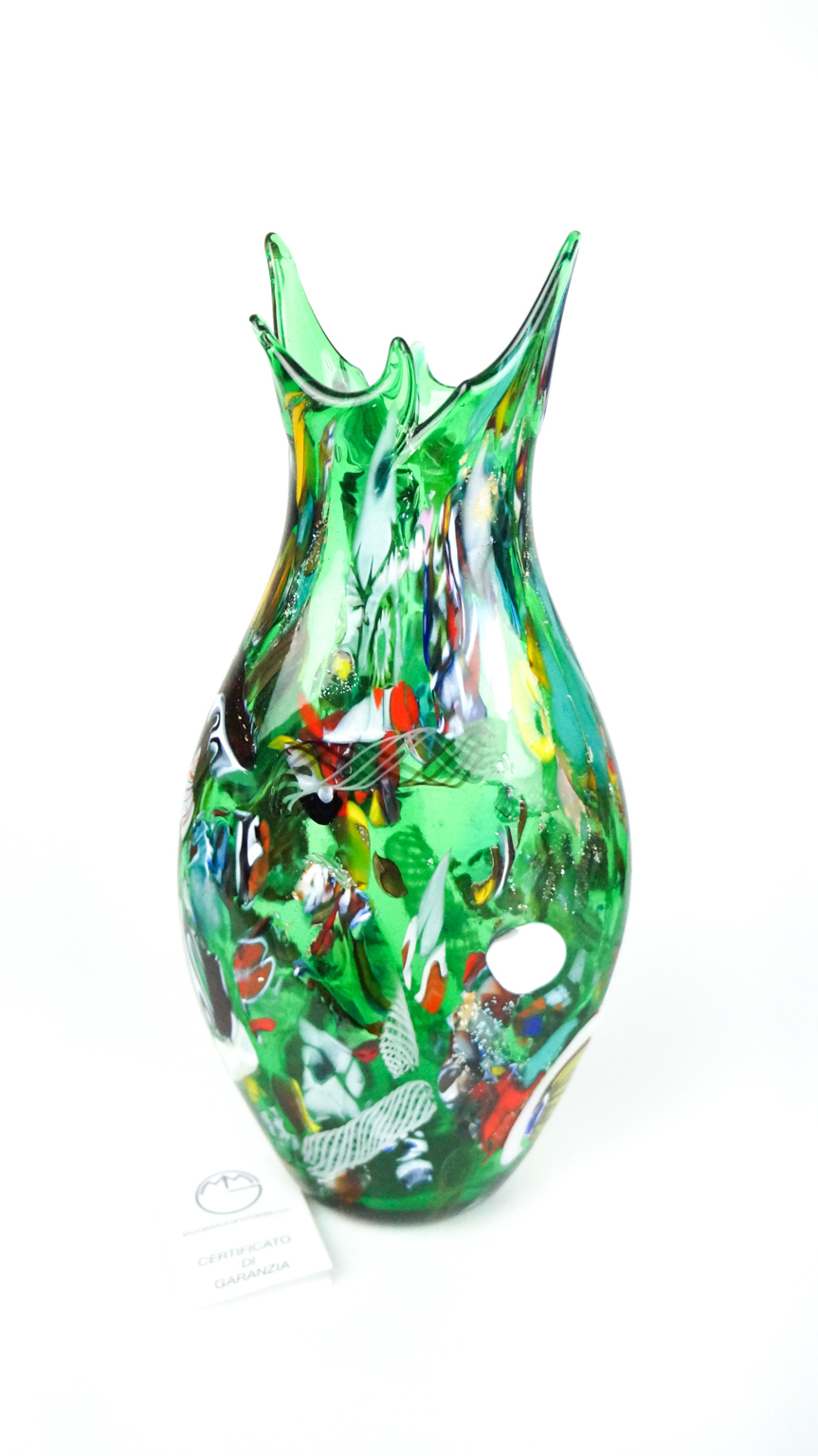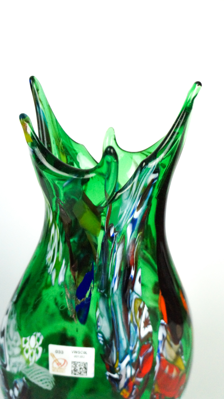 The venetian glass vase has the label Marchio Vetro Artistico®. View Photo.
