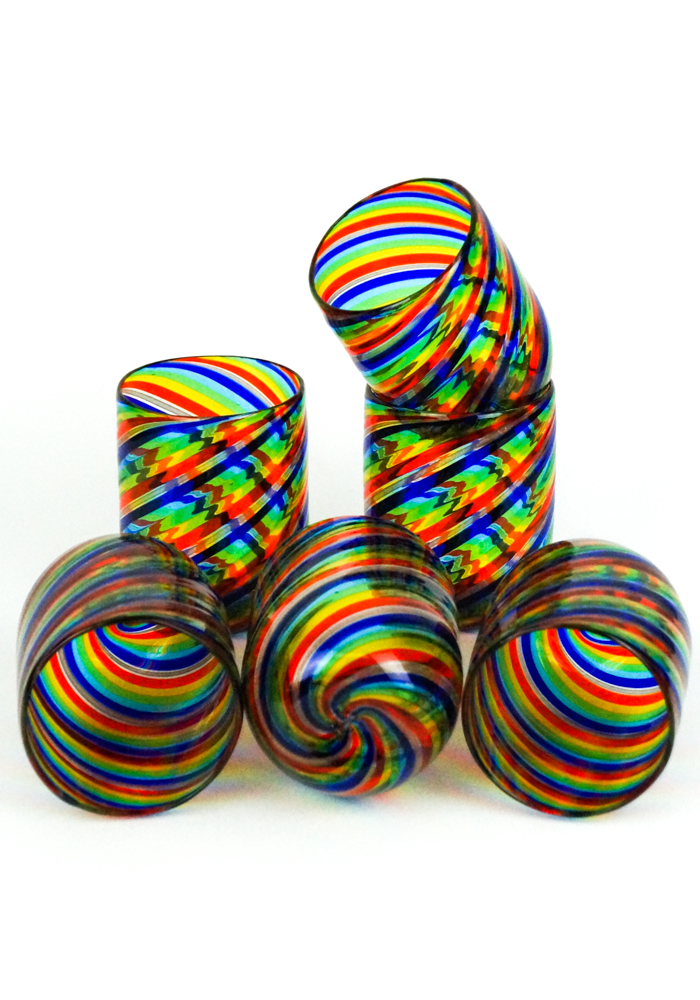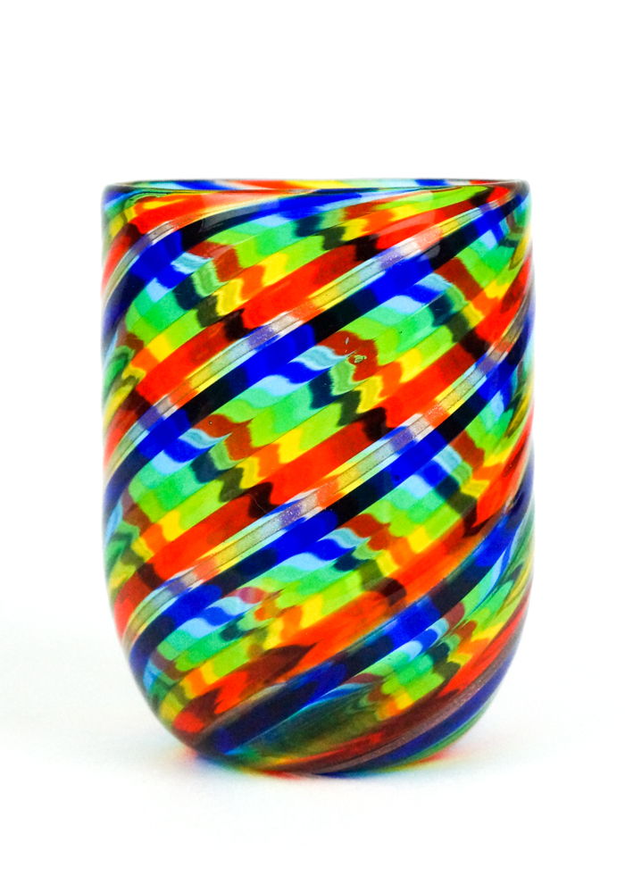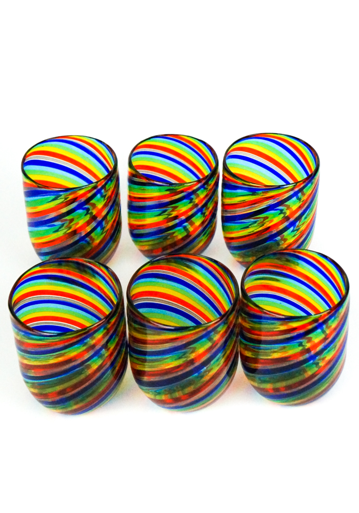 Elegant 6 handmade Tumblers in Murano glass multicolour. Murano artisans perform this service with great care and precision, placing one by one small pipes of glass in a hot plate and then are fused together with crystal creating a unique and inimitable work for Made Murano Glass!