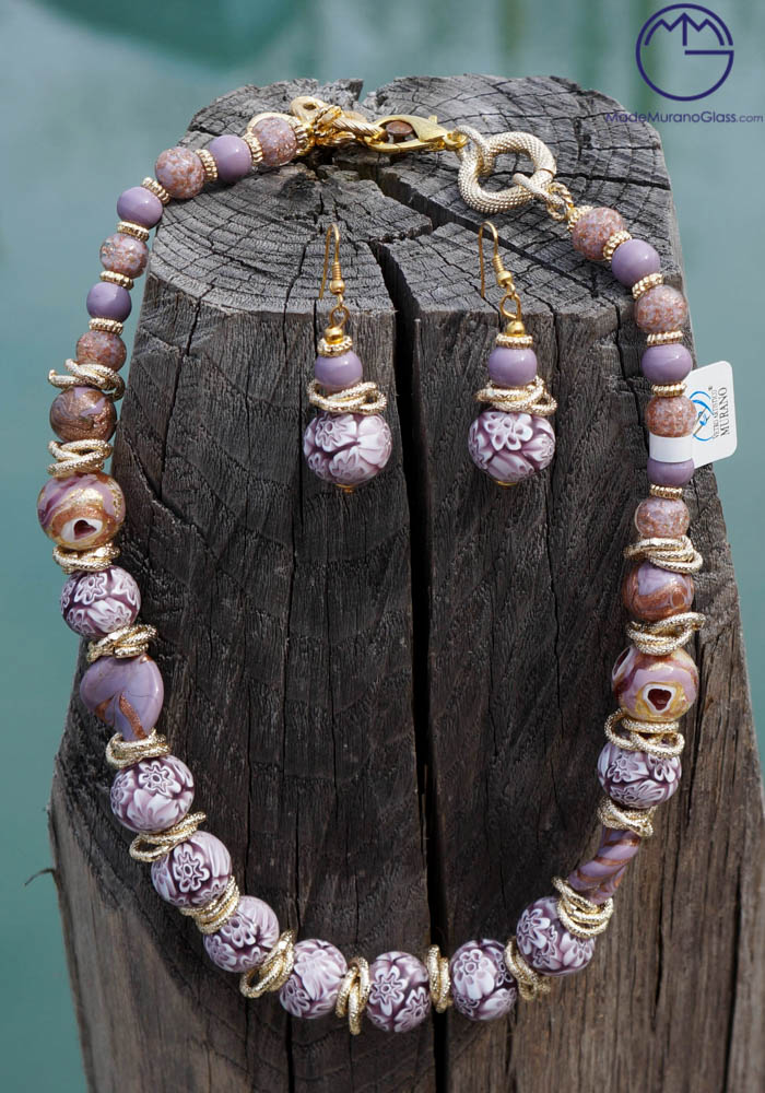 Wonderful necklace and earrings in Murano glass, completely handmade with beads in murrina millefiori.