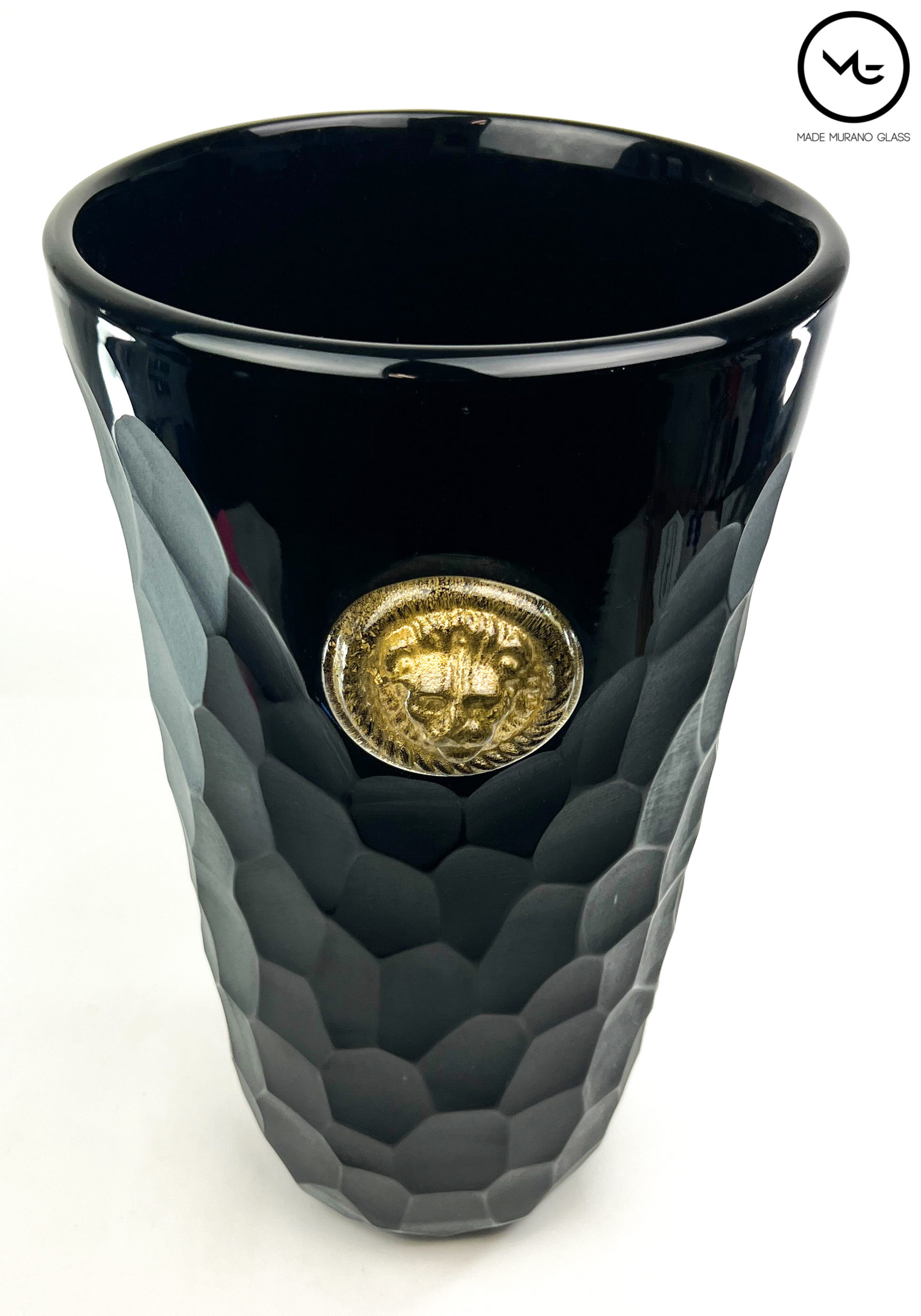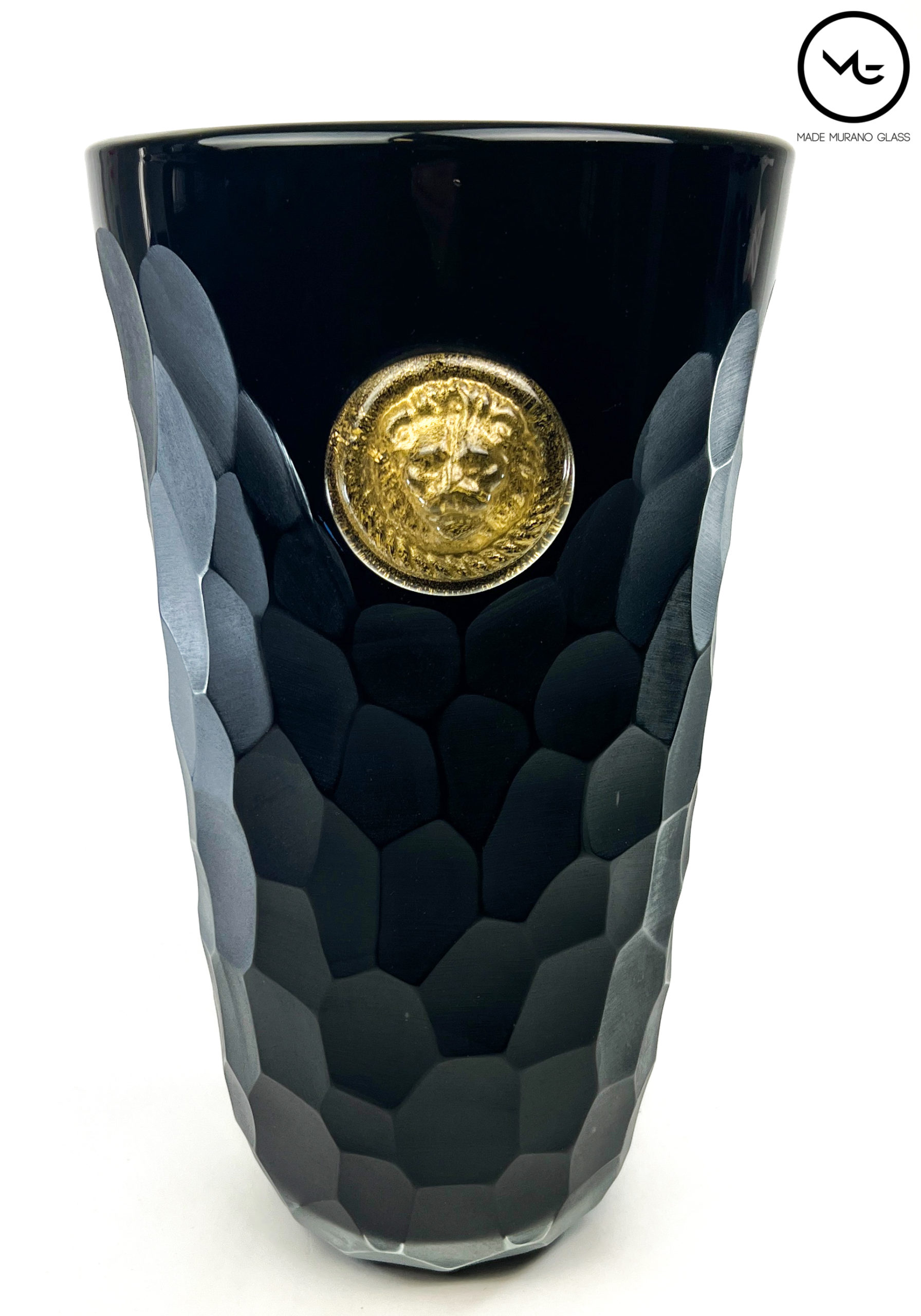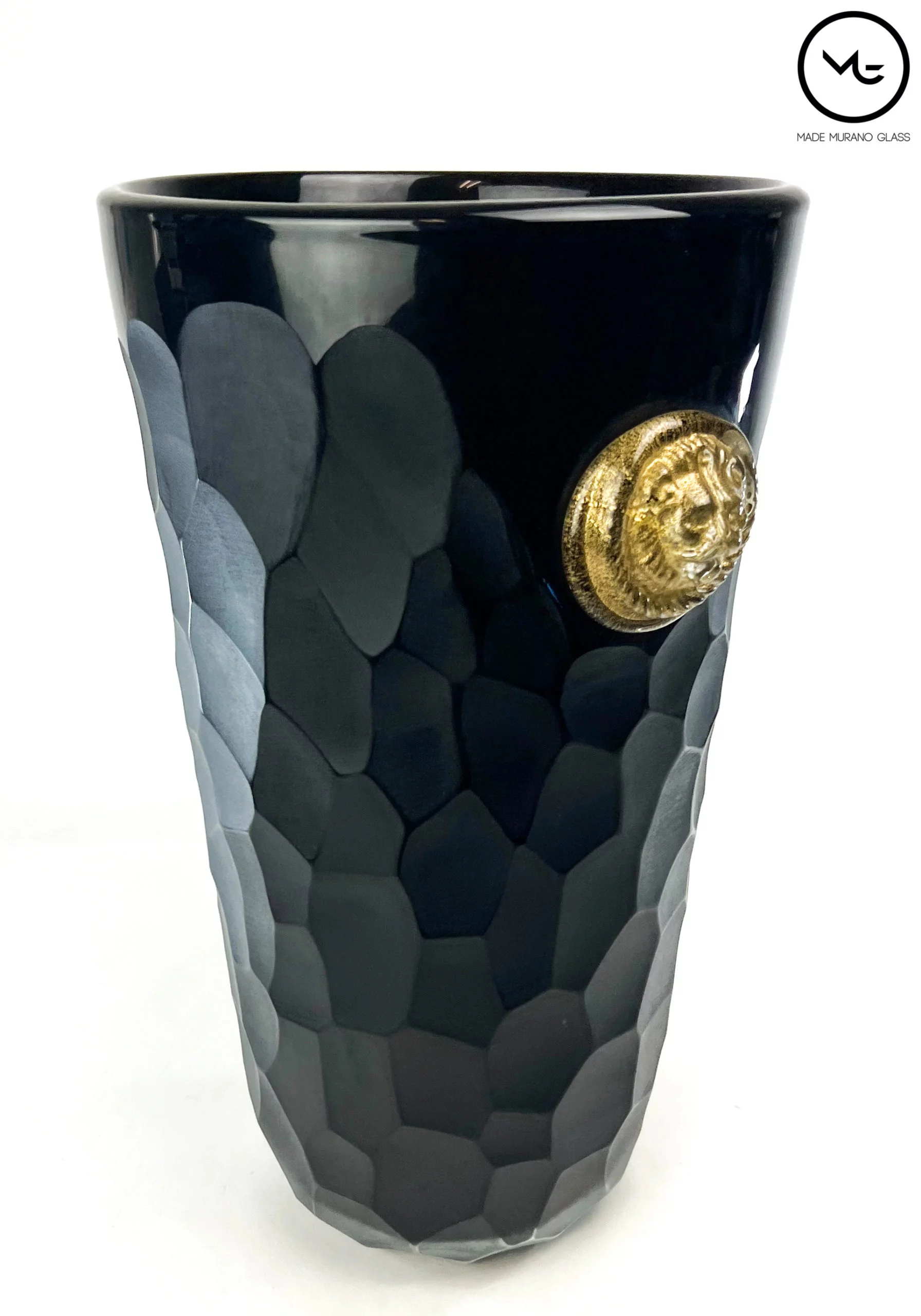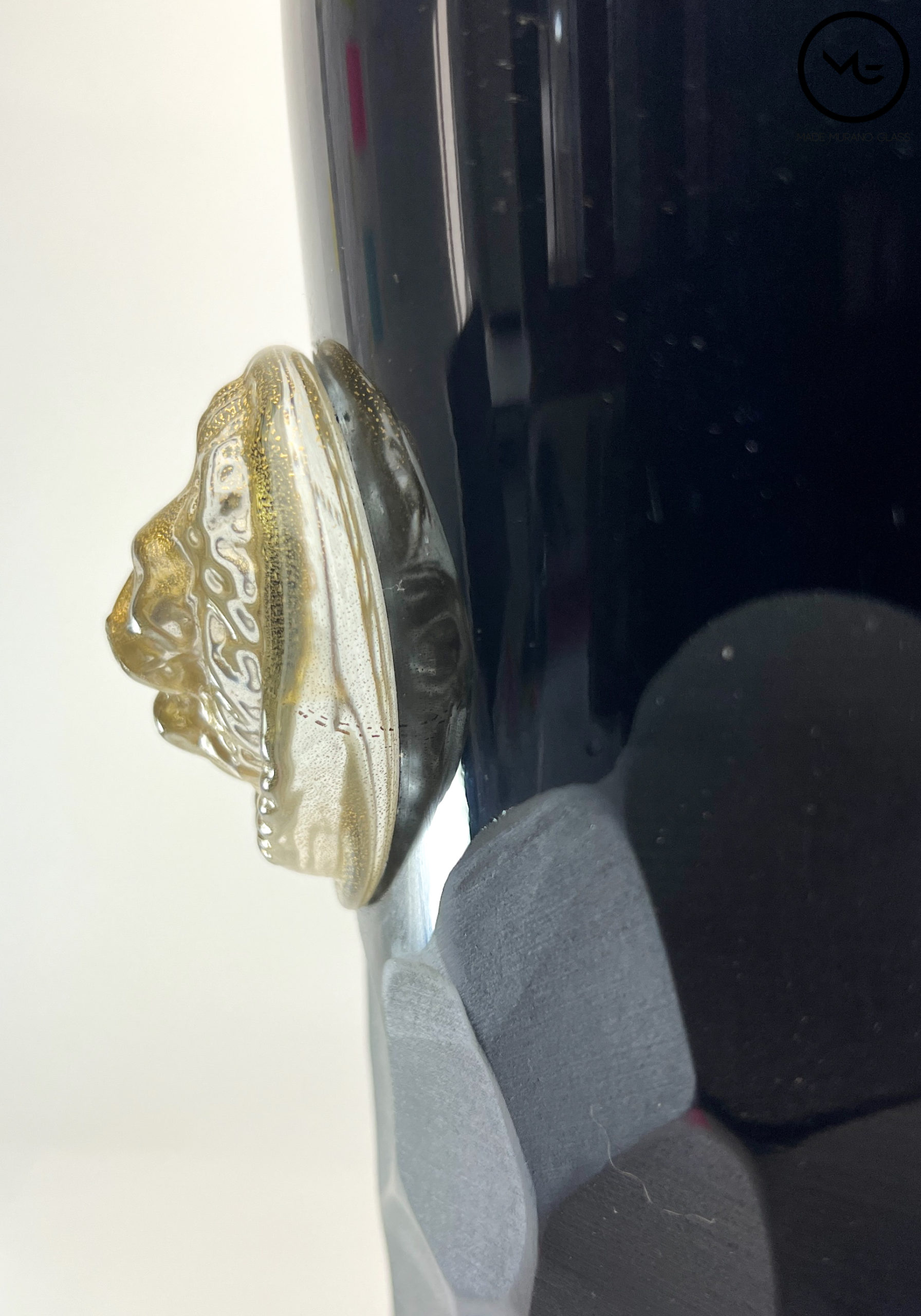 Beaten Vases Collection – Black Murano Glass Vase With Gold Lions