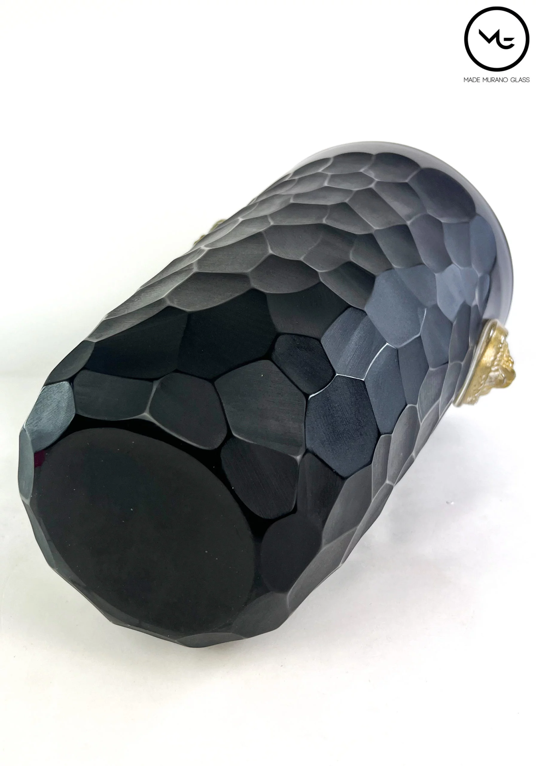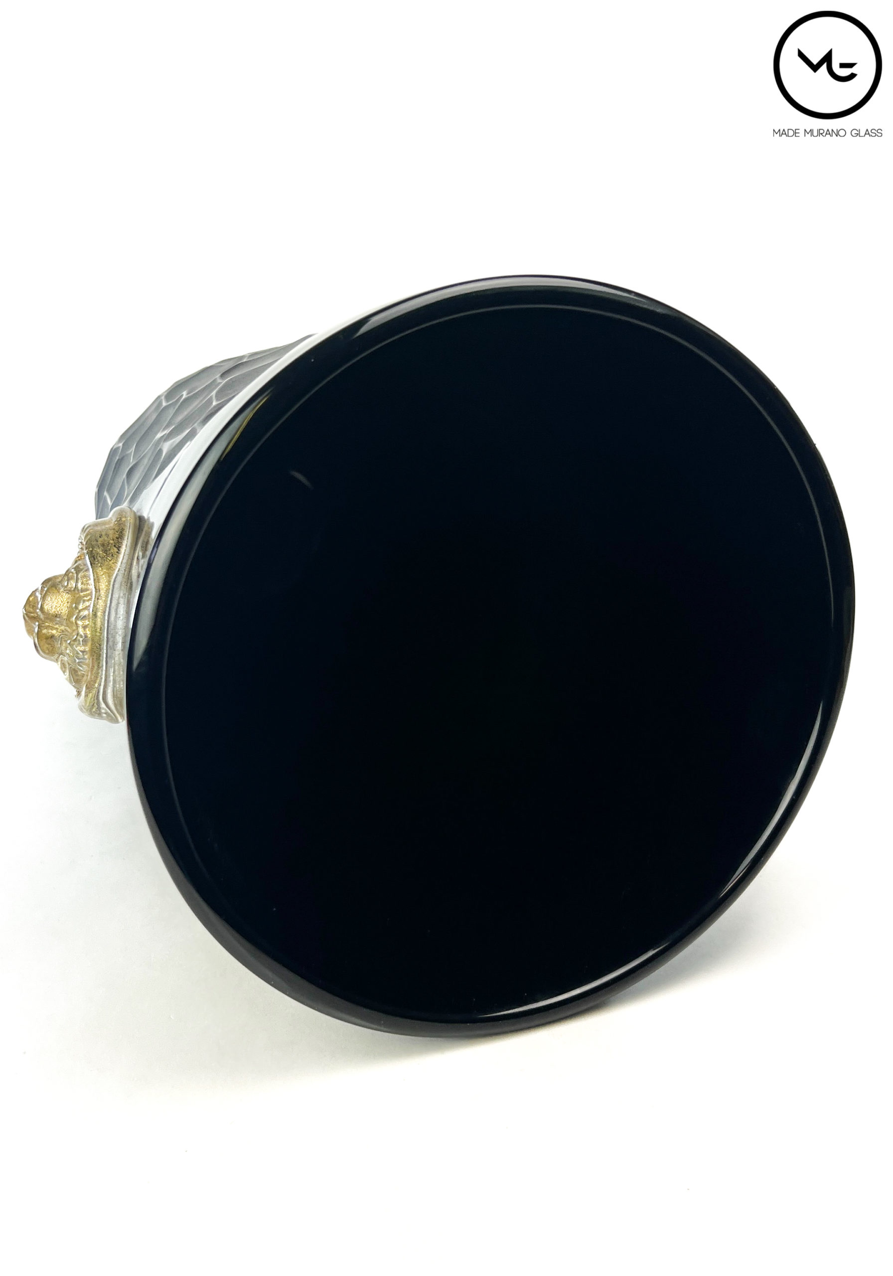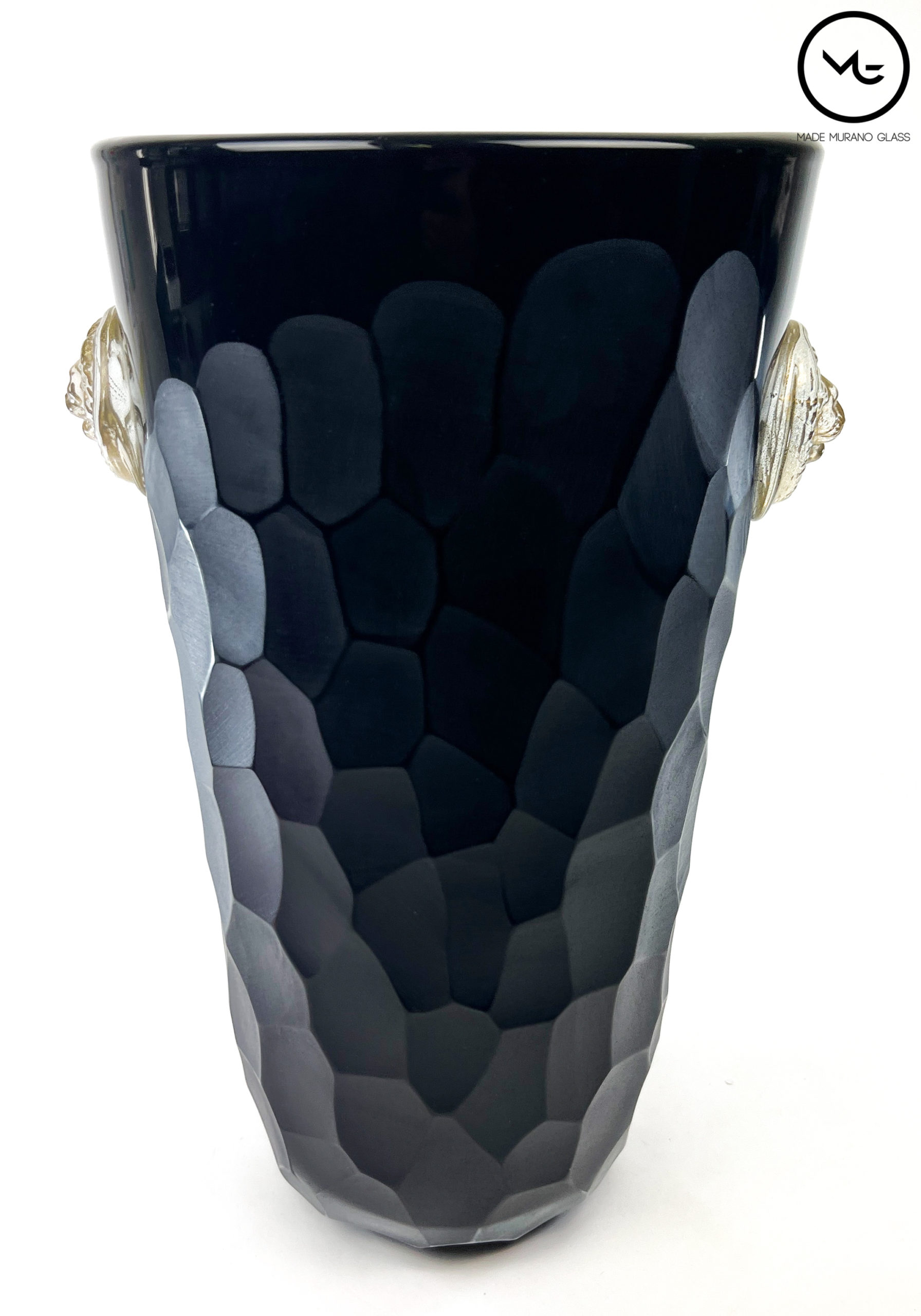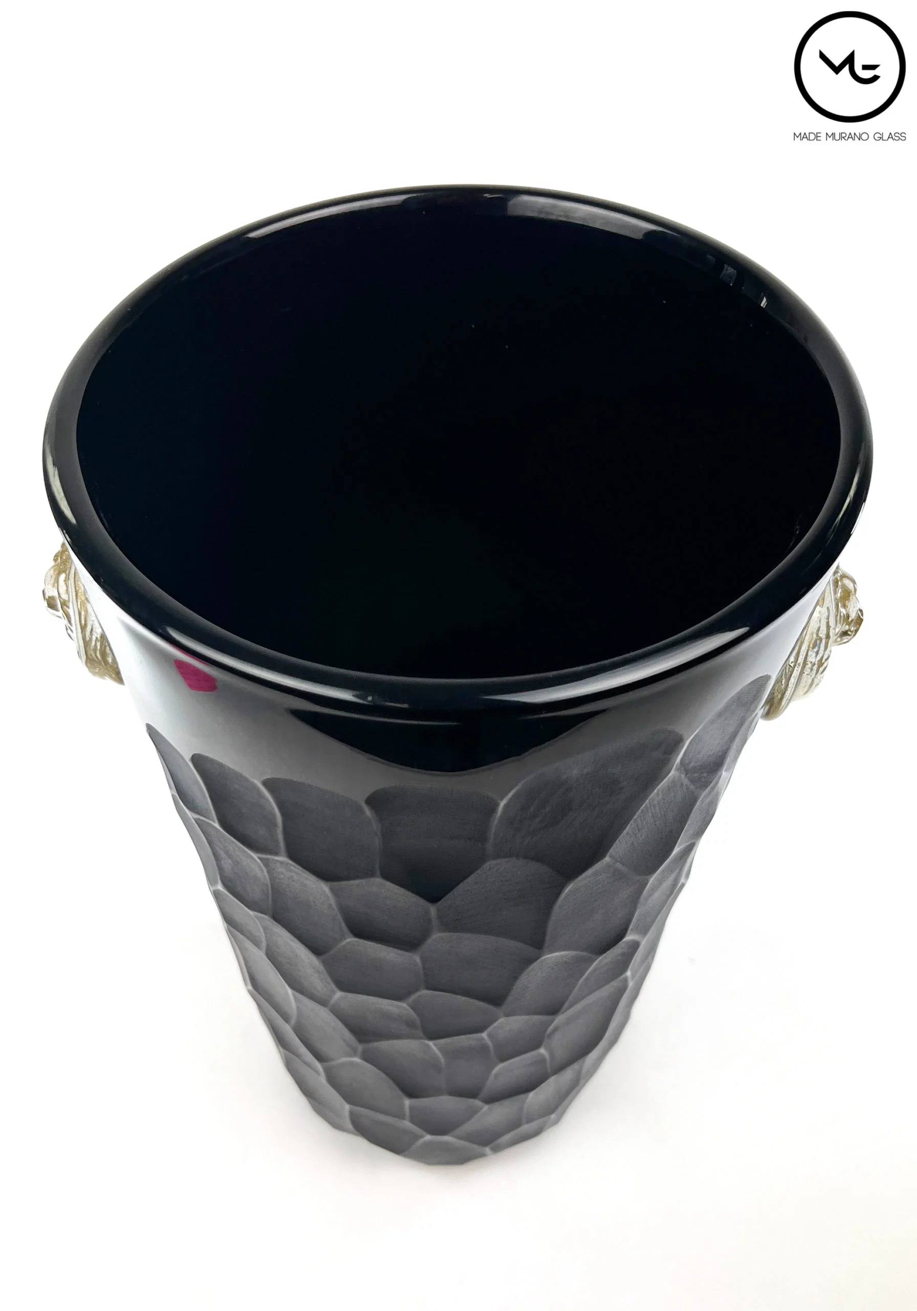 Beaten Vases Collection – Black Murano Glass Vase With Gold Lions