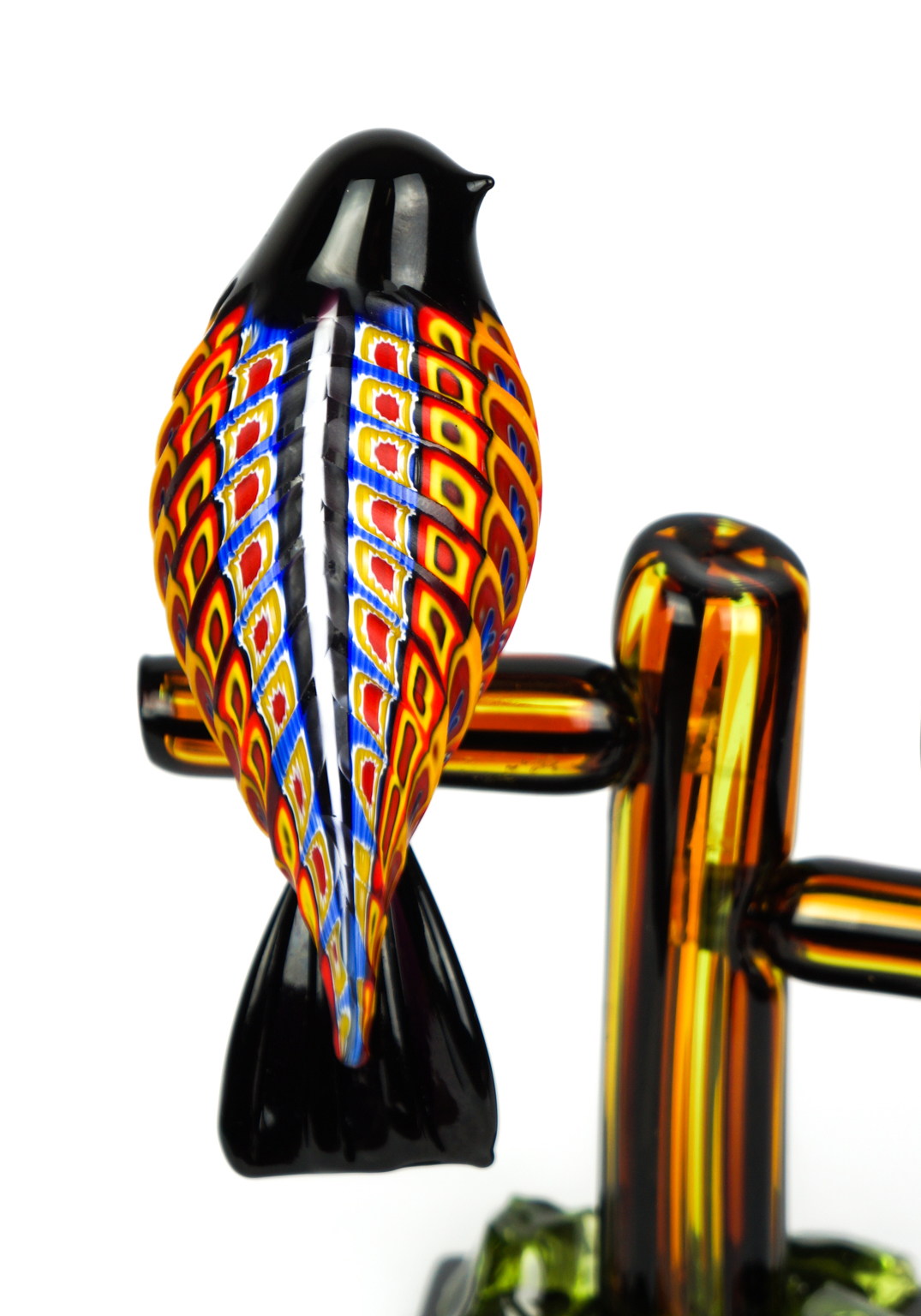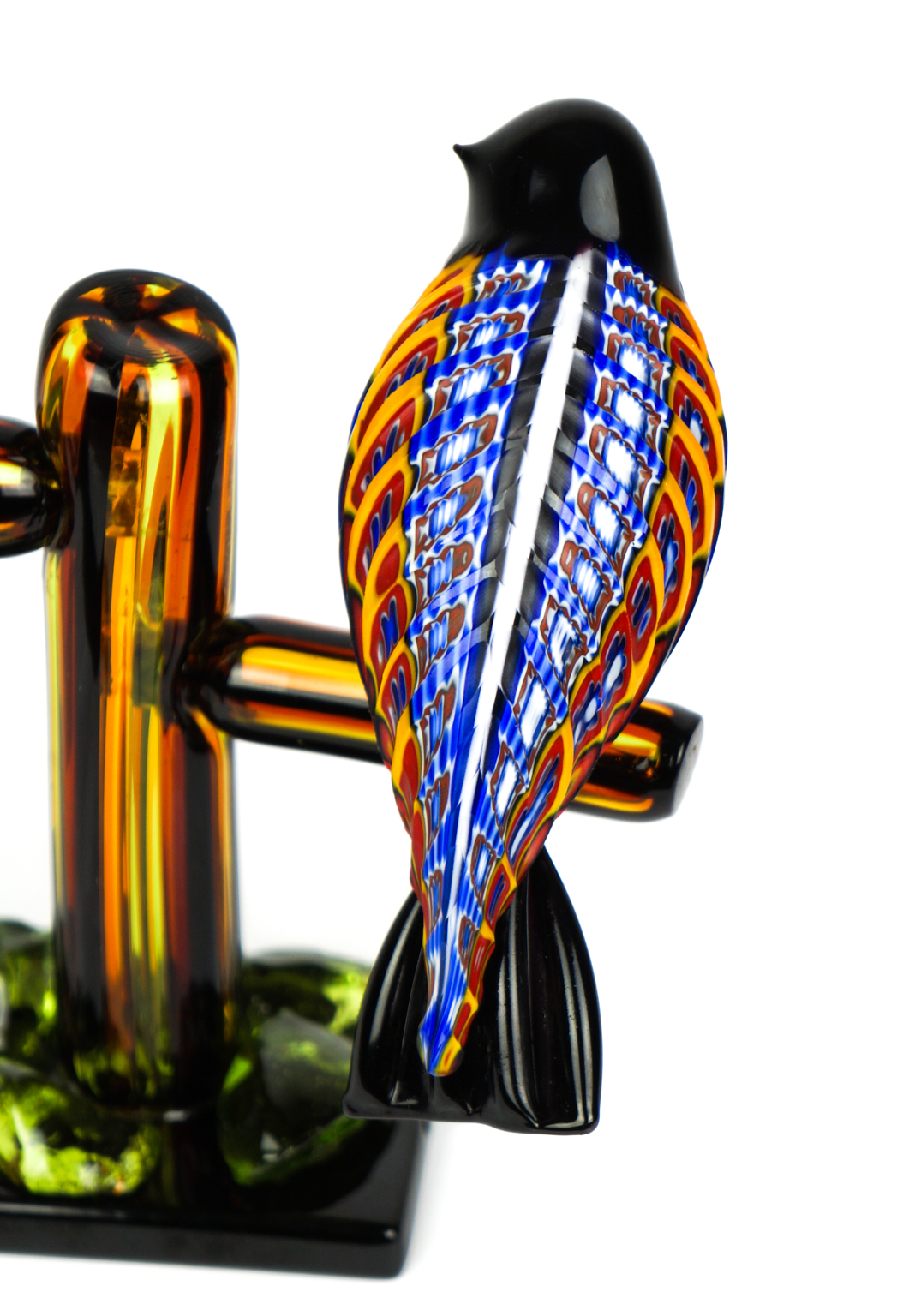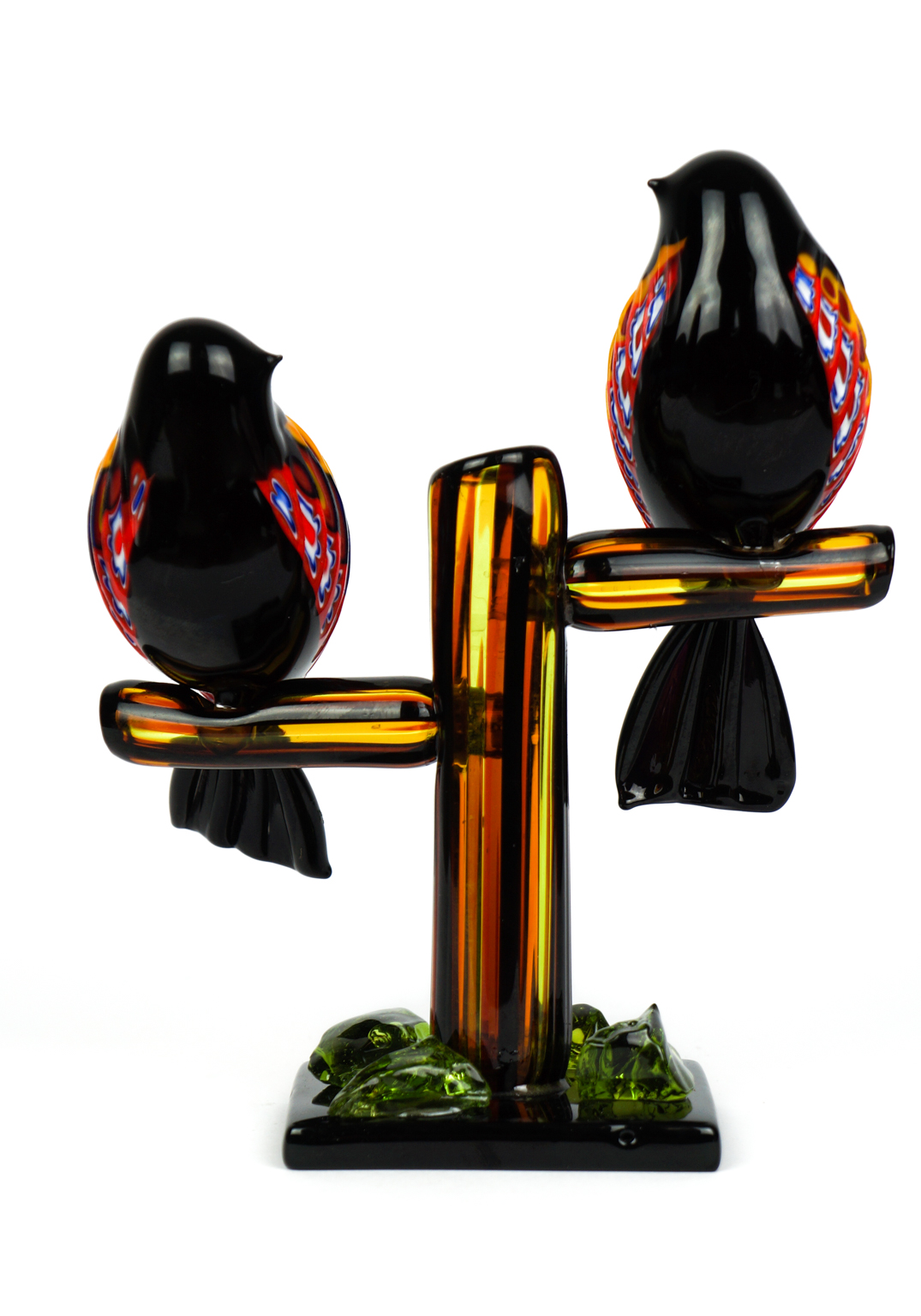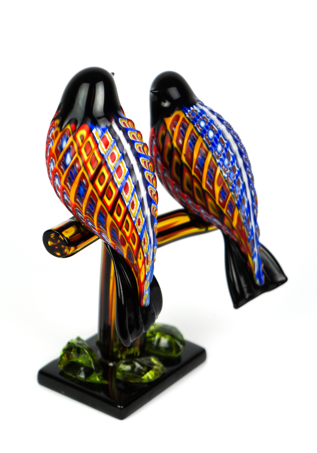 Sculpture of two birds in Murano blown glass entirely handmade with millefiori Murrina process and engraving in the body.
