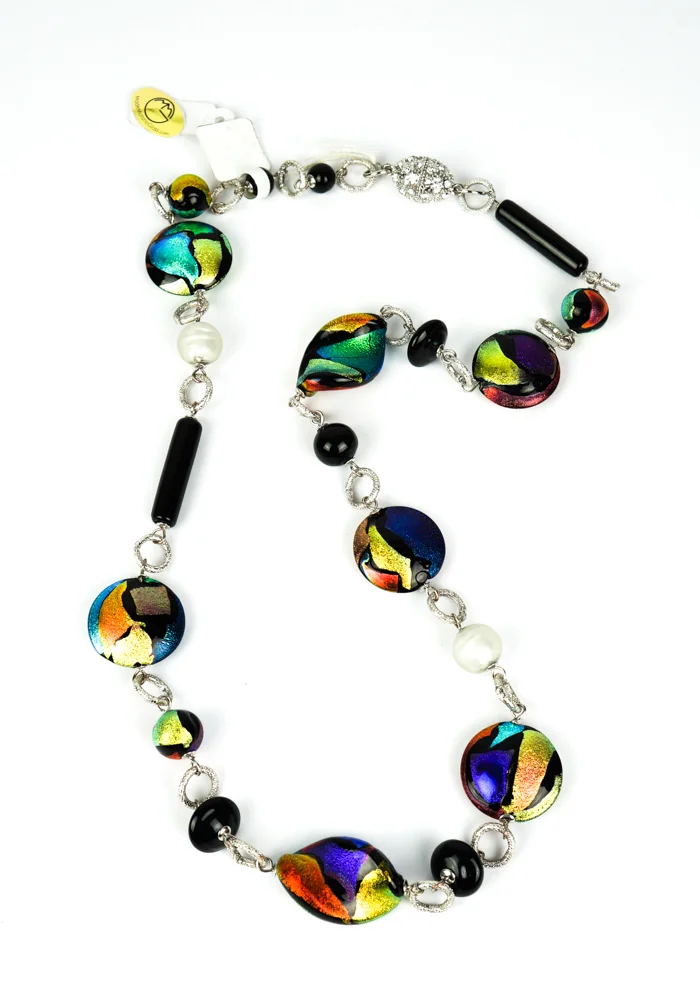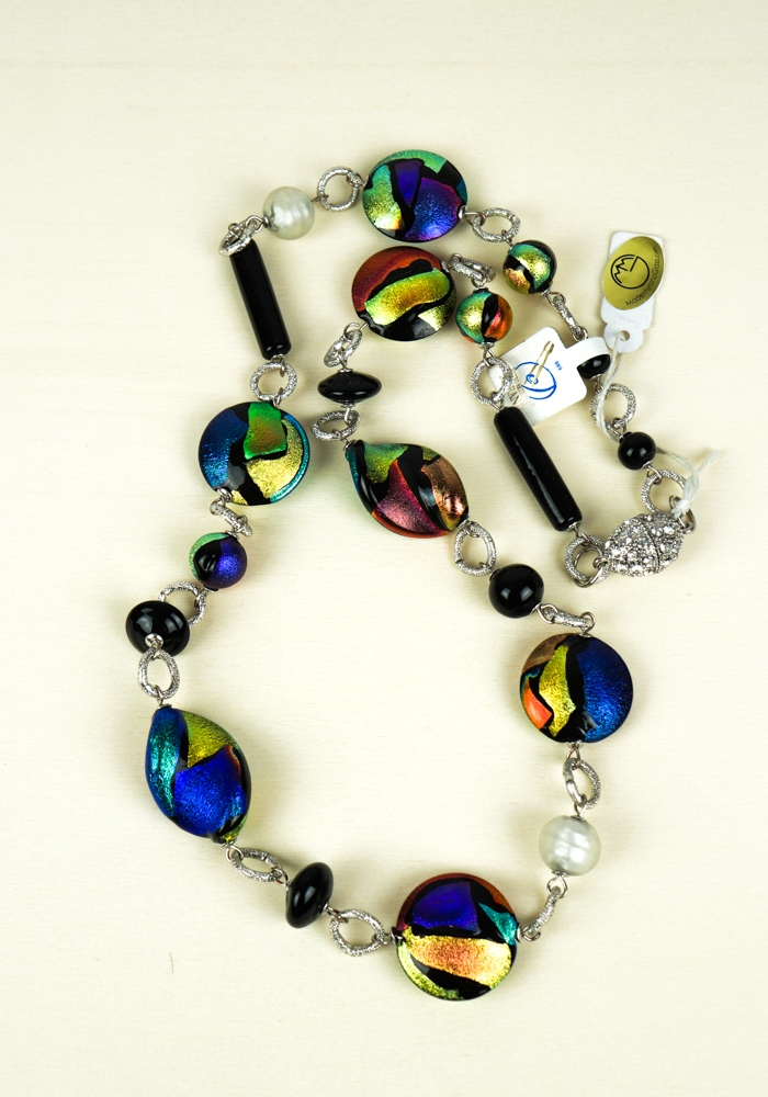 Exclusive venetian glass jewelry completely handcraft product. Produced with “lume” working, with great care and precision by skilled Murano artisans. Bright and shiny colours, sophistication and lightness make this work unique and inimitable. The pearls of this fantastic jewelry in Murano glass have different shapes and assorted colors.