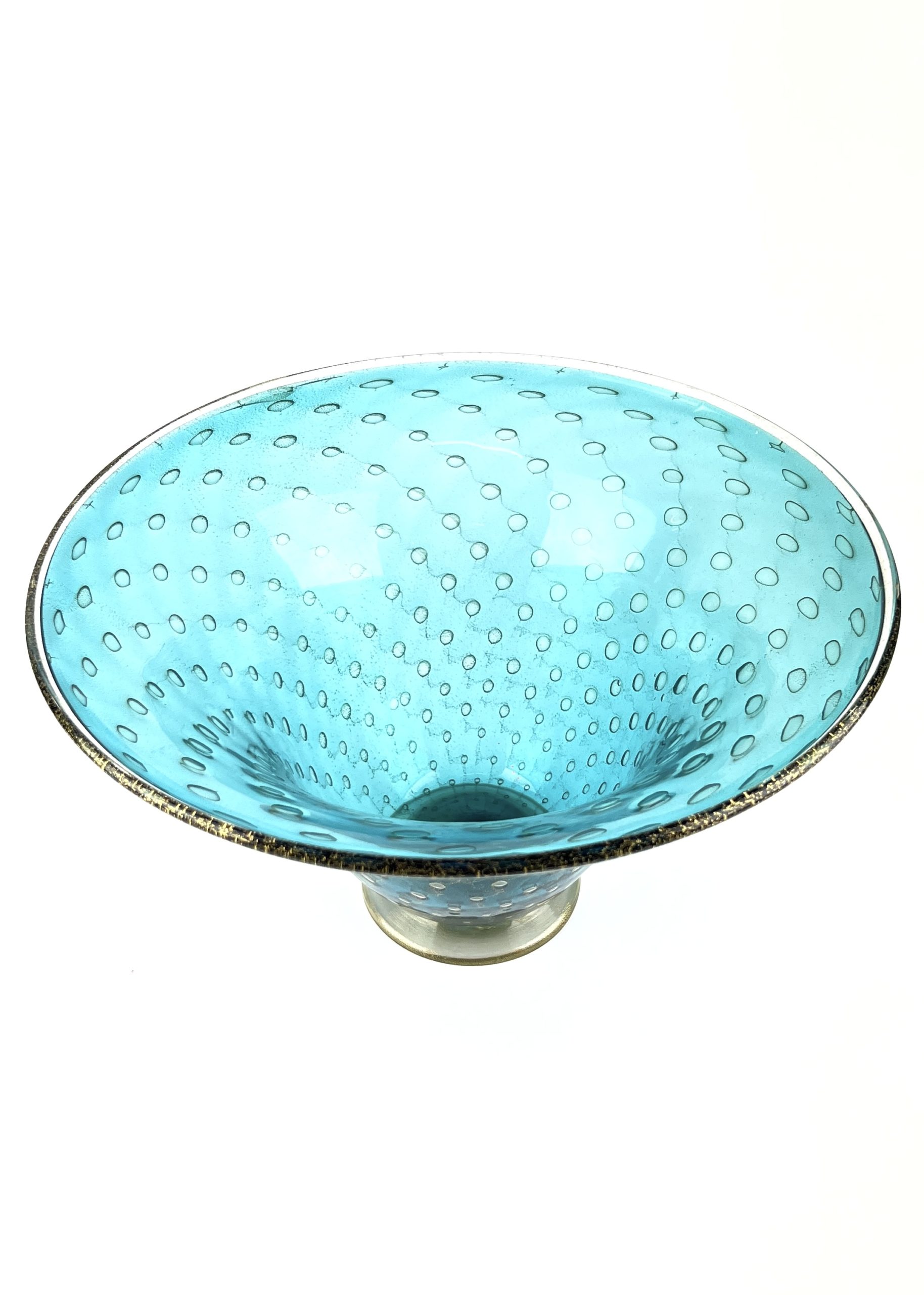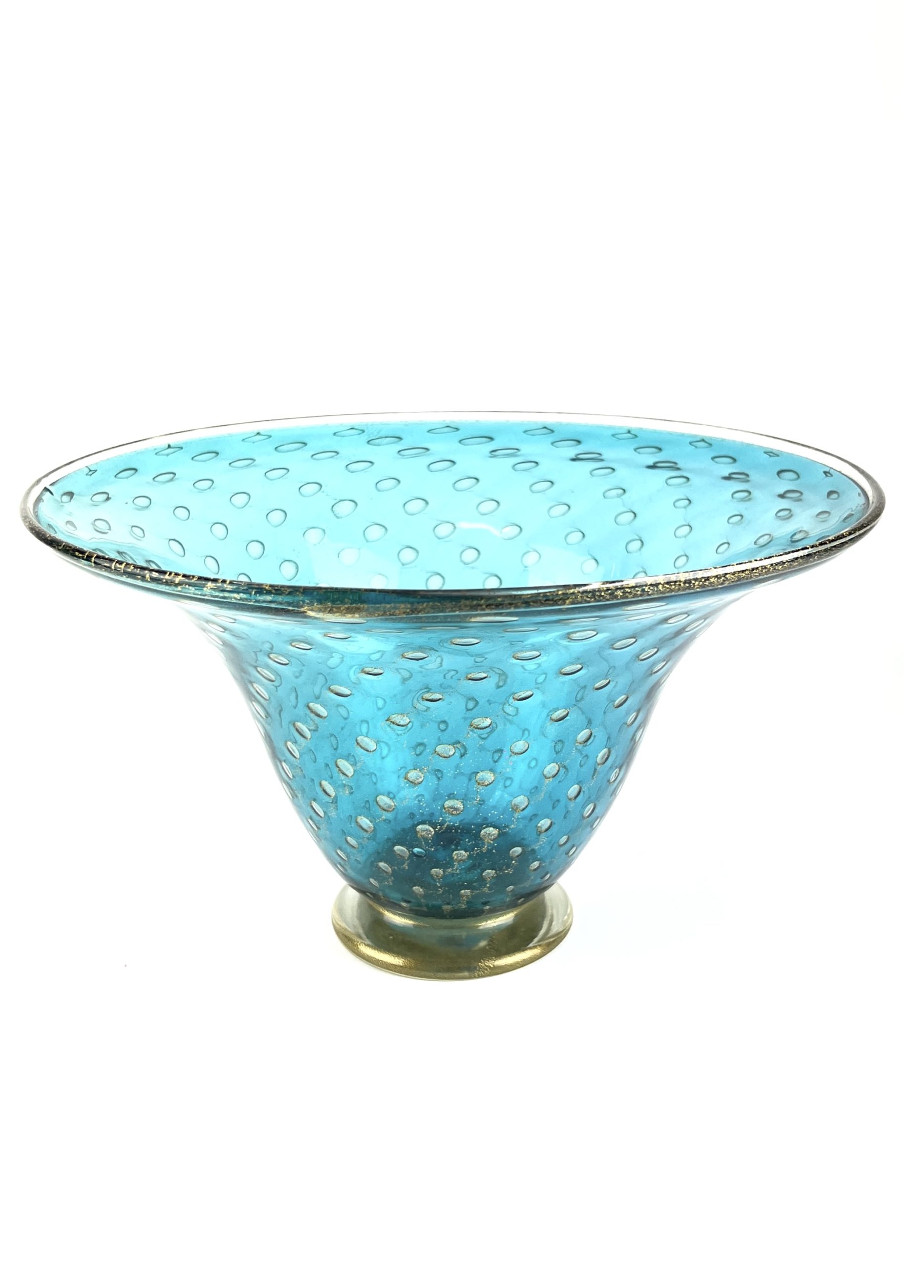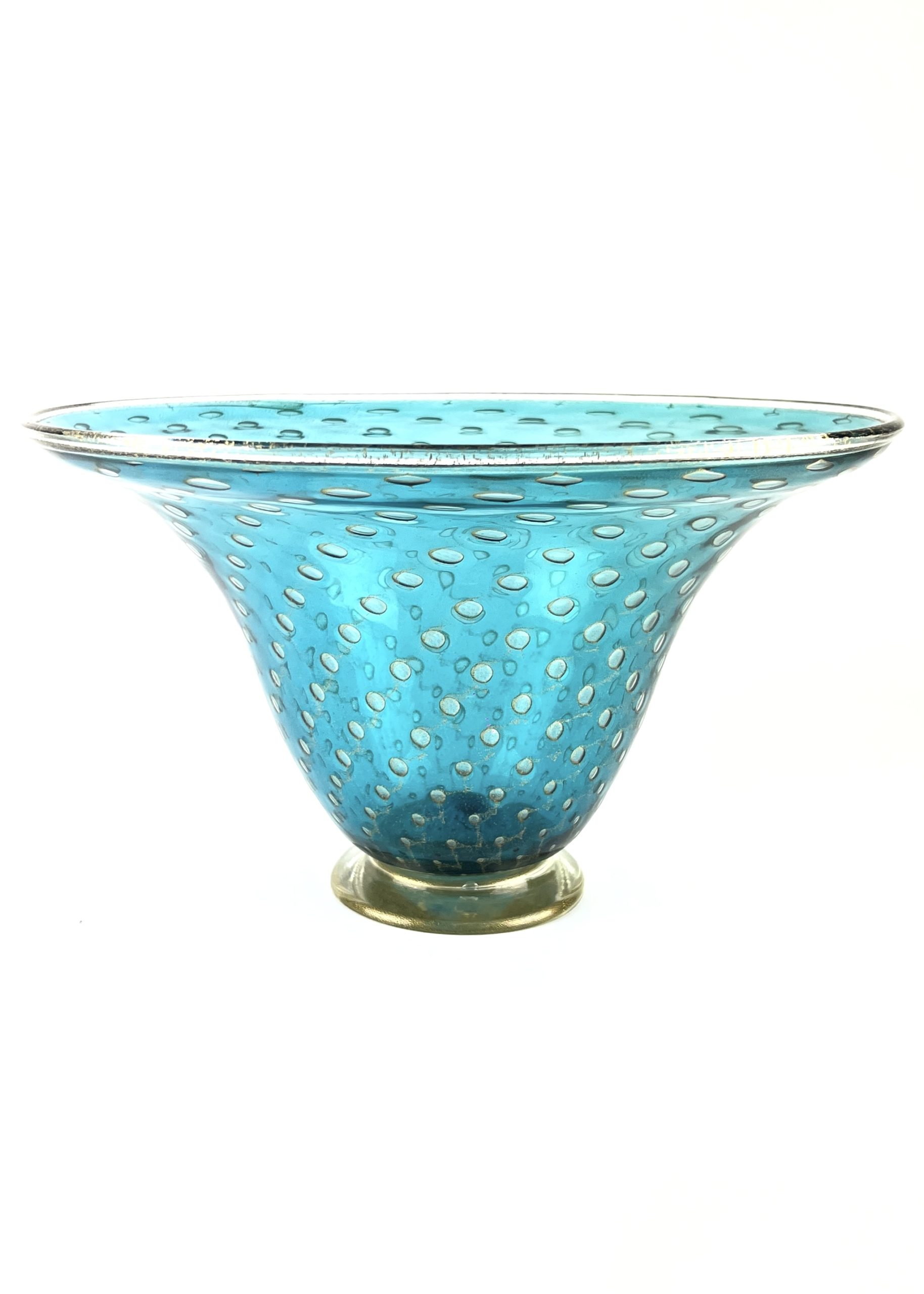 Blown Murano glass centerpiece with 24 carat gold leaf decorations made with the “Balloton” glass working technique.