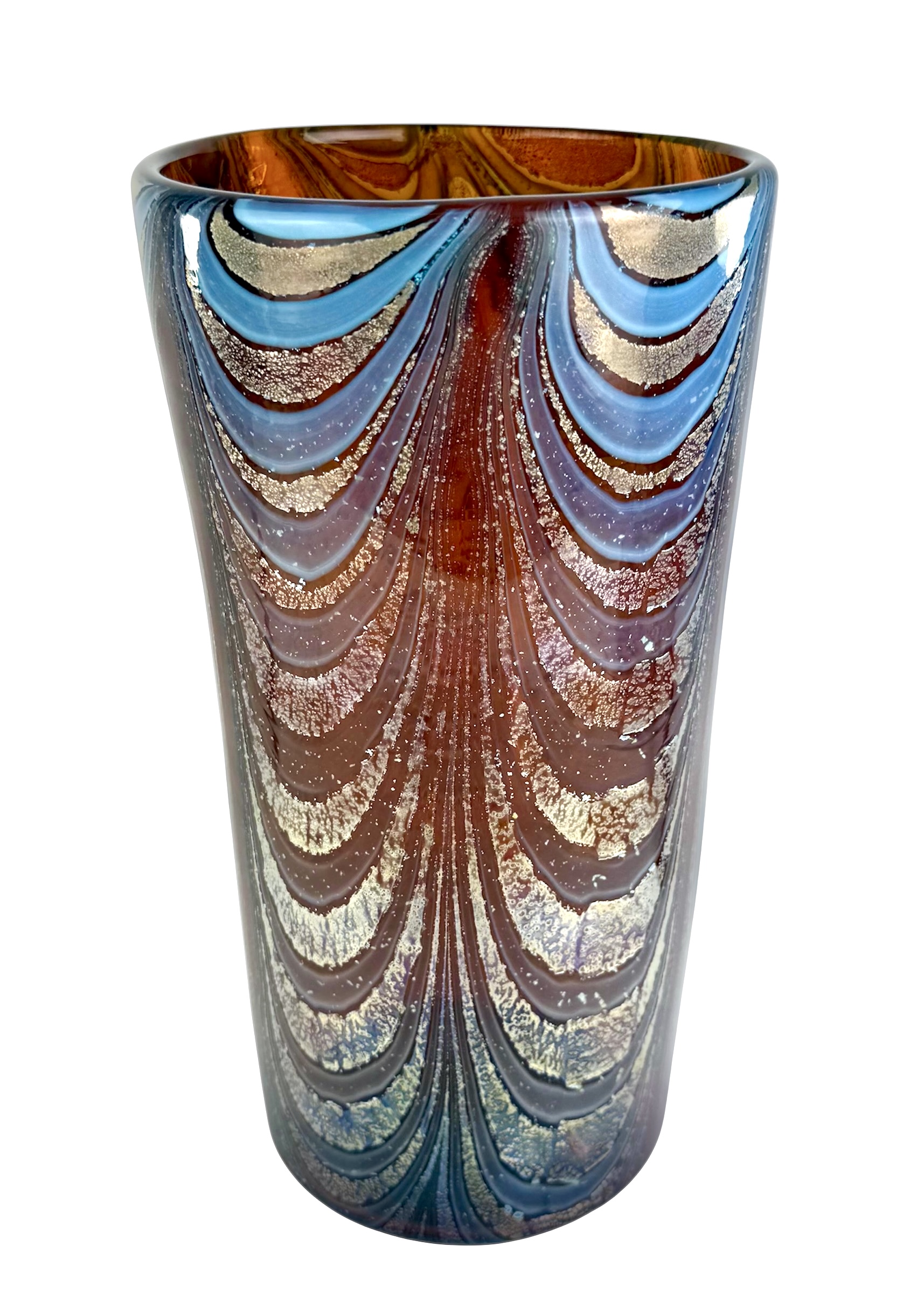 Skiathos – Tobacco Murano Glass Vase “Fenicio” With Silver