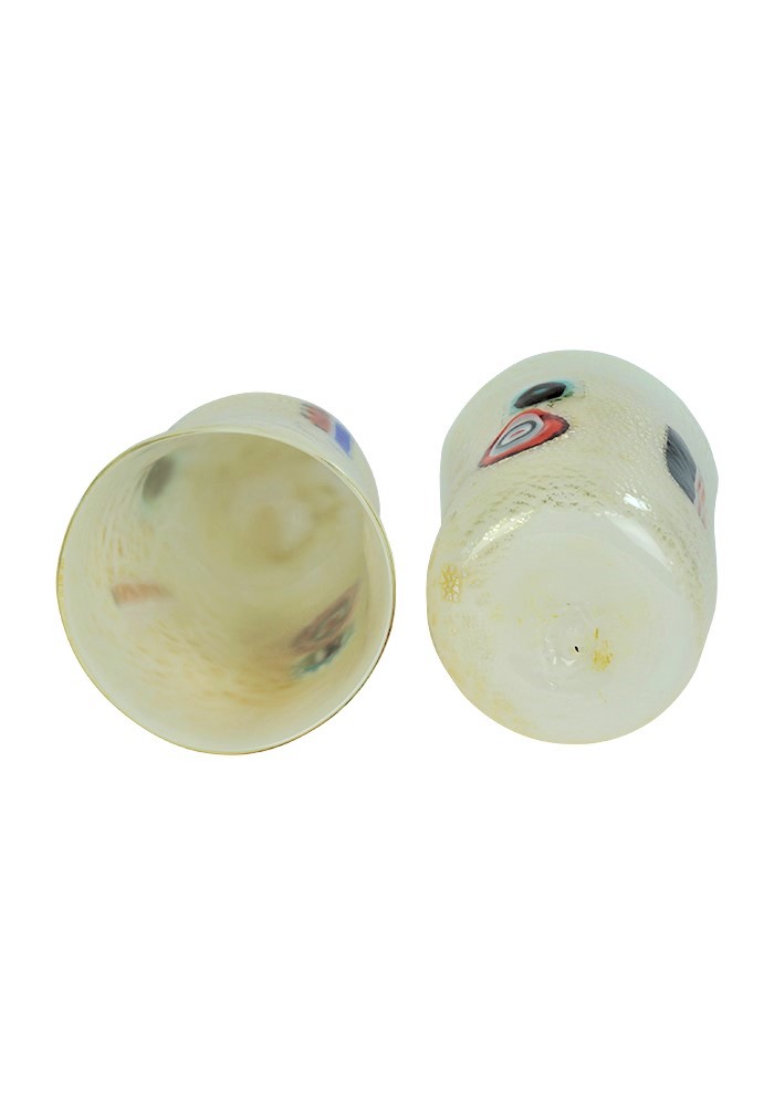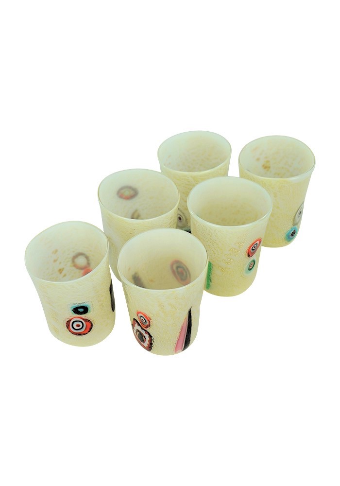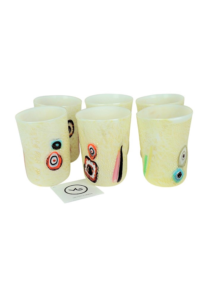 The set includes Six Murano Glass Tumblers with decoration in murrina Millefiori and real silver leaf.