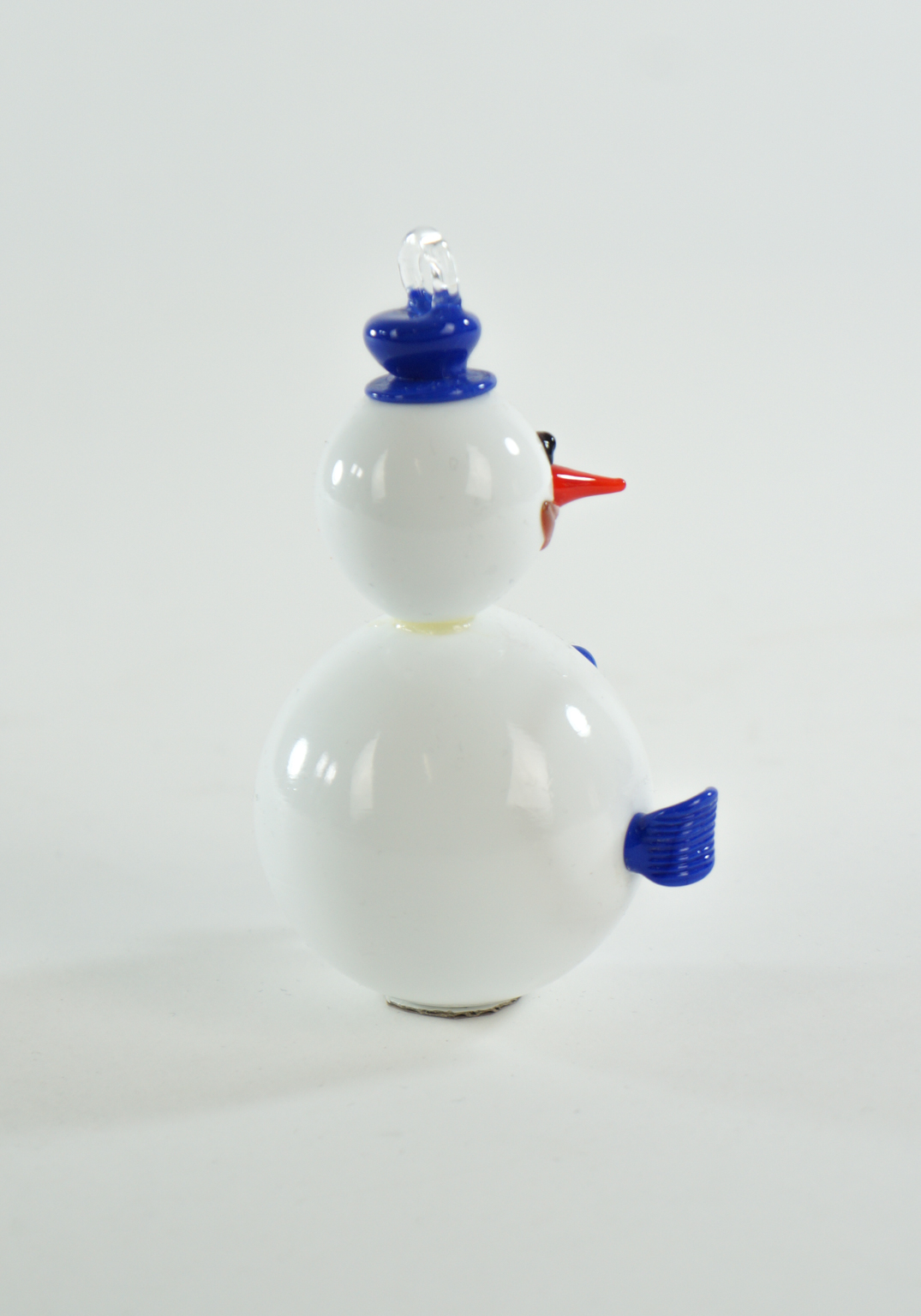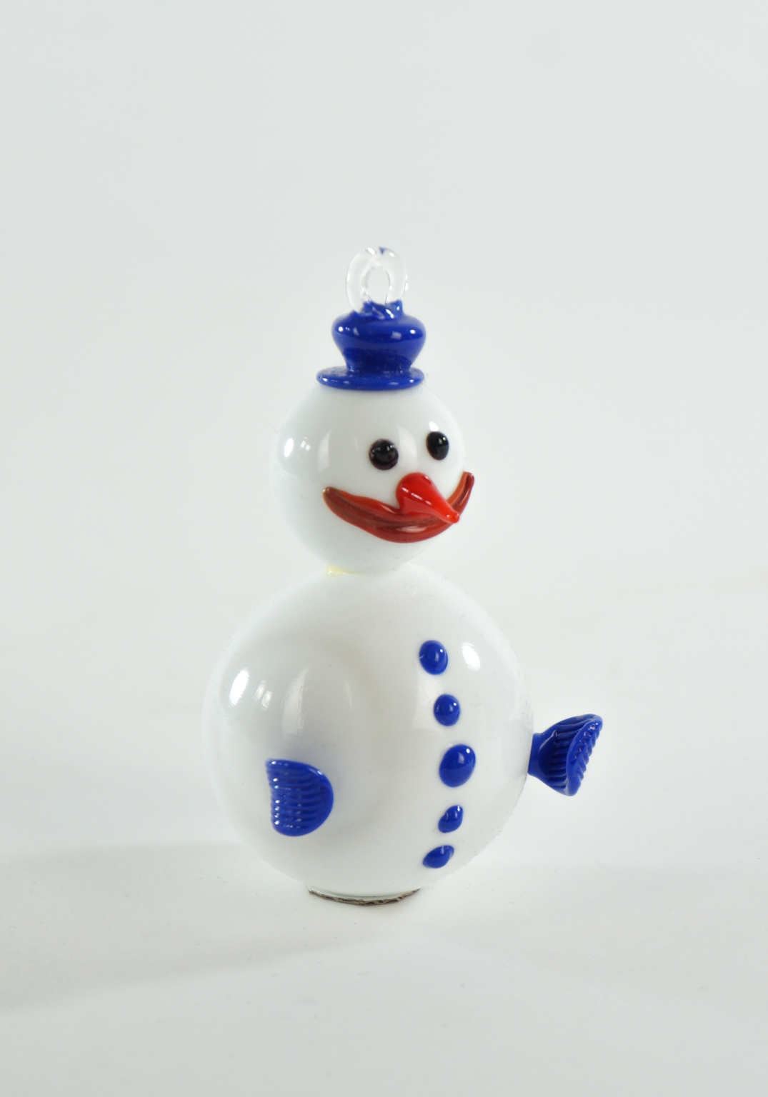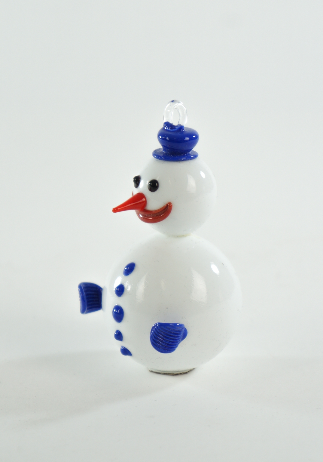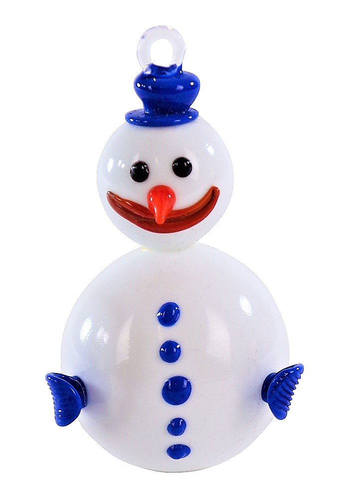 Fun blue Murano glass snowman to hang on your Christmas tree.