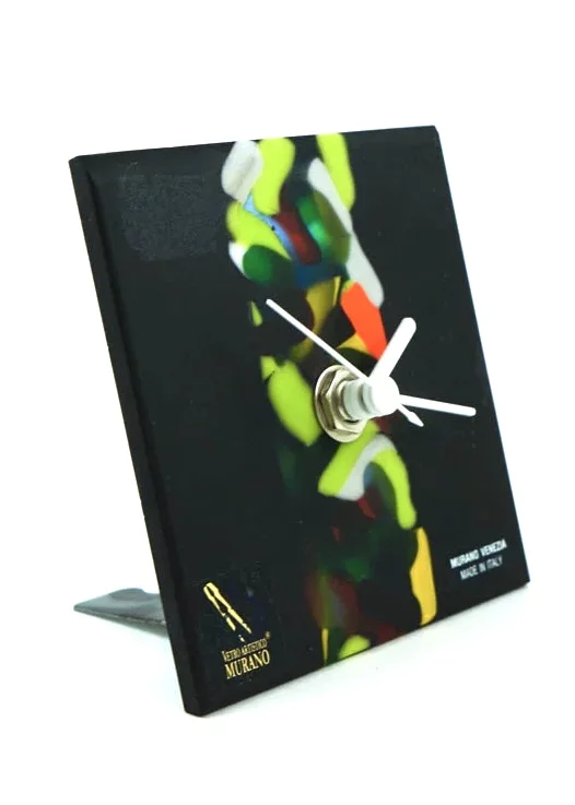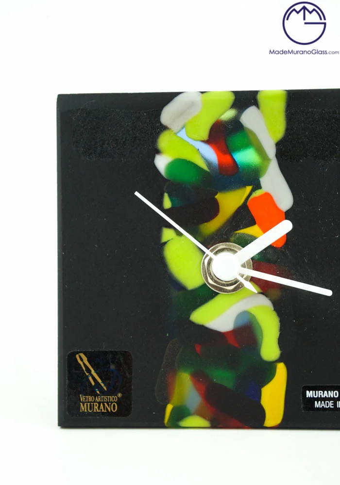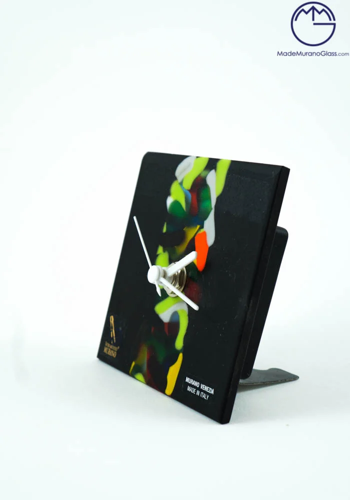 Tanduo – Black Murano Glass Table Clock With Green Decorations