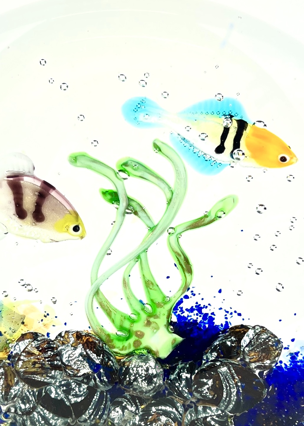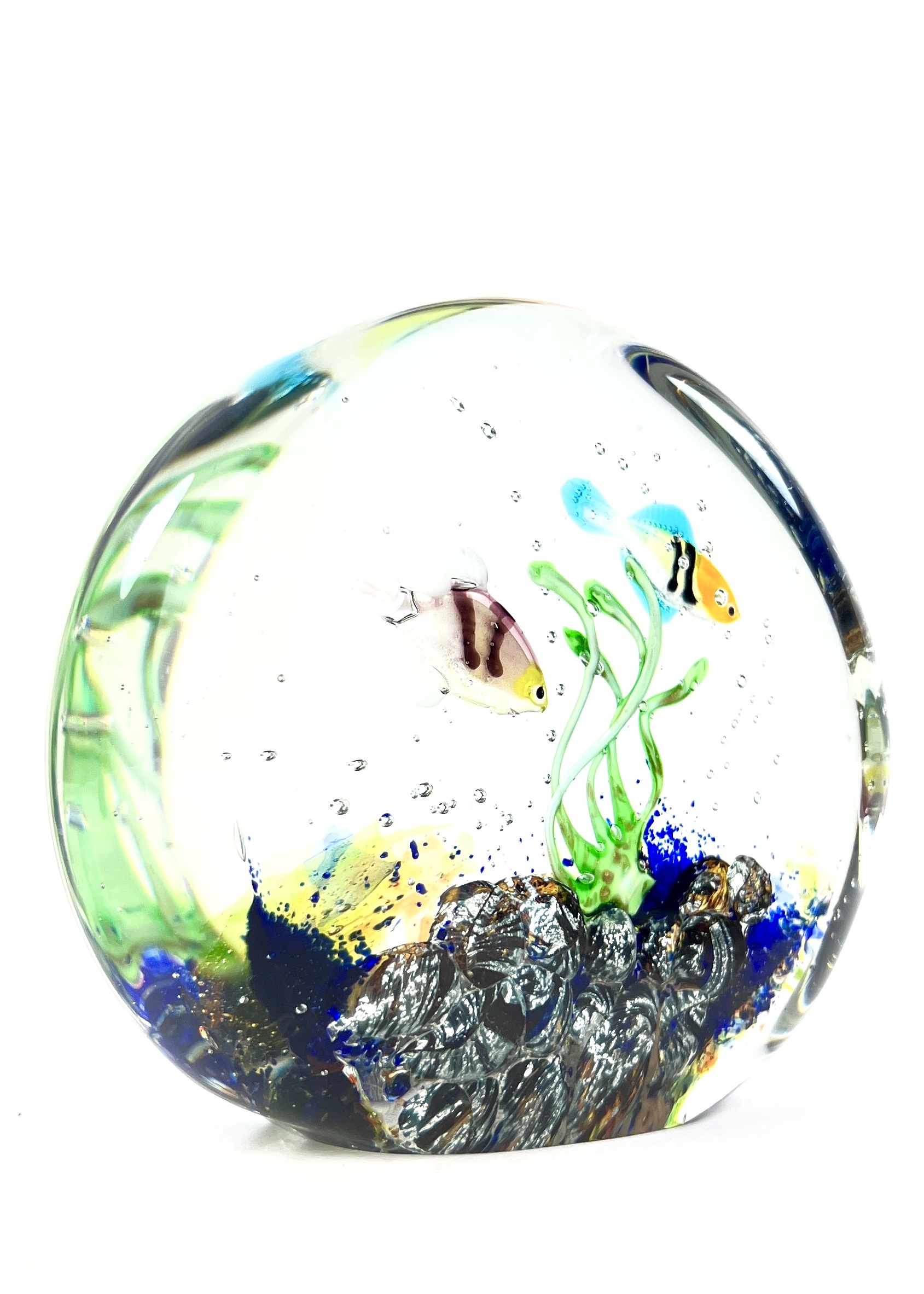 Half-moon aquarium sculpture in Murano glass.