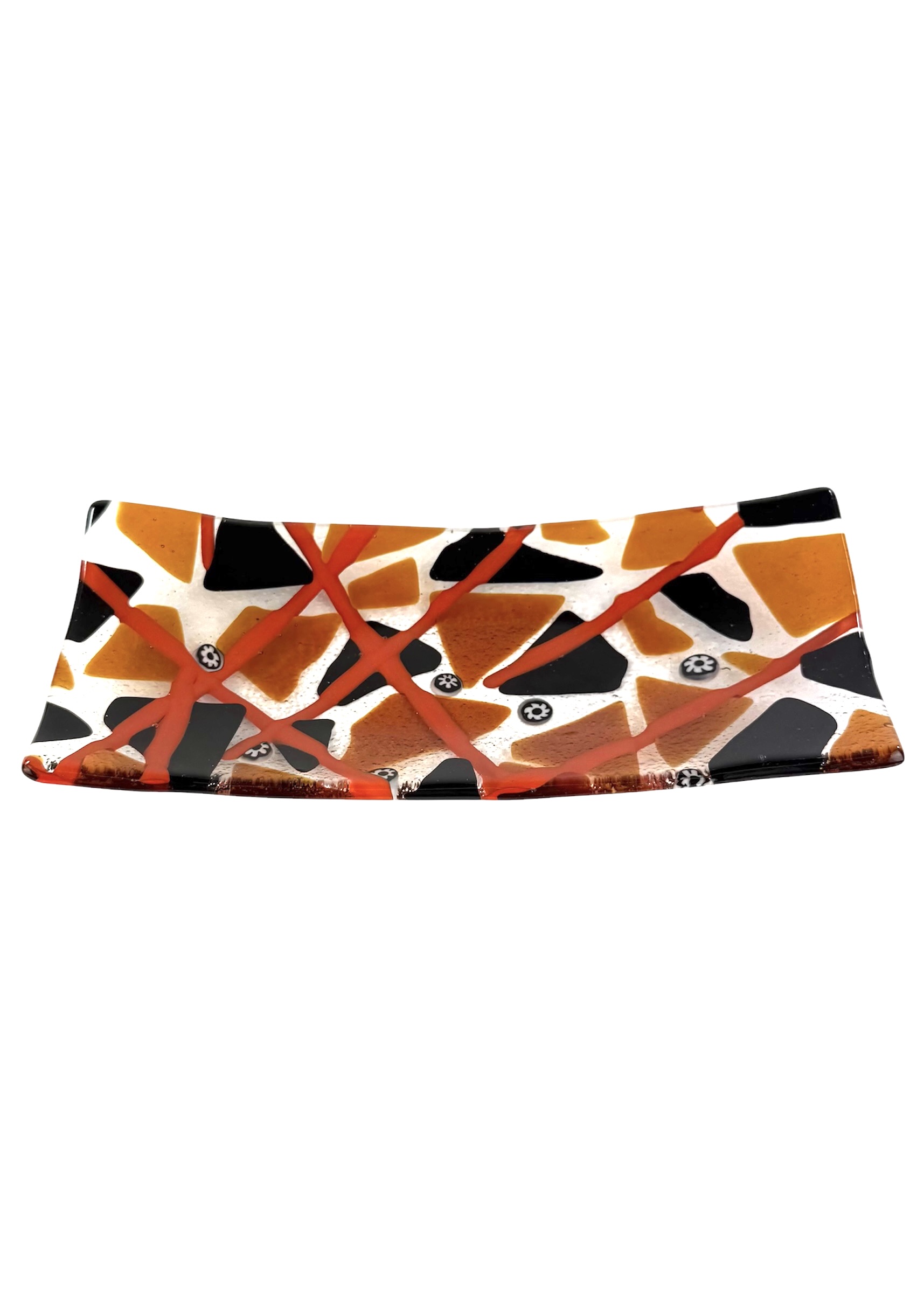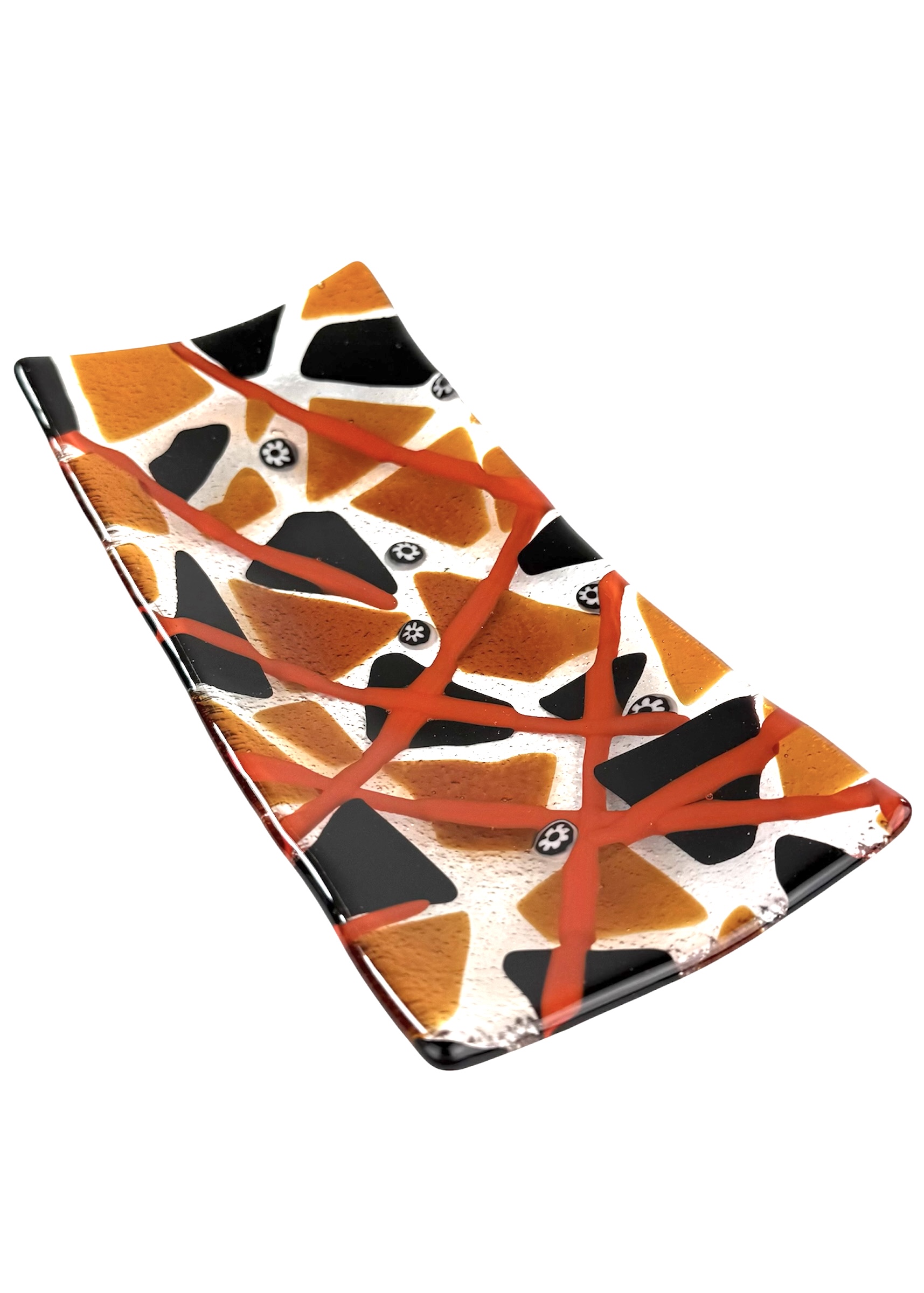 Thomas – Black And Amber Murano Glass Plate With Red Kanne “Houston”