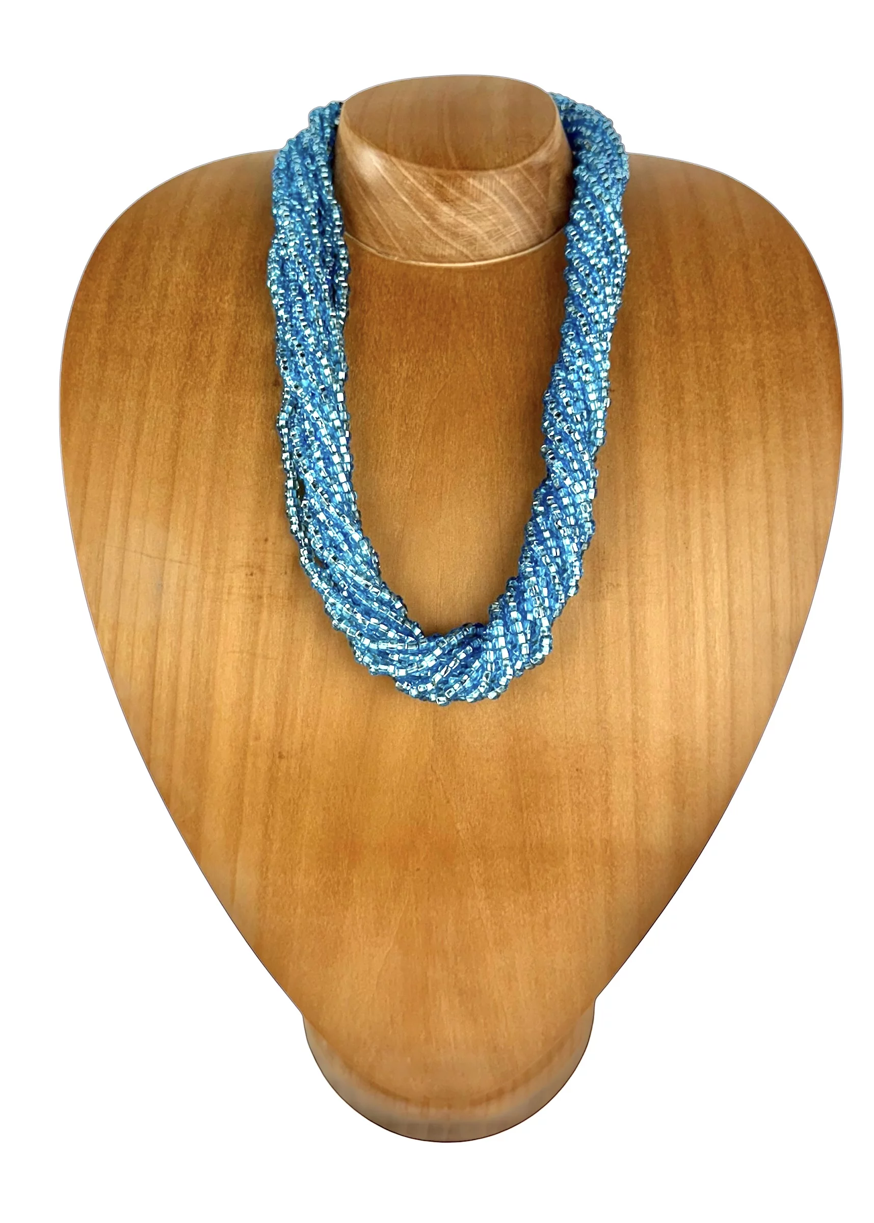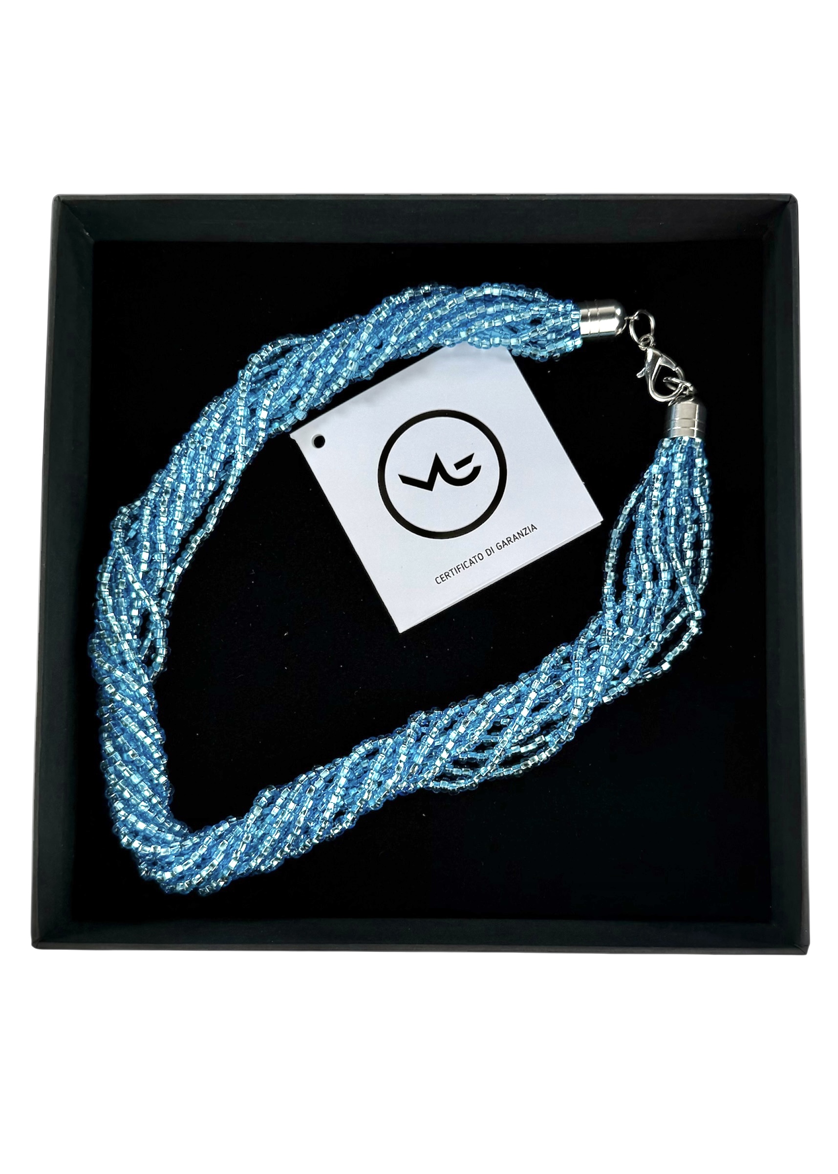 The necklace is made up of 9 threads and contains over 1500 pearls, made and mounted one by one with needle and thread by our master glassmaker.