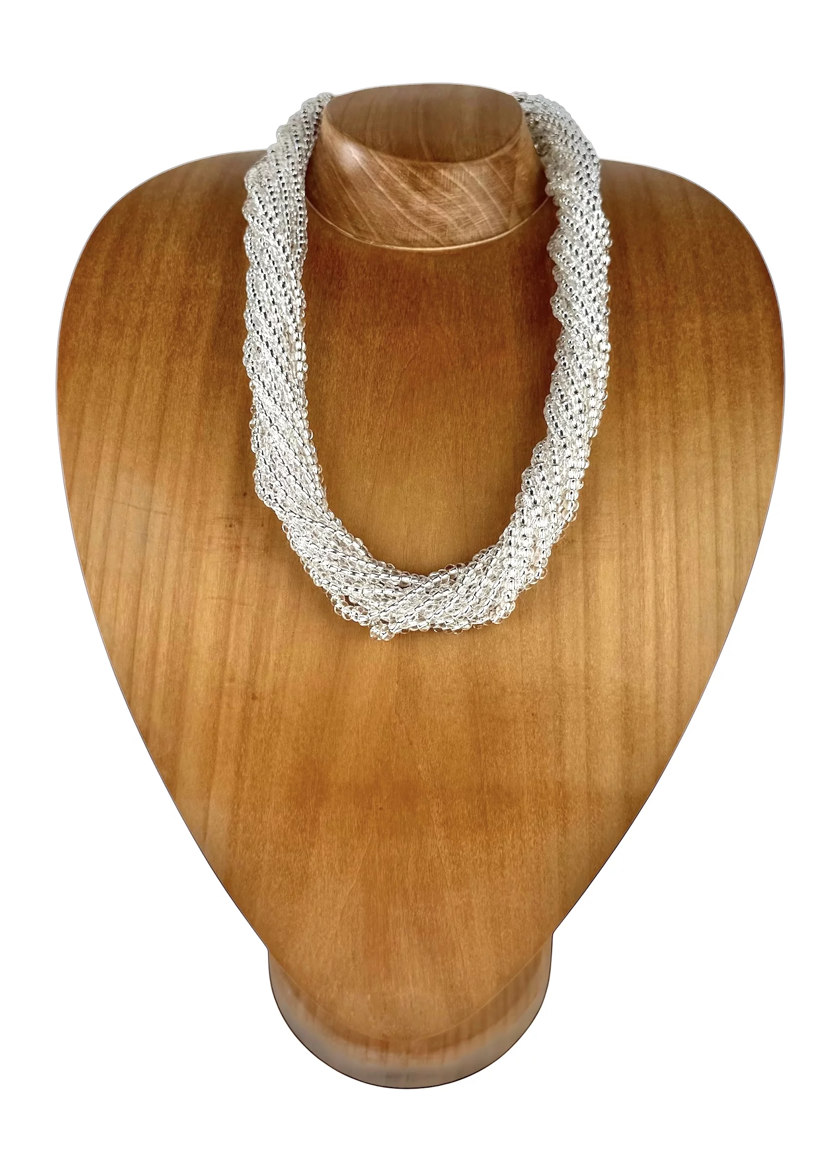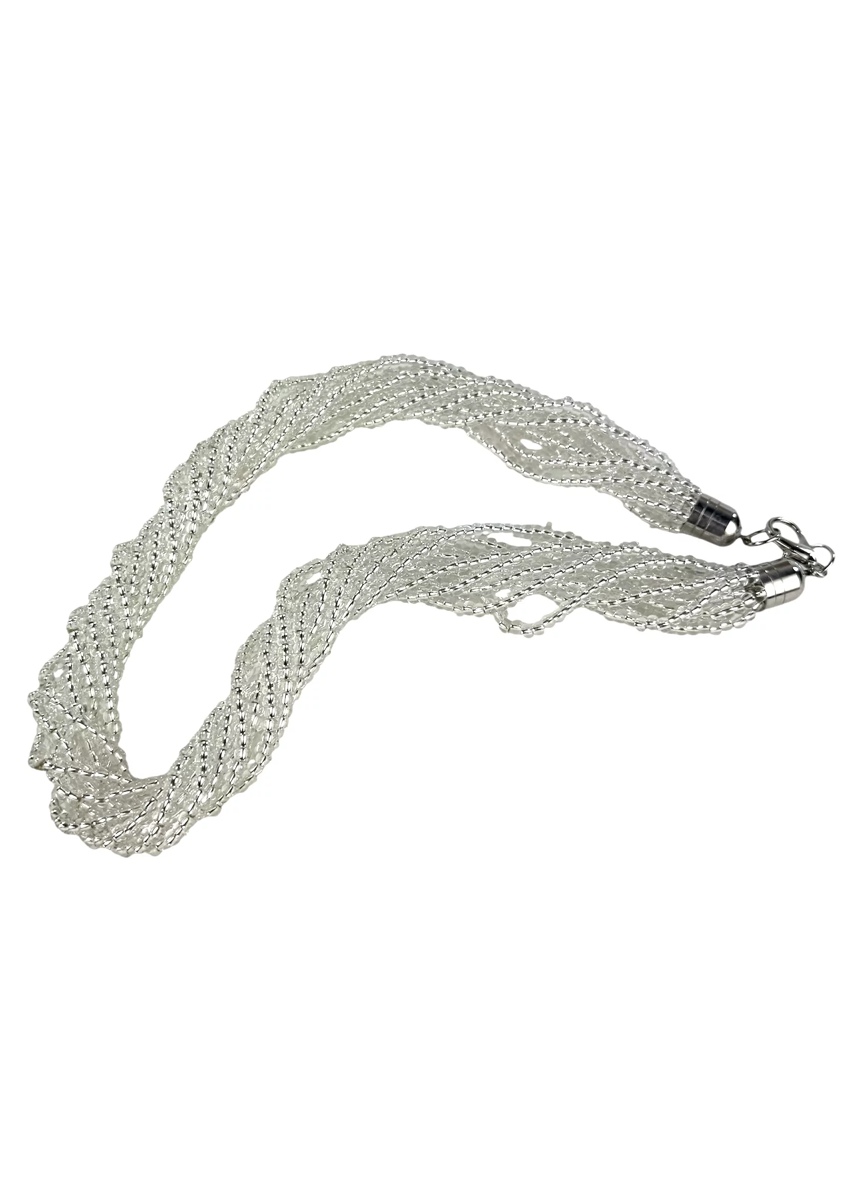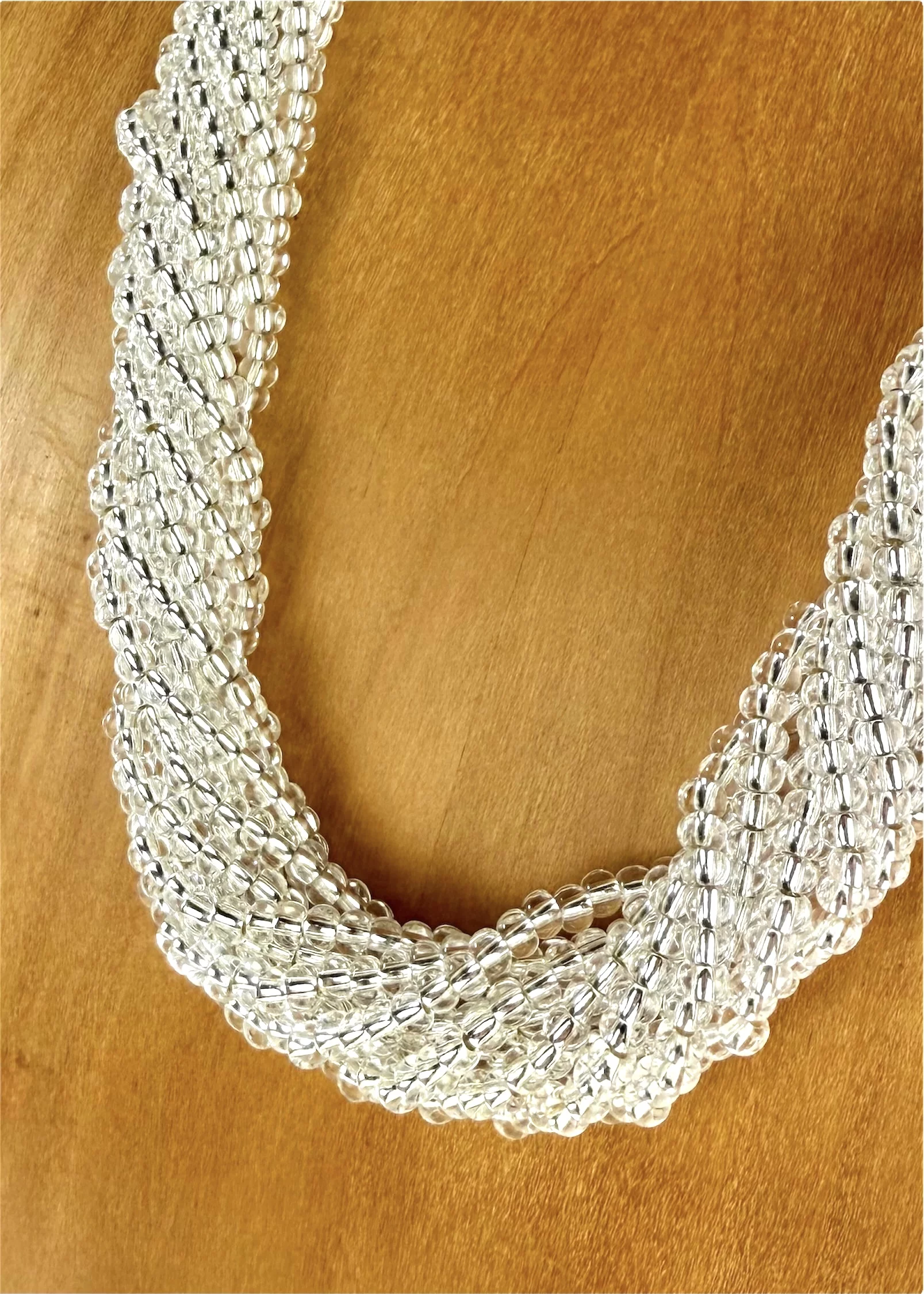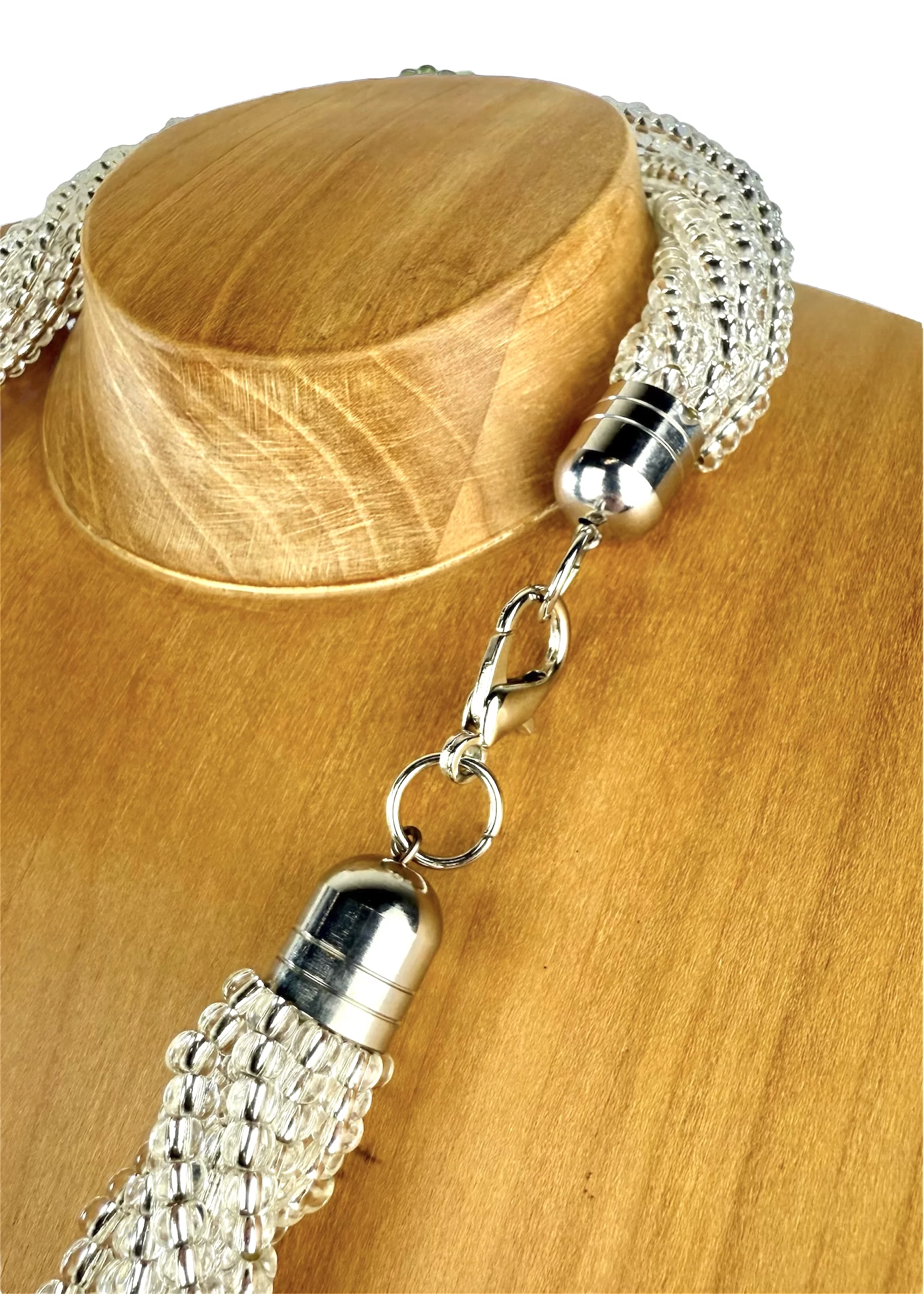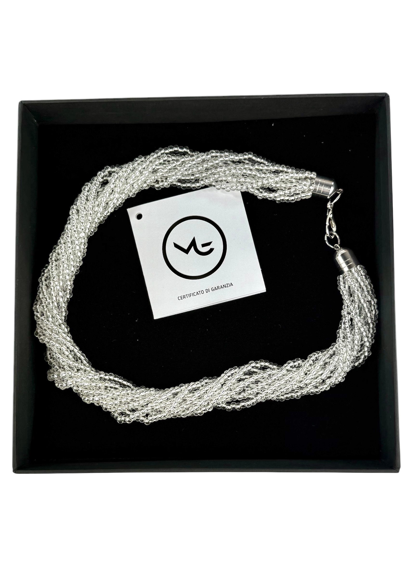 The necklace is made up of 9 threads and contains over 1500 pearls, made and mounted one by one with needle and thread by our master glassmaker.