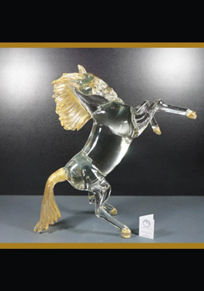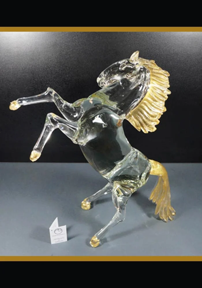 Transparent Crystal Murano Glass Horse With Gold 24kt Details
