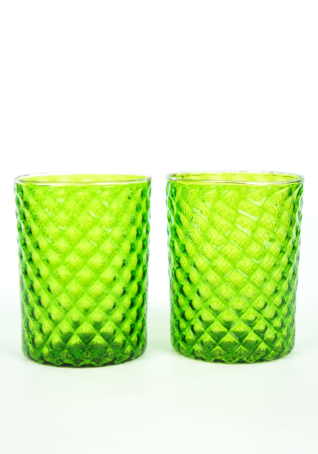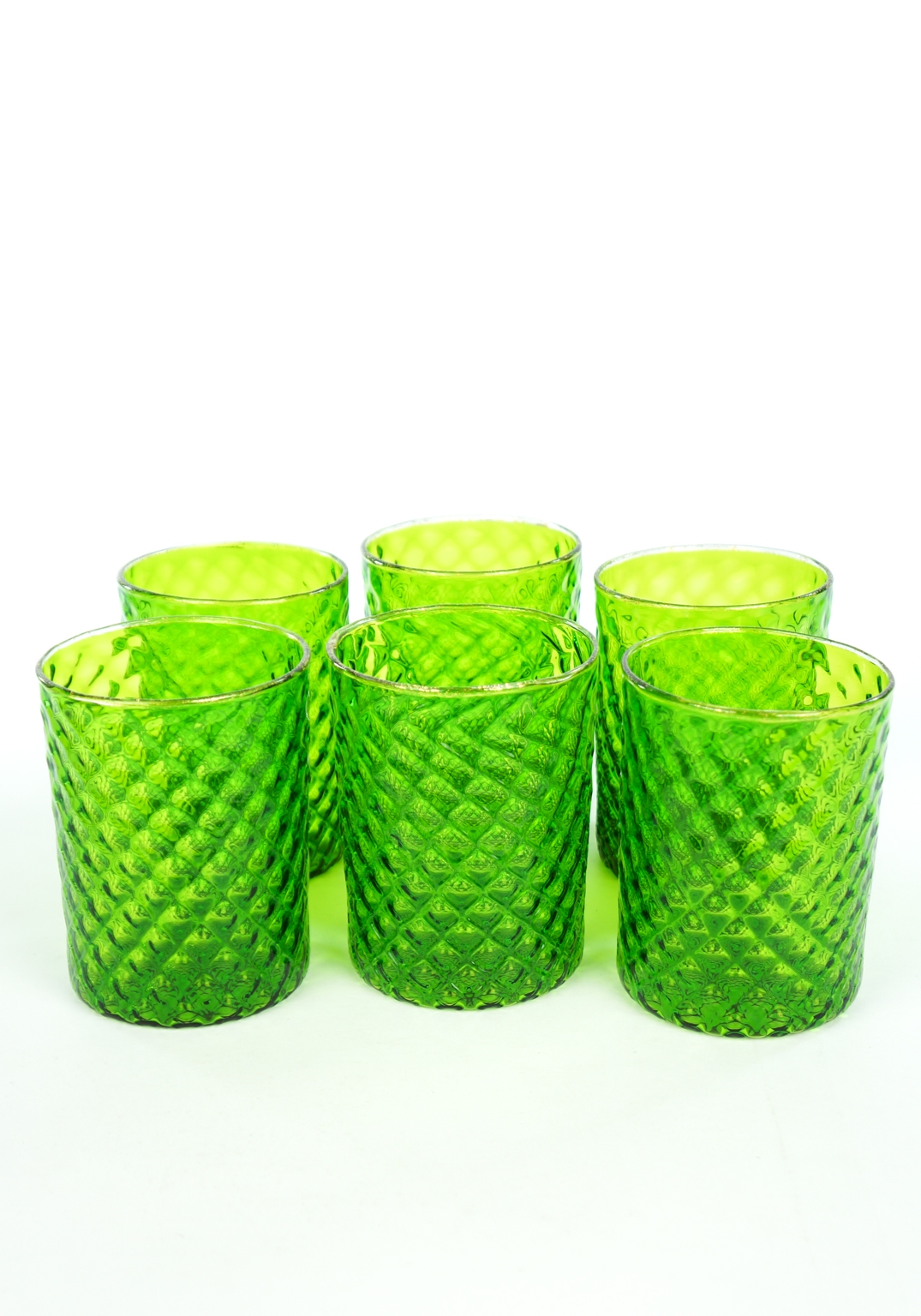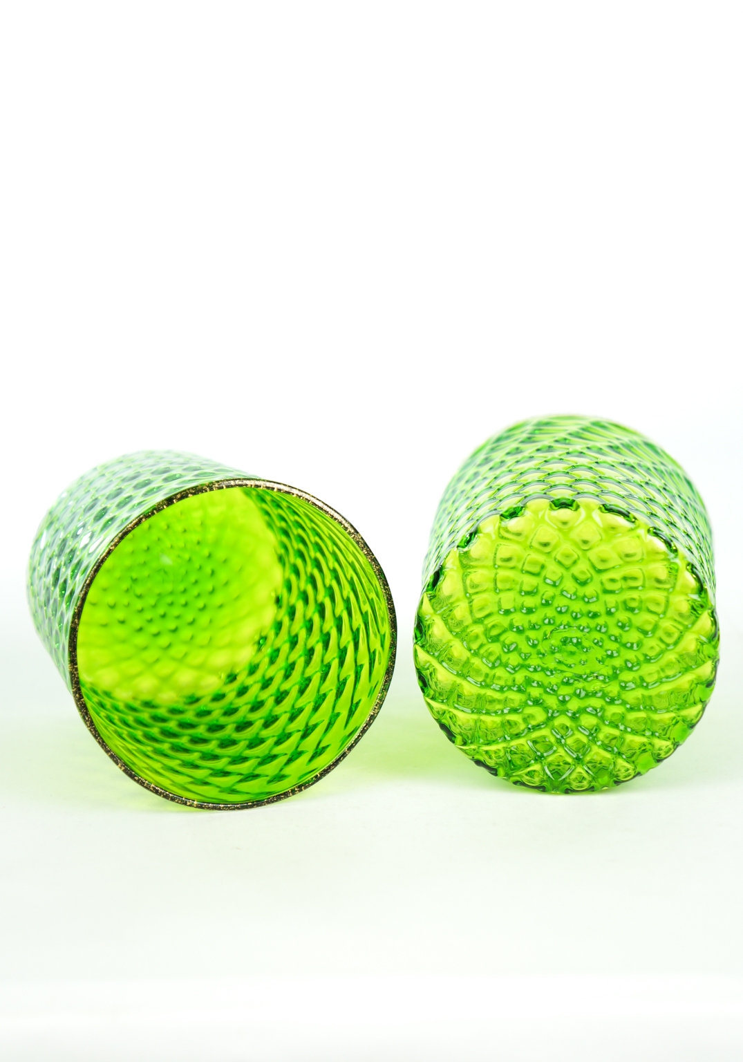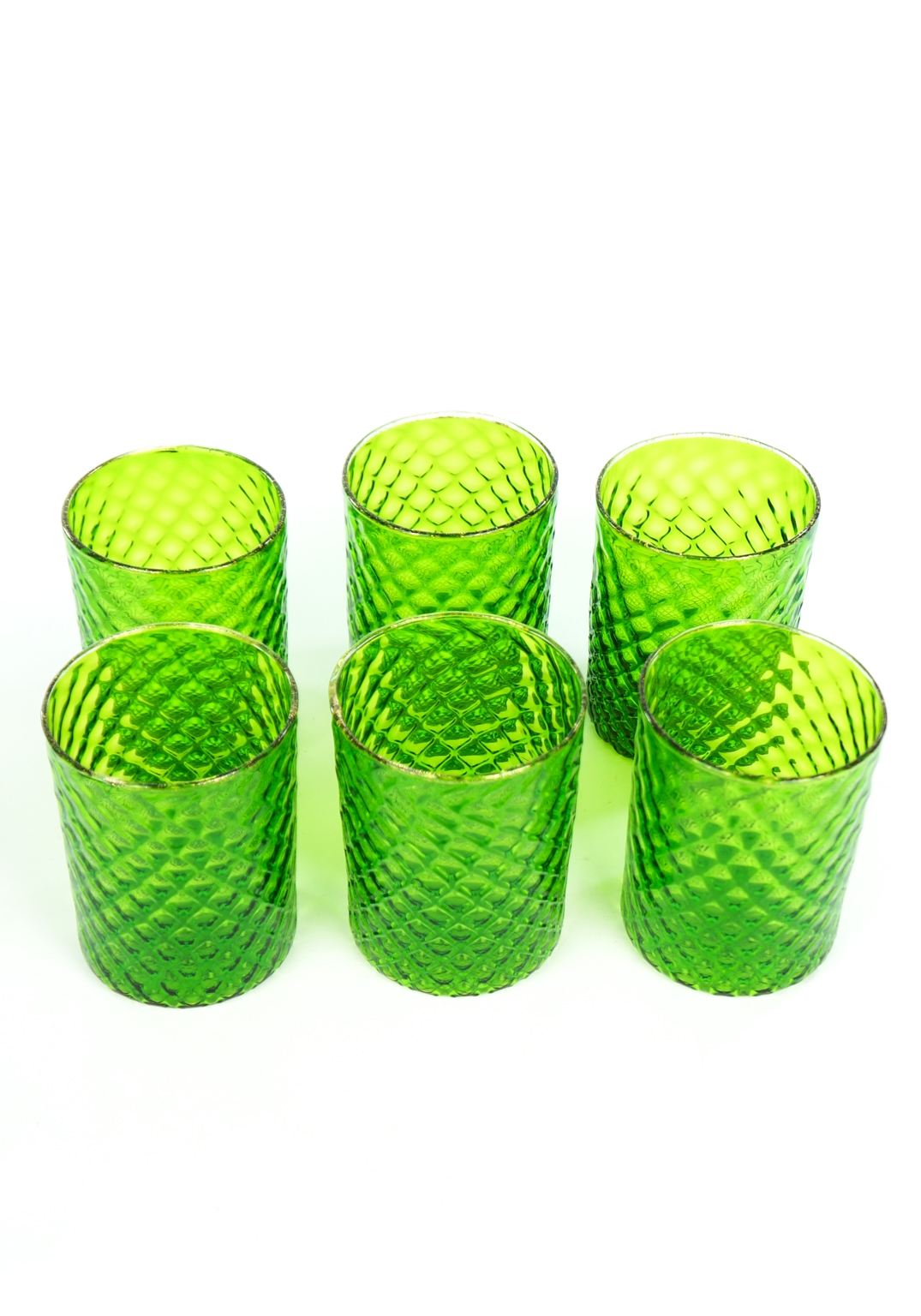 Union is a Set Of 6 Drinking Glasses Green for water or wine in Murano glass blown entirely handmade in green color with 24k gold leaf details.