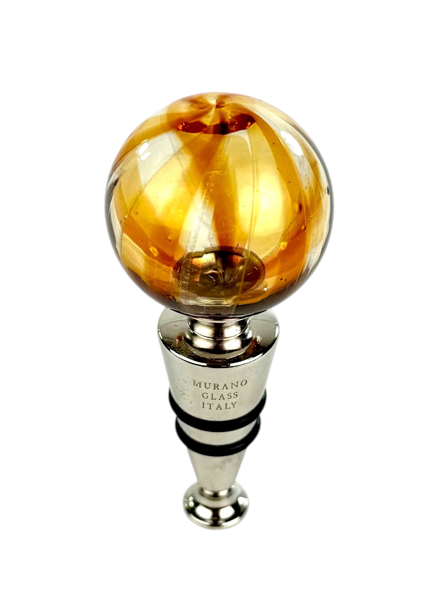 Murano glass bottle stopper with light amber, amber, tobacco and aventurine kanne.
