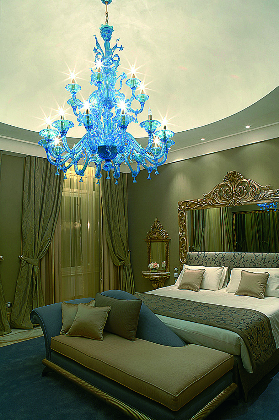 Exclusive venetian glass chandelier “Eclipse” on two floors with 14+7 lights colour light blue. Completely handmade, carried out by the best Masters Murano artisans. This magnificent work will give light to any environment spreading elegance and warmth.