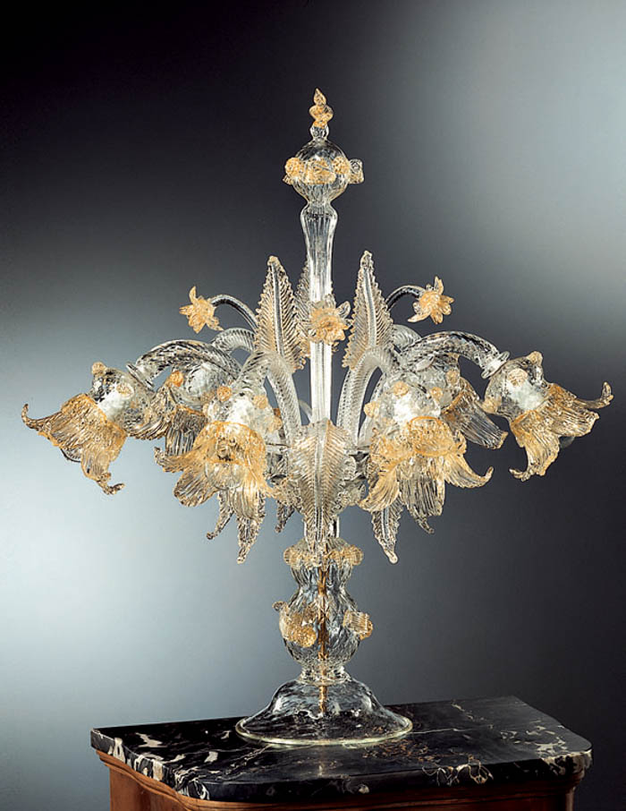 Flambeaux with 6 lights in Murano glass colour crystal with decorations in gold leaf 24 carats.