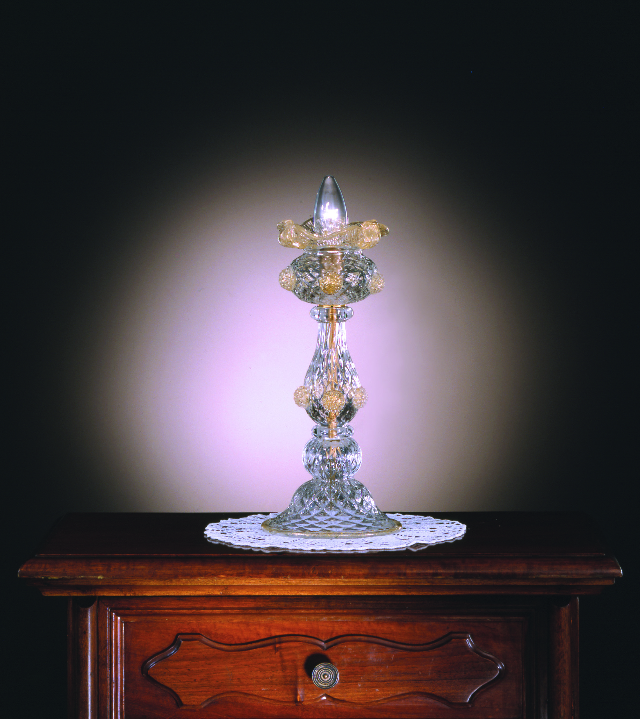 Classic Venetian glass lamps “Lume” 1 light in Murano glass colour crystal with decorations in gold leaf 24 carats. Products are entirely handmade by masters glassmakers of Murano, who, together with their co-workers create unique and inimitable works.