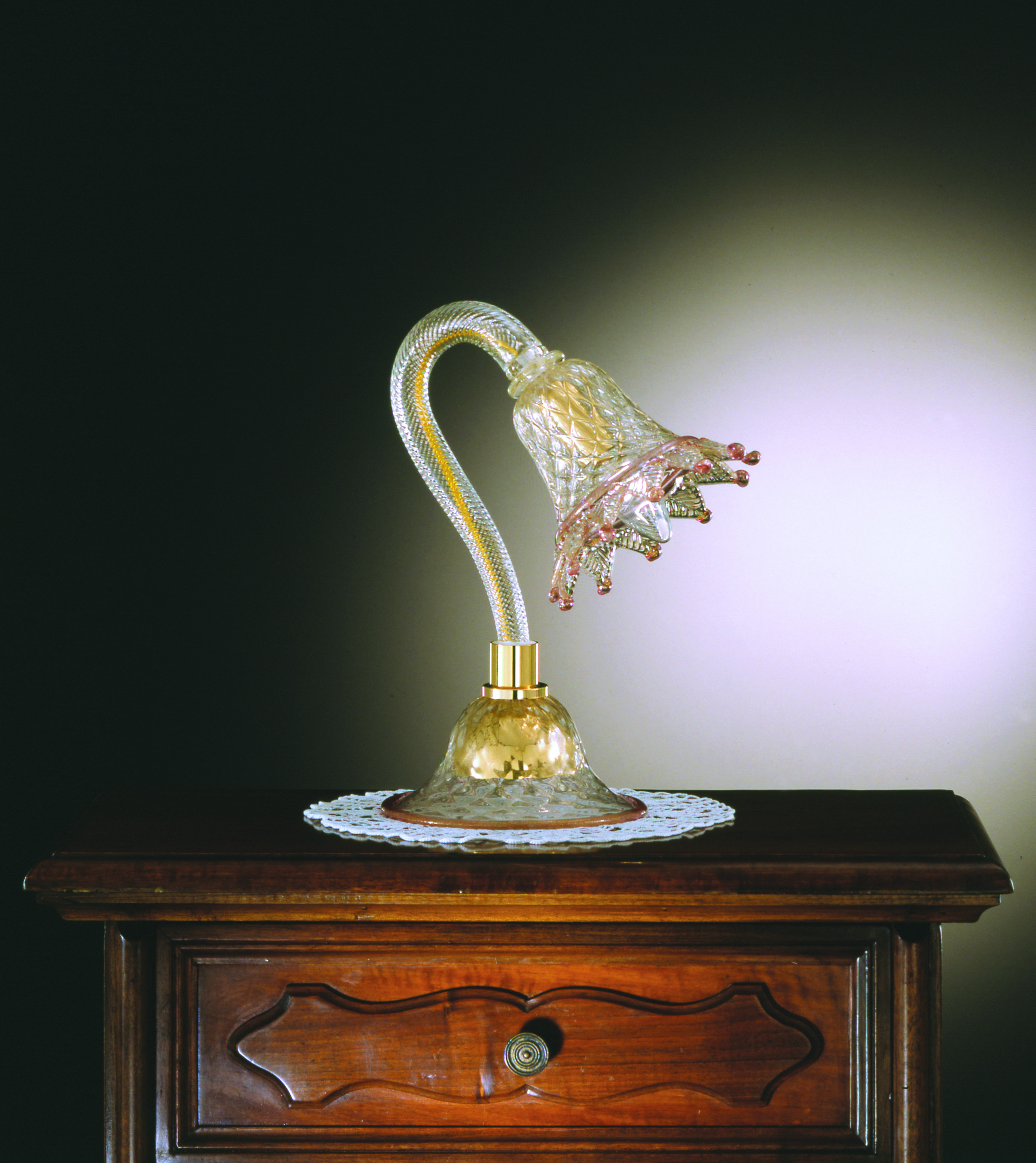 Fantastic Venetian glass lamps “Lume” 1 light in Murano glass colour crystal and pink with decorations in gold leaf 24 carats. Products are entirely handmade by masters glassmakers of Murano, who, together with their co-workers create high-quality product unique and inimitable all over the world.
