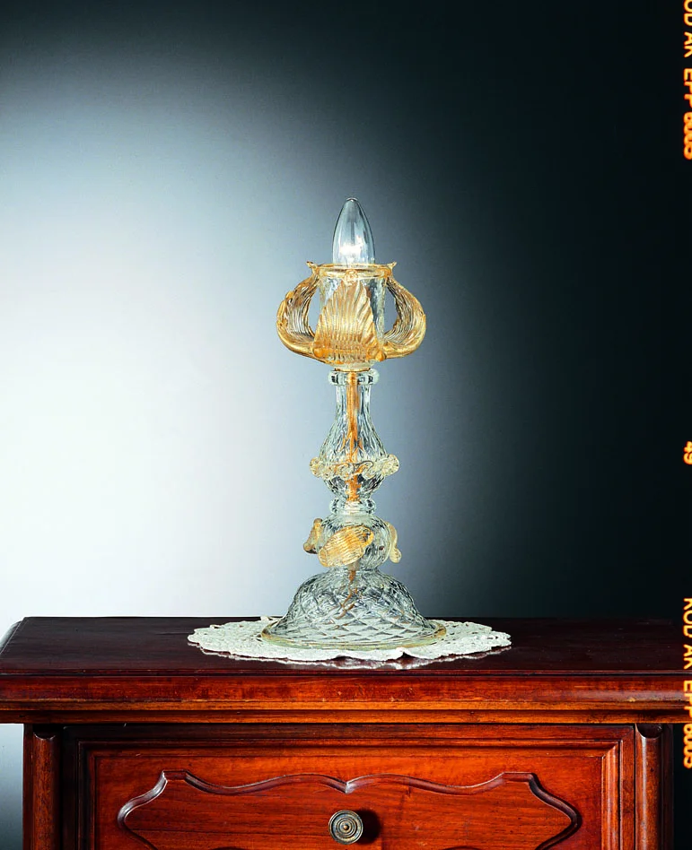 Splendid Venetian glass lamps “Lume” 1 light in Murano glass colour crystal with decorations in gold leaf 24 carats. Products are entirely handmade by masters glassmakers of Murano, who, together with their co-workers create unique and inimitable works.