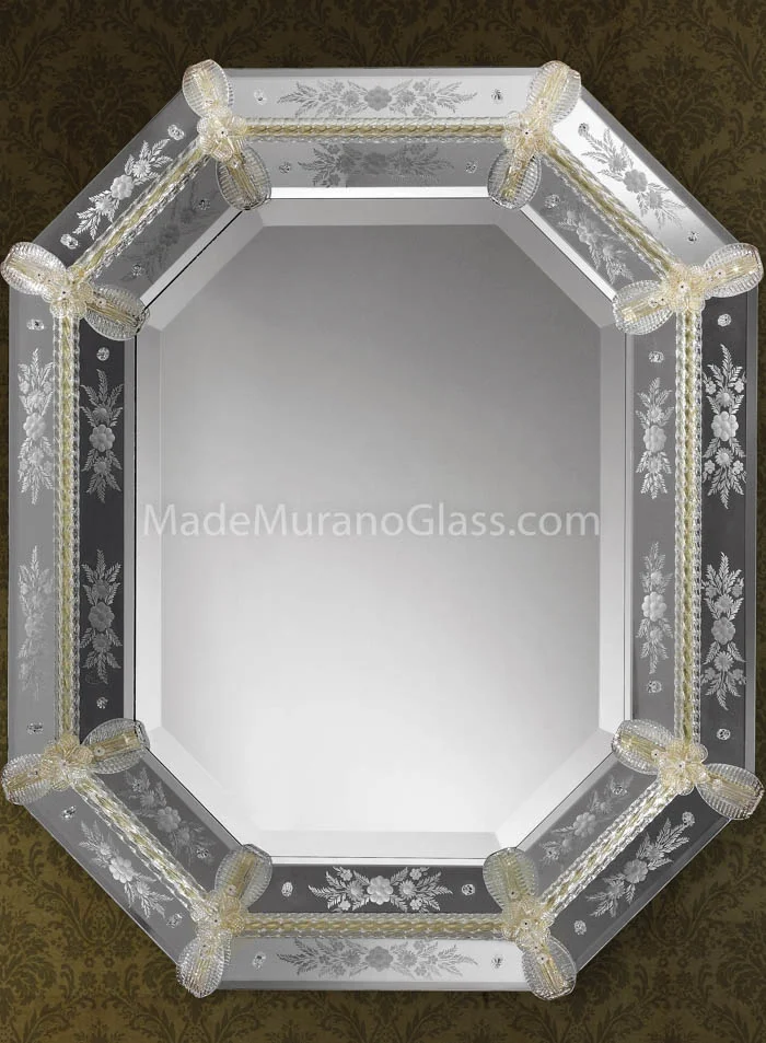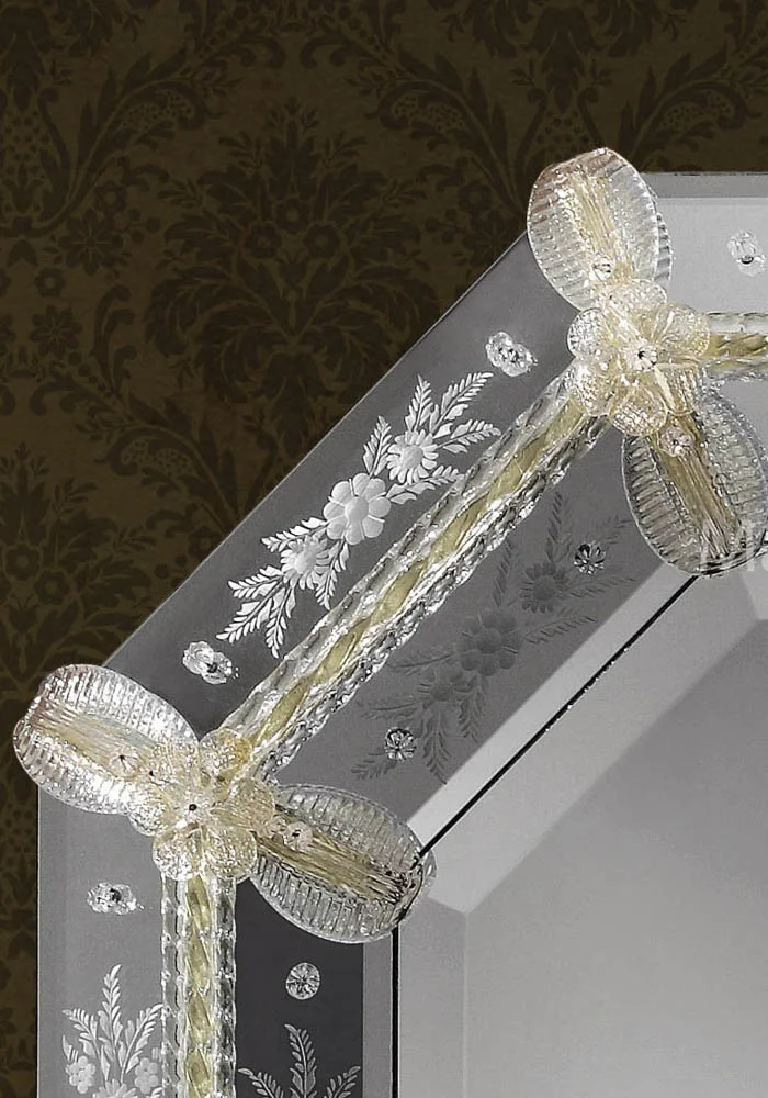 Exclusive Venetian glass mirror “Artide” in Murano glass completely carried out by Murano artisans which create decorative incisions in the mirror making it unique and inimitable.