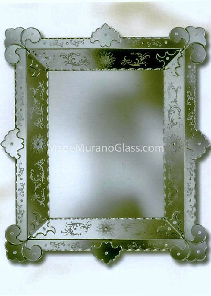 Elegant venetian glass mirror in venetian glass completely carried out by Murano artisans which create decorative incisions in the mirror making it unique and inimitable. The wooden structure is specially carried out by carpenters of Murano island.