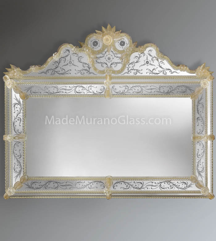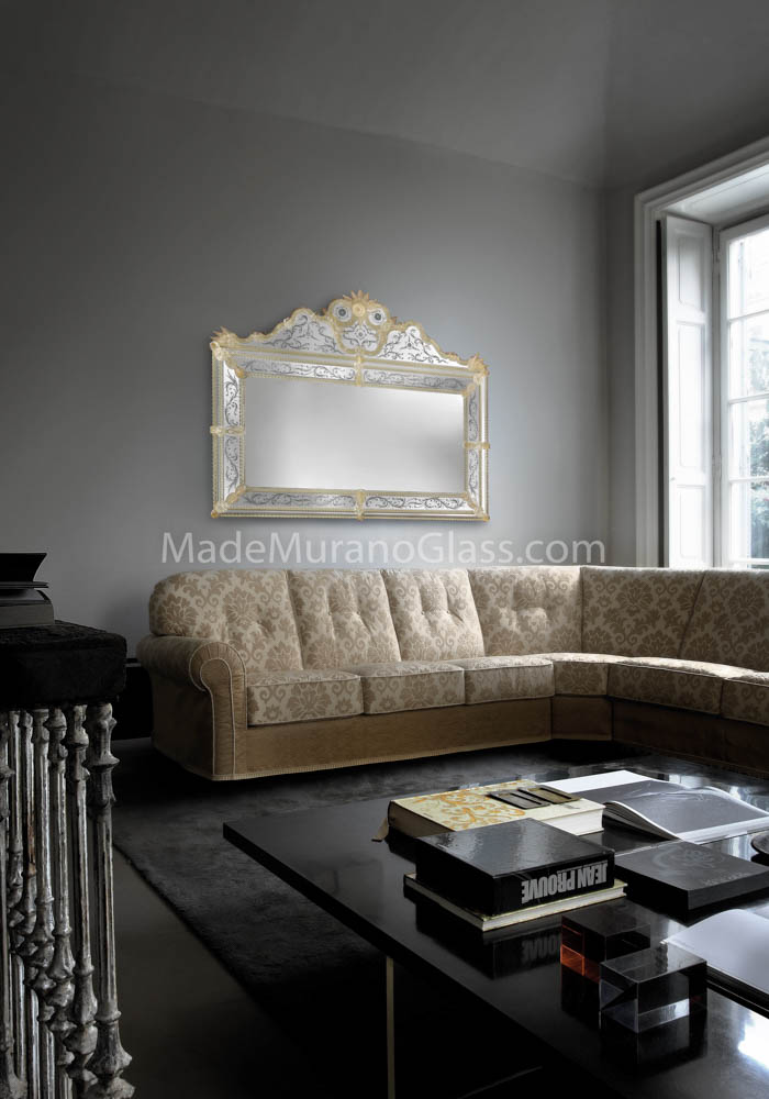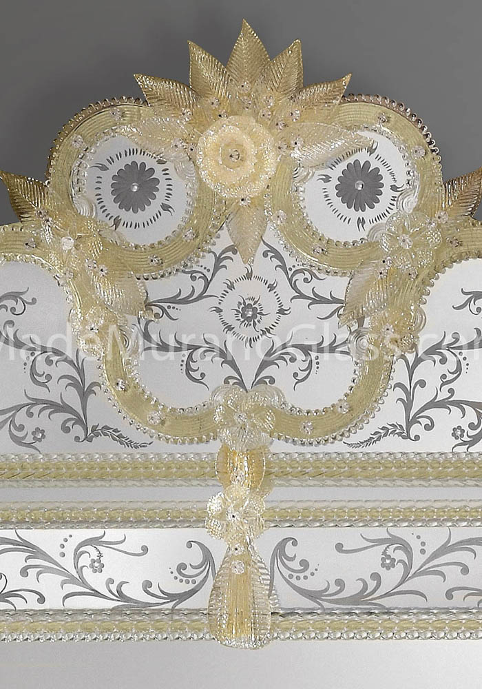 Exclusive venetian glass mirror “Imperial” in Murano glass completely carried out by Murano artisans which create decorative incisions in the mirror making it unique and inimitable.