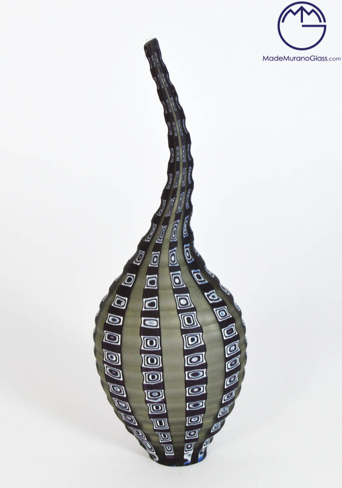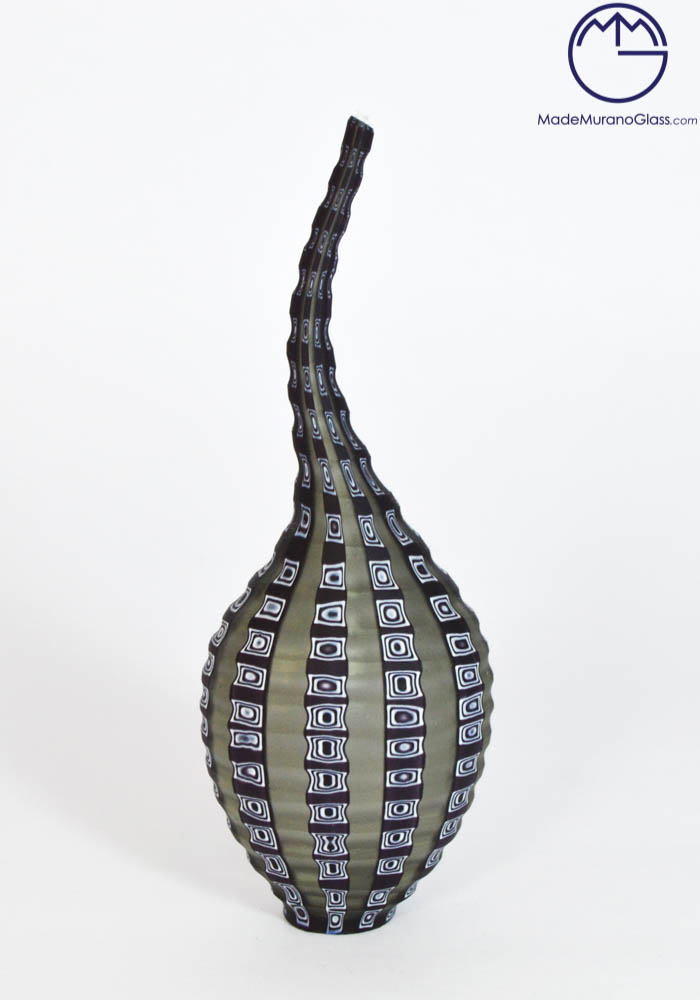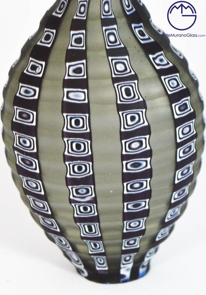 Modern Murano collection vases “mignon” with murrina colour grey, black, white and with engraved working. Engraved working is cold execution made by Murano artisans.